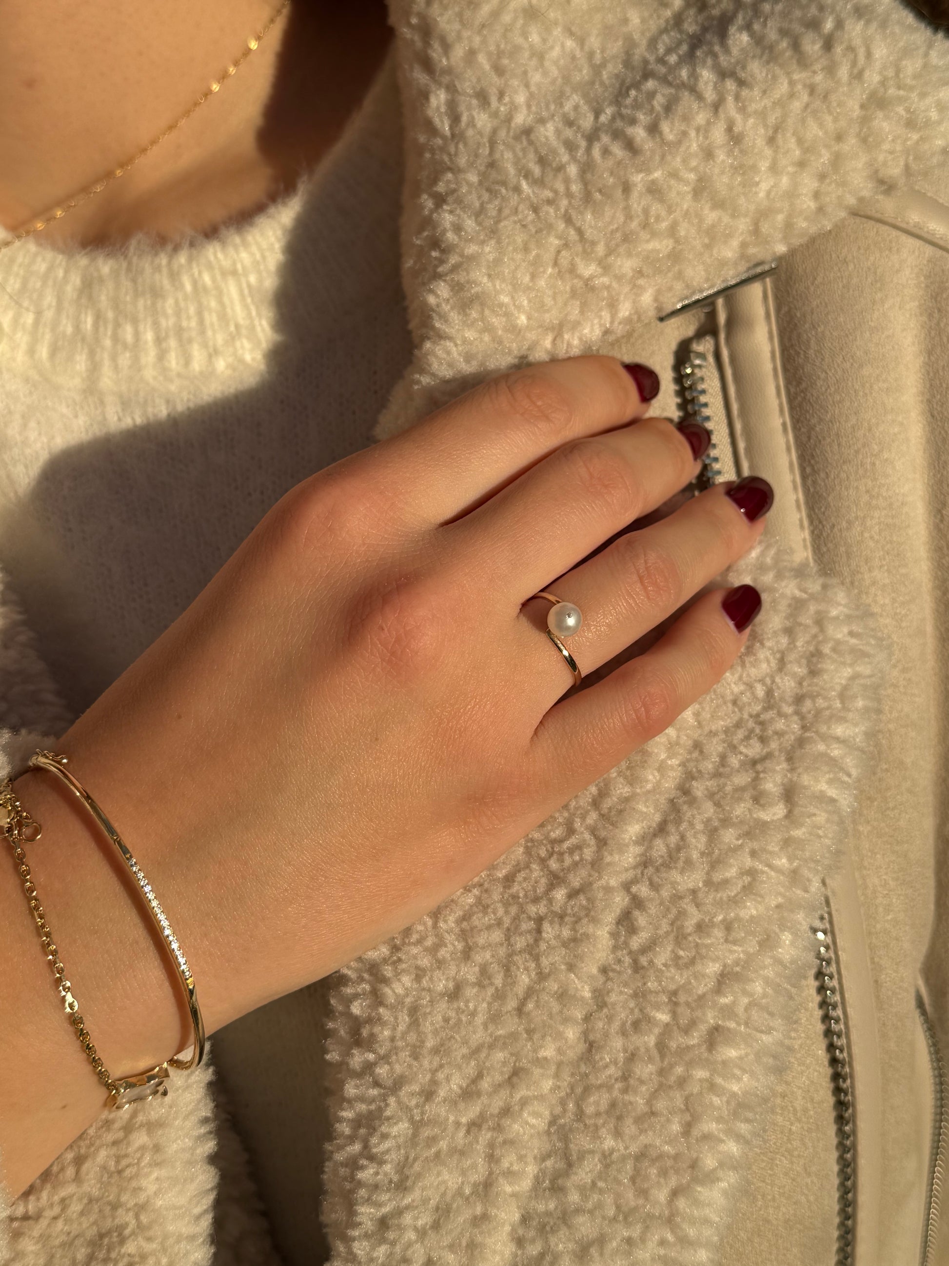Κομψό και διαχρονικό δαχτυλίδι με φυσικό μαργαριτάρι σε χρυσό 14 ή 9 καρατίων, διακοσμημένο με ένα μικρό λευκό ζιργκόν στο πάνω μέρος που προσθέτει διακριτική λάμψη. Ο συνδυασμός του μαργαριταριού με το χρυσό δημιουργεί ένα elegant αποτέλεσμα, ιδανικό για καθημερινή χρήση αλλά και για ιδιαίτερες εμφανίσεις. Ένα φινετσάτο κόσμημα που αναδεικνύει τη θηλυκότητα με τον πιο απλό και όμορφο τρόπο.