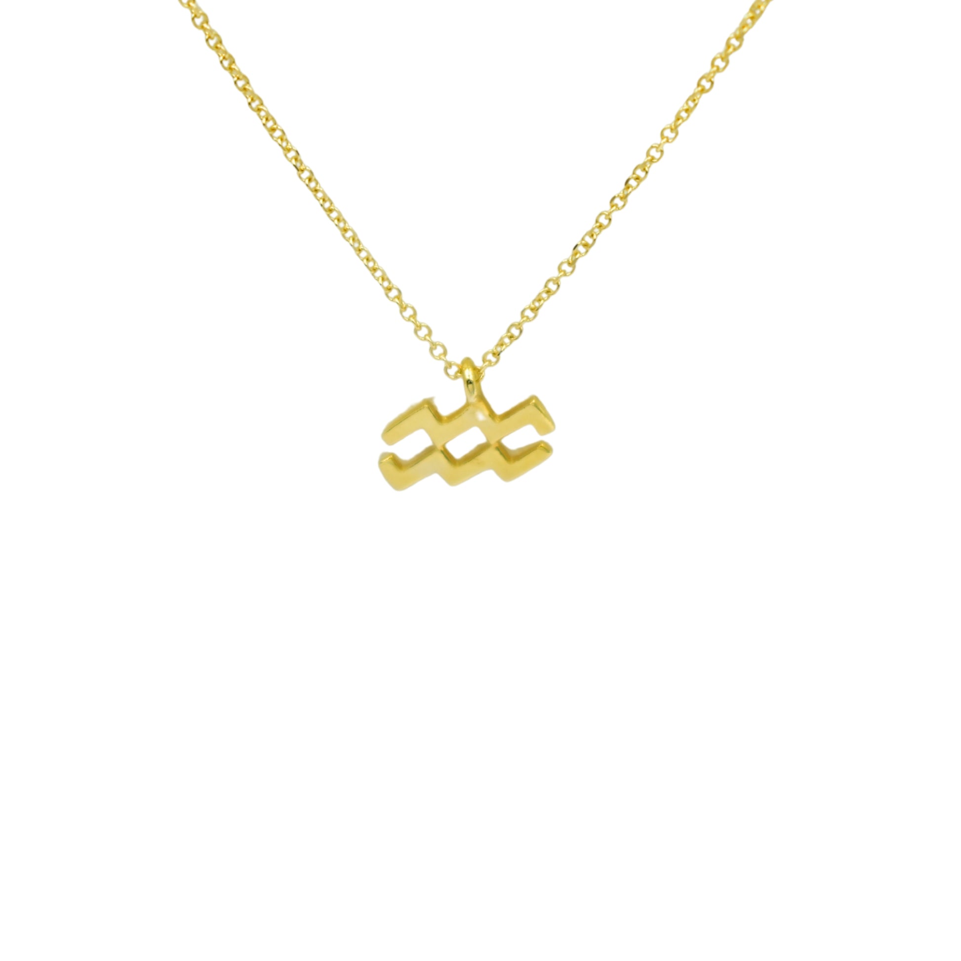 Minimal και κομψό κολιέ από χρυσό 14 καρατίων, με το σύμβολο του ζωδίου Υδροχόος (♒) σε καθαρό, μοντέρνο σχεδιασμό. Το χαρακτηριστικό κυματιστό μοτίφ αναδεικνύεται όμορφα πάνω στη λεπτεπίλεπτη αλυσίδα, δημιουργώντας ένα κόσμημα που συνδυάζει απλότητα και ιδιαίτερο χαρακτήρα.