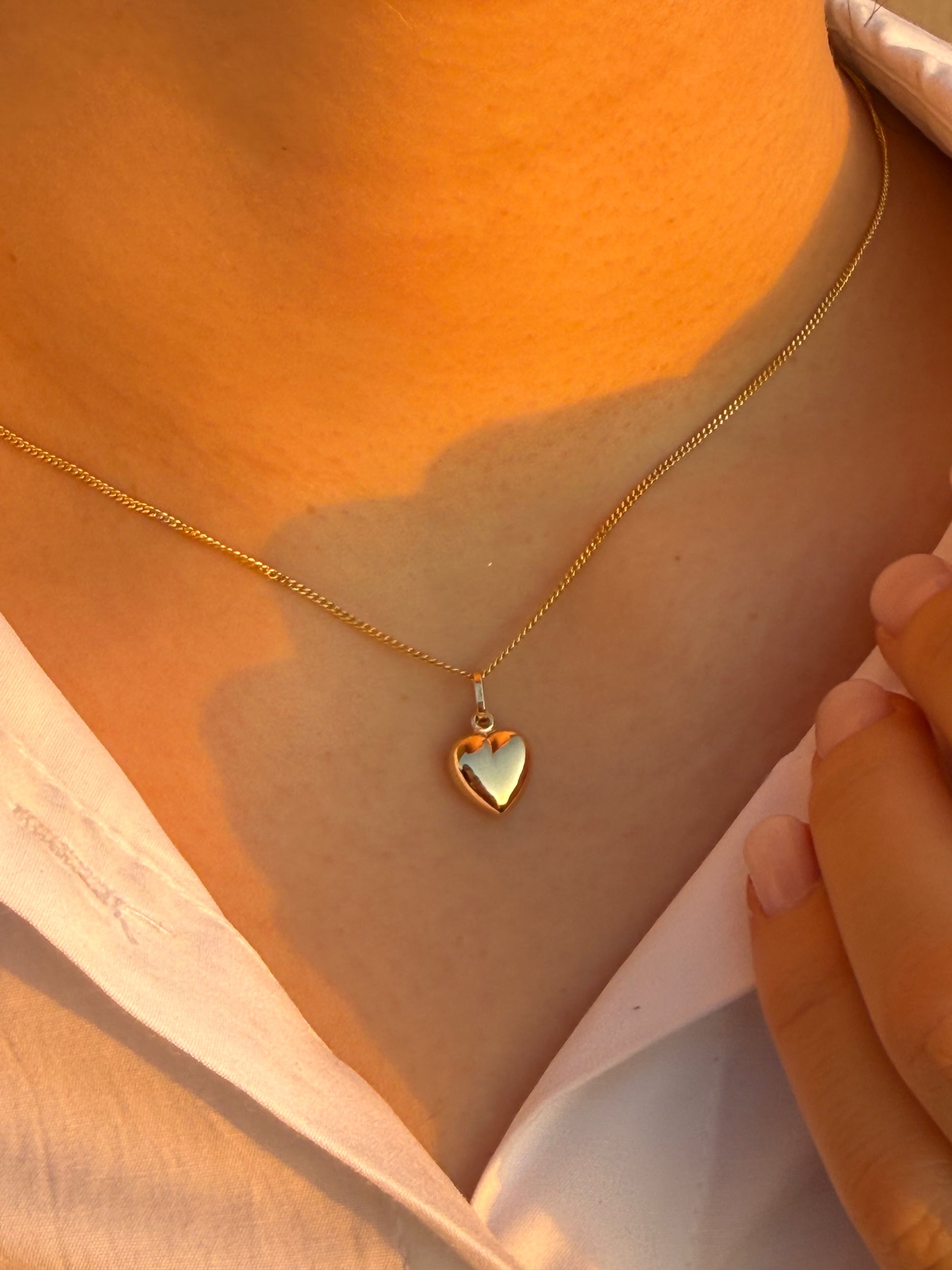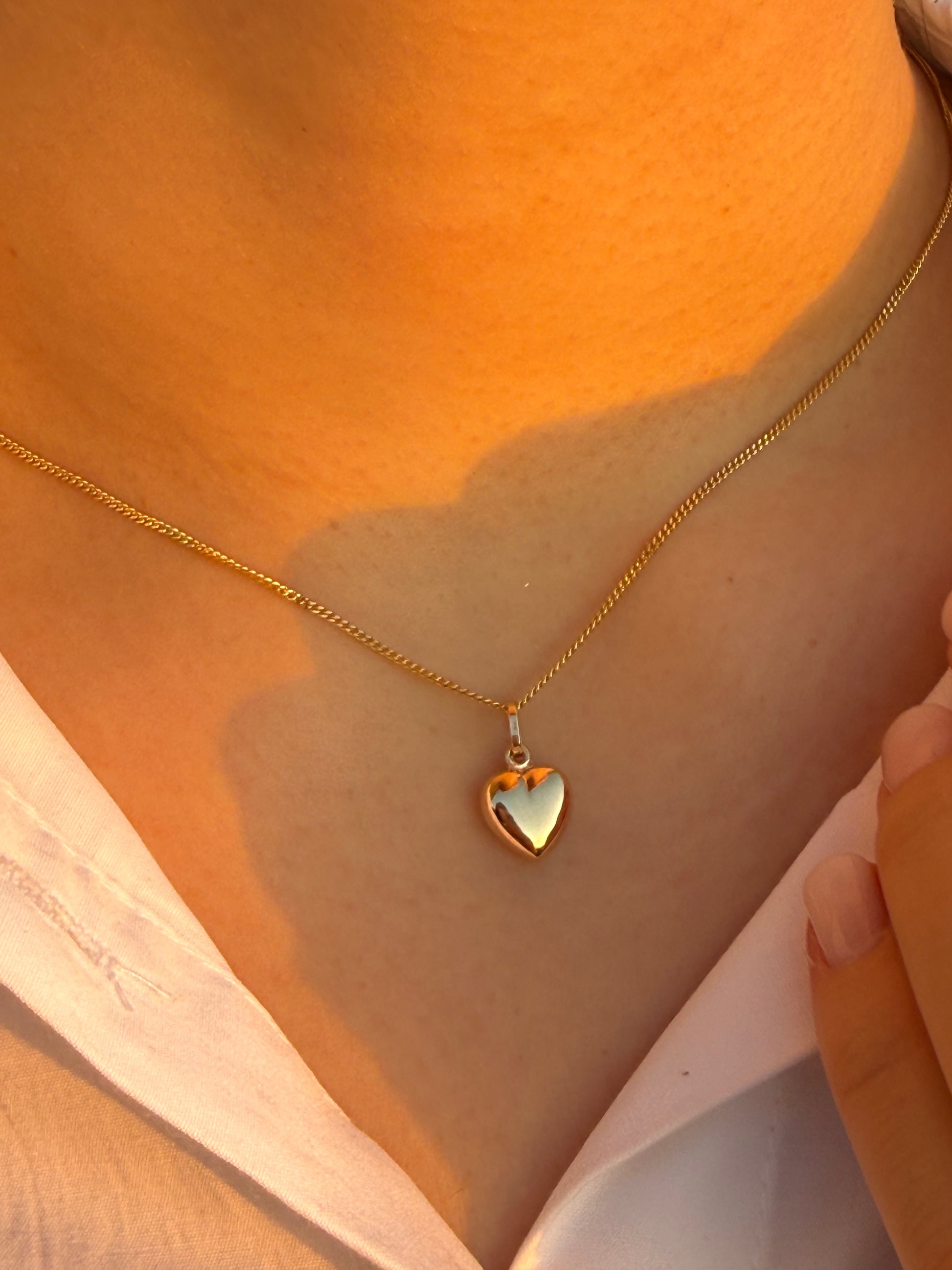 Κομψό και διαχρονικό μενταγιόν σε σχήμα καρδιάς, κατασκευασμένο σε 9Κ χρυσό. Η λεία, καθρέφτης επιφάνειά του χαρίζει μια απαλή λάμψη που ταιριάζει σε κάθε στιλ — από καθημερινές εμφανίσεις μέχρι πιο ιδιαίτερες στιγμές. Φοριέται εύκολα μόνο του ή σε layering με άλλα λεπτεπίλεπτα κολιέ.