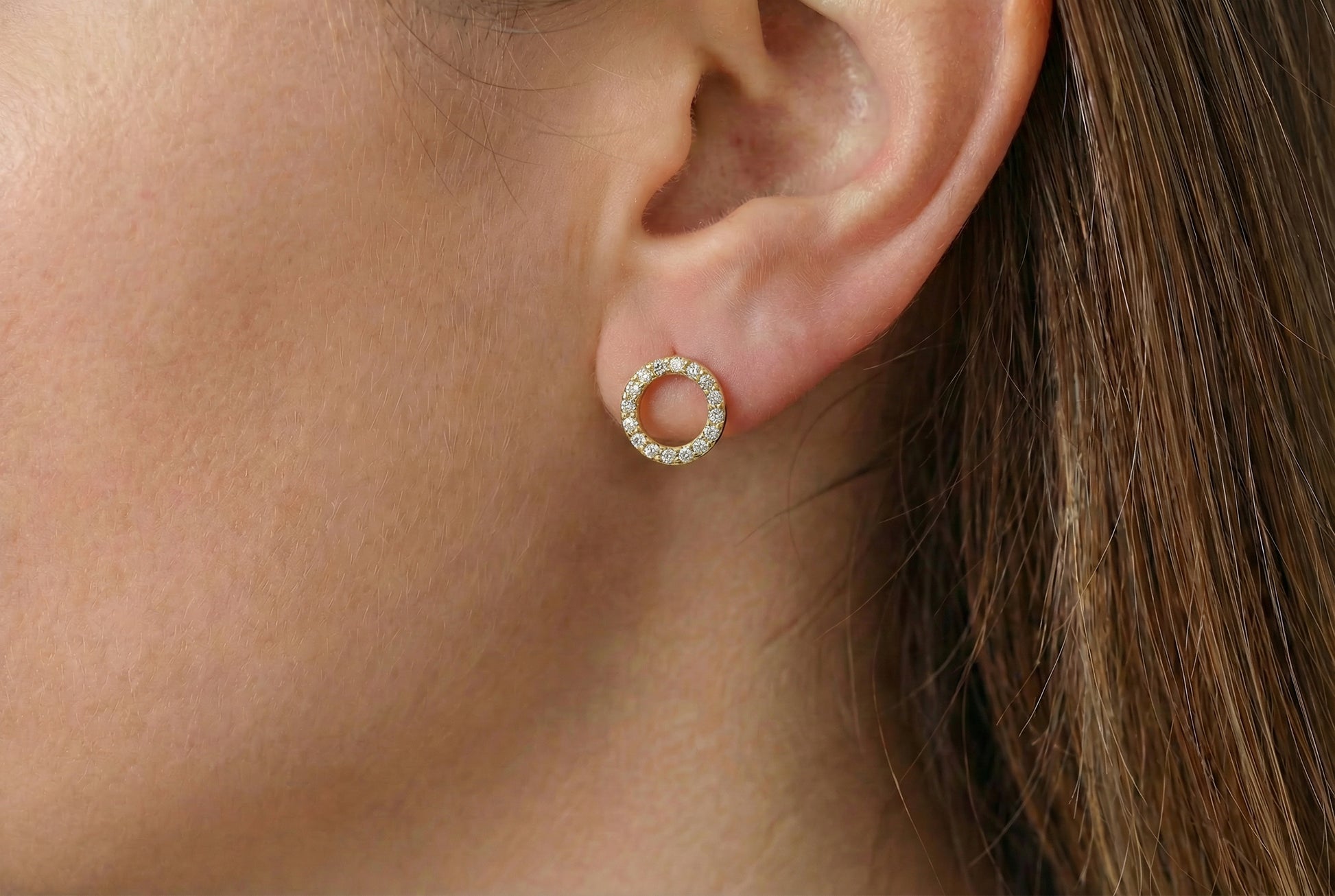 Κομψά καρφωτά σκουλαρίκια σε χρυσό Κ14, σε λεπτό κυκλικό σχήμα διακοσμημένο με λαμπερά λευκά ζιργκόν. Το minimal design τους τα κάνει ιδανικά για καθημερινή χρήση, ενώ η λάμψη των zircon προσθέτει την απαραίτητη διακριτική πολυτέλεια. Είναι ελαφριά, άνετα και ταιριάζουν εύκολα σε κάθε ηλικία και στυλ. ✨💛