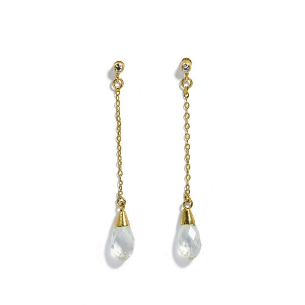 Αέρινα κρεμαστά σκουλαρίκια από χρυσό 14 καρατίων, με λεπτή αλυσίδα και zircon σταγόνα που χαρίζει φωτεινότητα και κομψή κίνηση σε κάθε εμφάνιση.