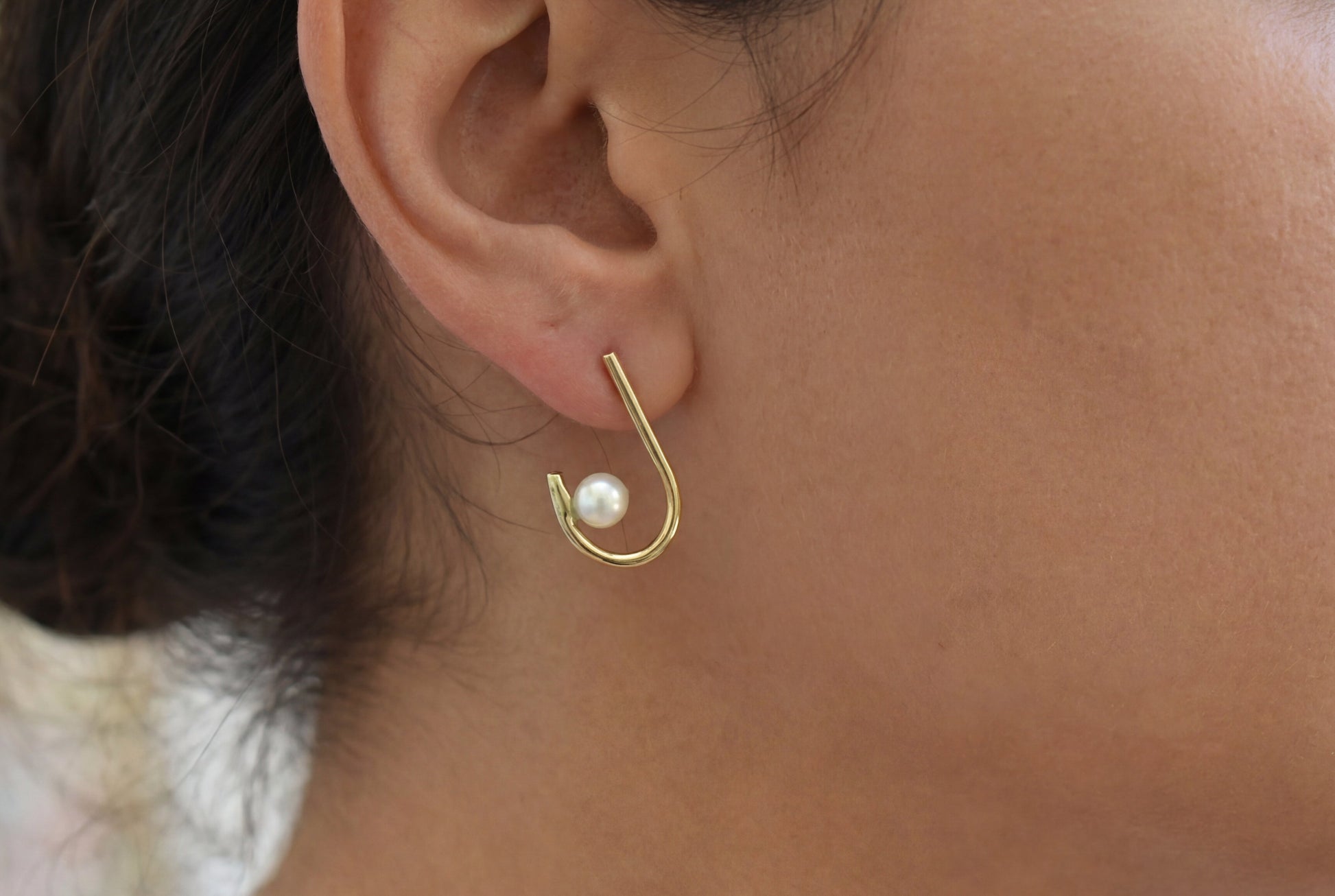 Κομψά και μοντέρνα σκουλαρίκια από χρυσό 9Κ ή 14Κ, με ιδιαίτερο καμπυλωτό σχεδιασμό τύπου hook και διακριτική λευκή πέρλα στο τελείωμα. Ο minimal χαρακτήρας τους τα κάνει ιδανικά για καθημερινές εμφανίσεις, ενώ η πέρλα προσθέτει μια διαχρονική πινελιά κομψότητας.