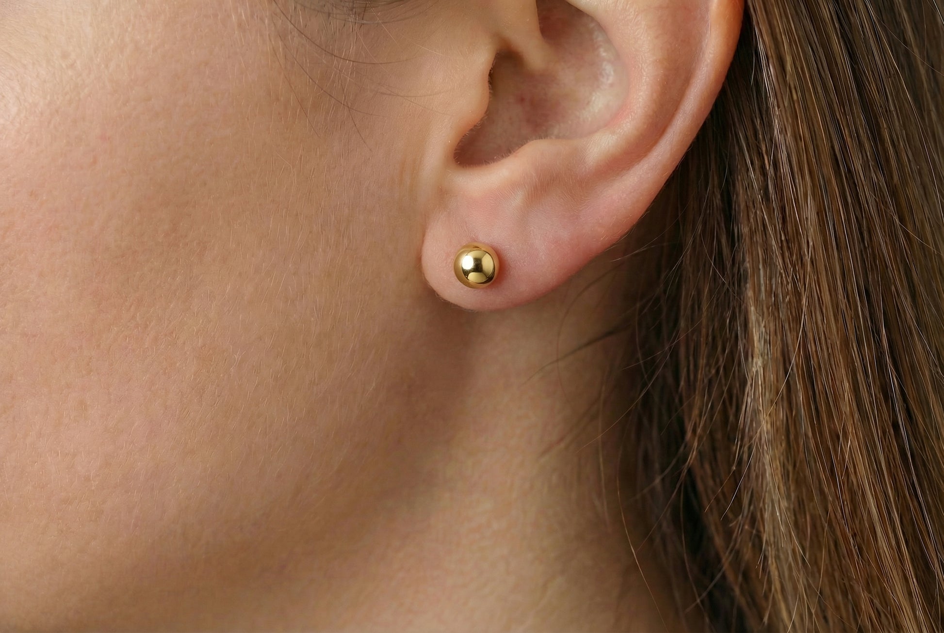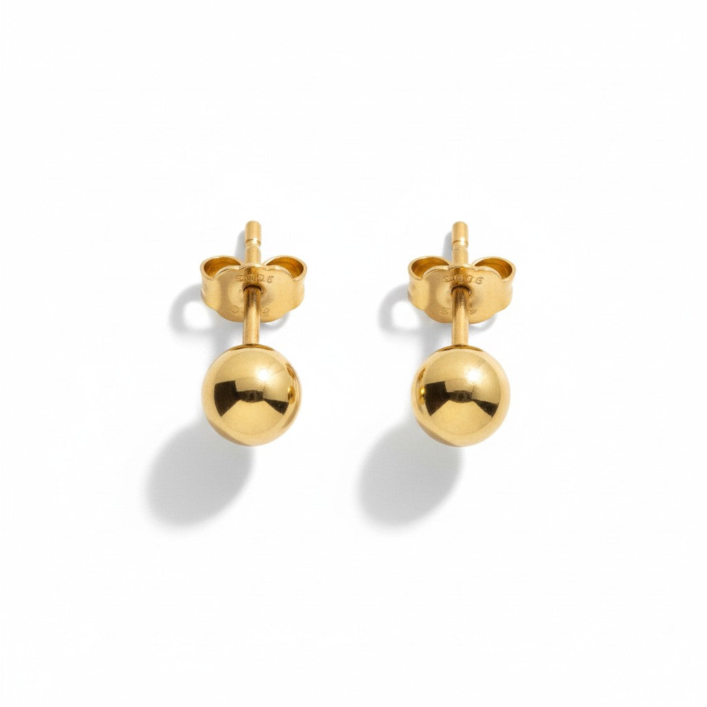 Κλασικά καρφωτά σκουλαρίκια σε σχέδιο μπίλια, διαθέσιμα σε χρυσό Κ14 ή Κ9. Καθημερινά, διακριτικά και ιδανικά για κάθε ηλικία, αποτελούν ένα από τα πιο αγαπημένα basic σχέδια που φοριούνται εύκολα μόνα τους ή σε δεύτερη τρύπα.