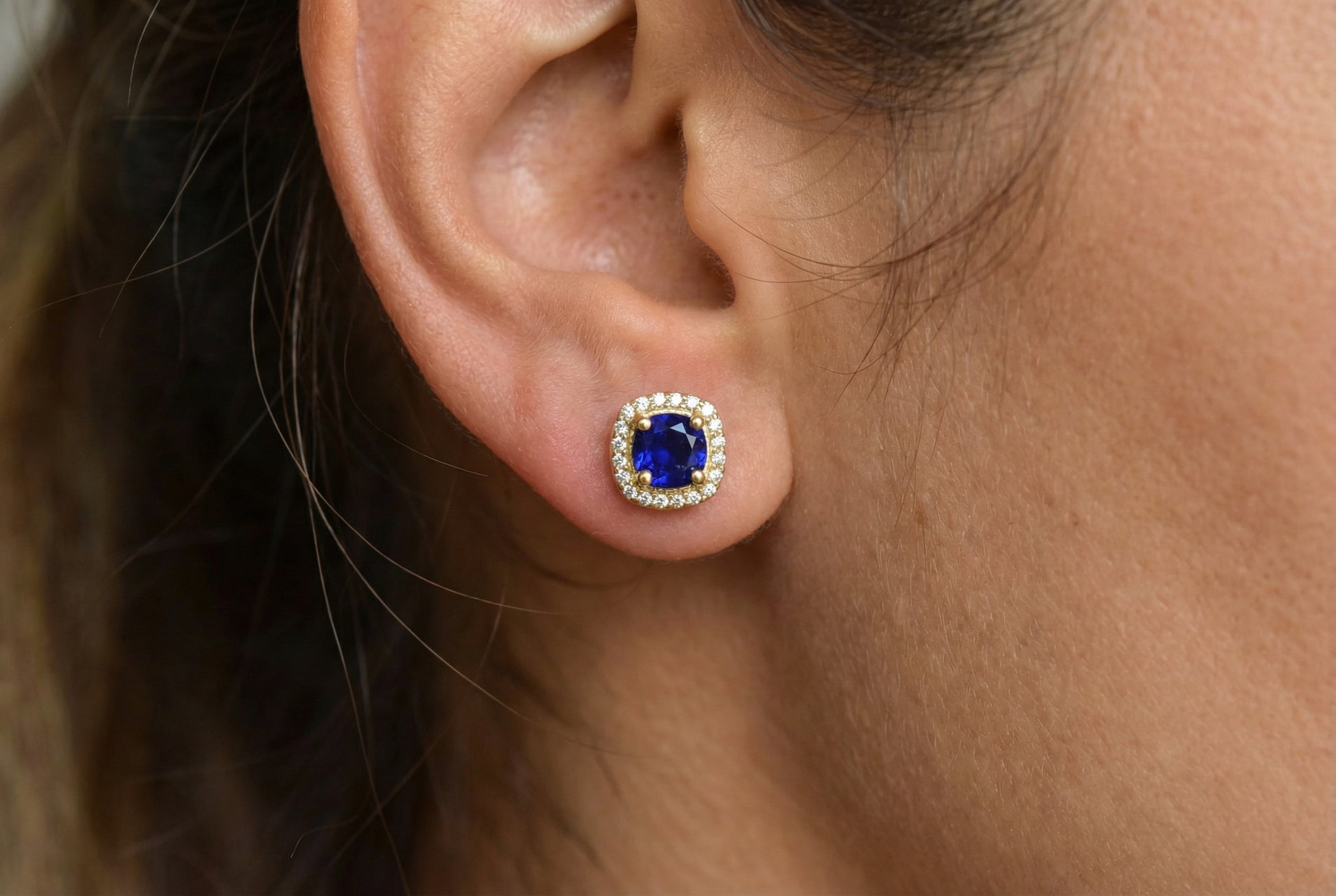 Minimal αλλά εντυπωσιακό σκουλαρίκι ροζέτα σε χρυσό Κ14, με κεντρική βαθύ μπλε πέτρα και περιμετρικά λαμπερά λευκά ζιργκόν. Η κλασική ροζέτα χαρίζει πολυτέλεια και φωτεινότητα, ενώ το έντονο μπλε δίνει χαρακτήρα και κομψότητα στο αυτί.