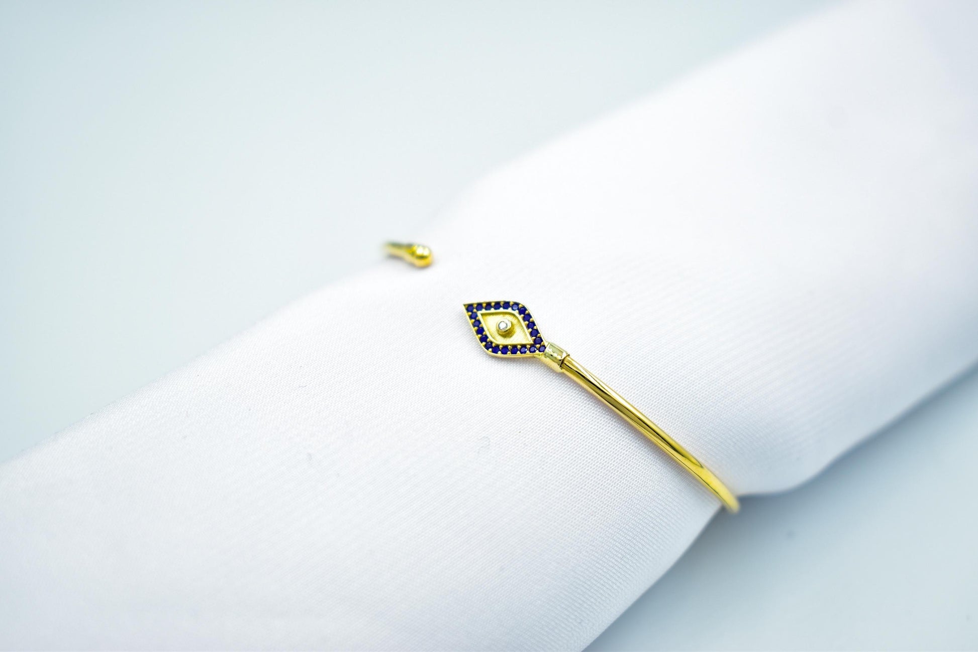 14K Evil Eye Bangle,14K Gold Blue Bangle,14K Protective Jewelry,Evil Eye Bangle,Design, Handcrafted Beauty,14k Gold Bracelet,Gift for Mom