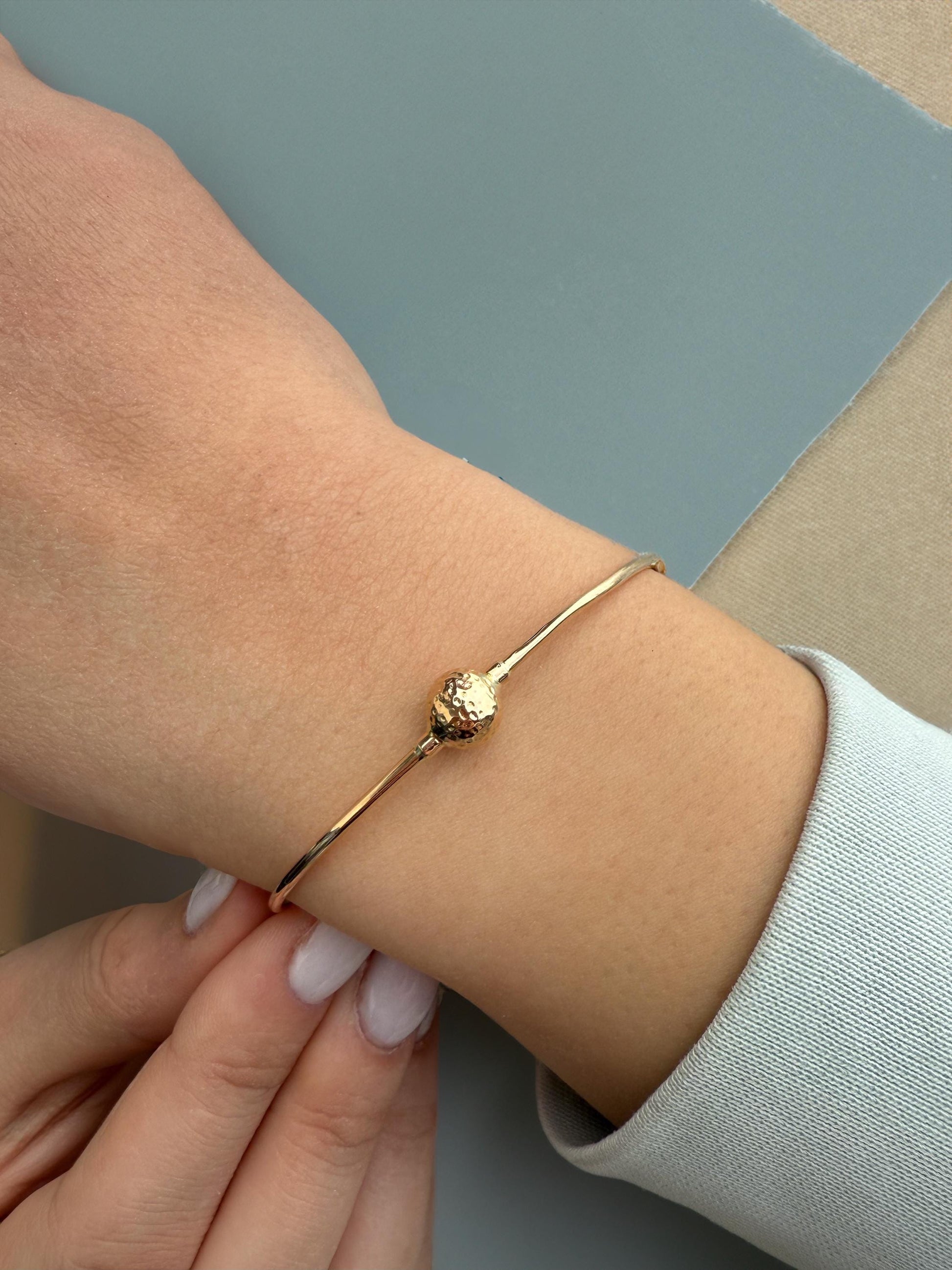 14k Gold Ball Torque Cuff Bangle Bracelet,Gold Round Adjustable Ball Bracelet,Ball Bead Bracelet,Genuine Bangle,Exclusive Gift for Her