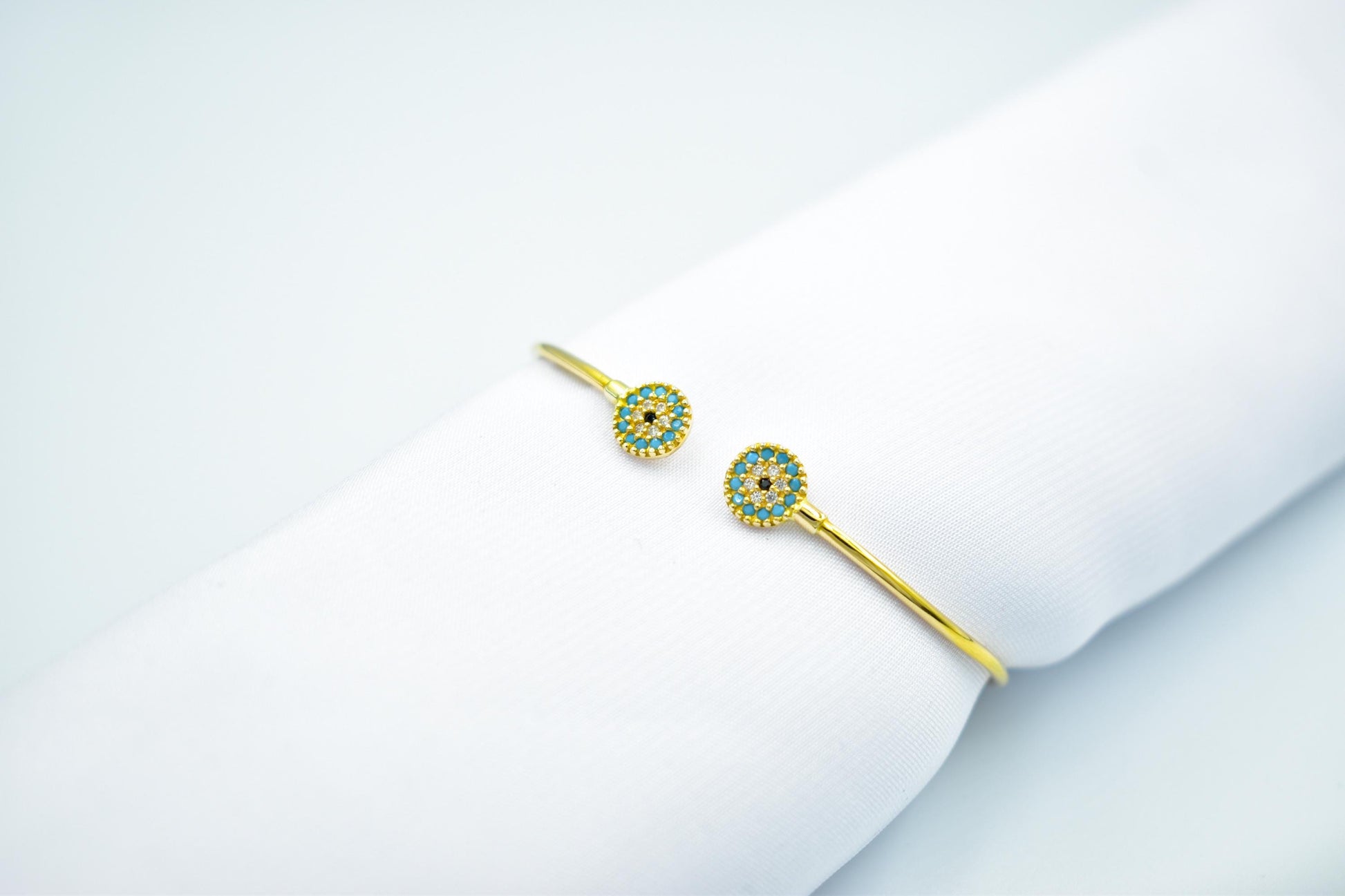 14K Gold Bangle Turquoise Evil Eye,Handcrafted Minimalist Bracelet,Turquoise Gold Evil Eye Bangle,Timeless Gift for Bride,Mom & Her