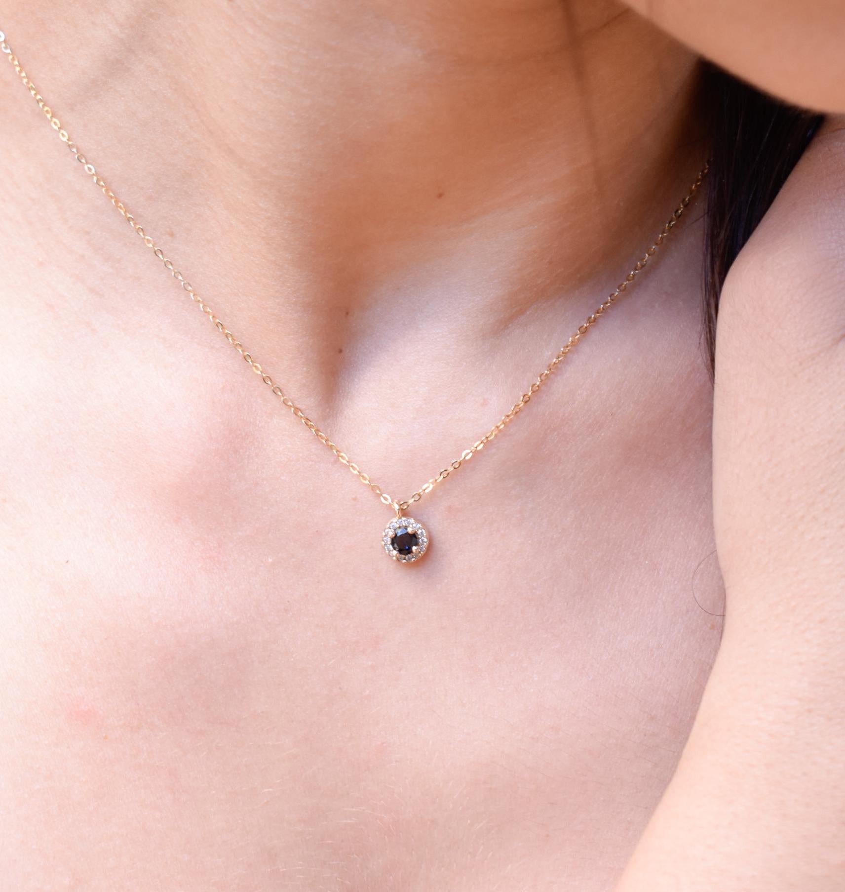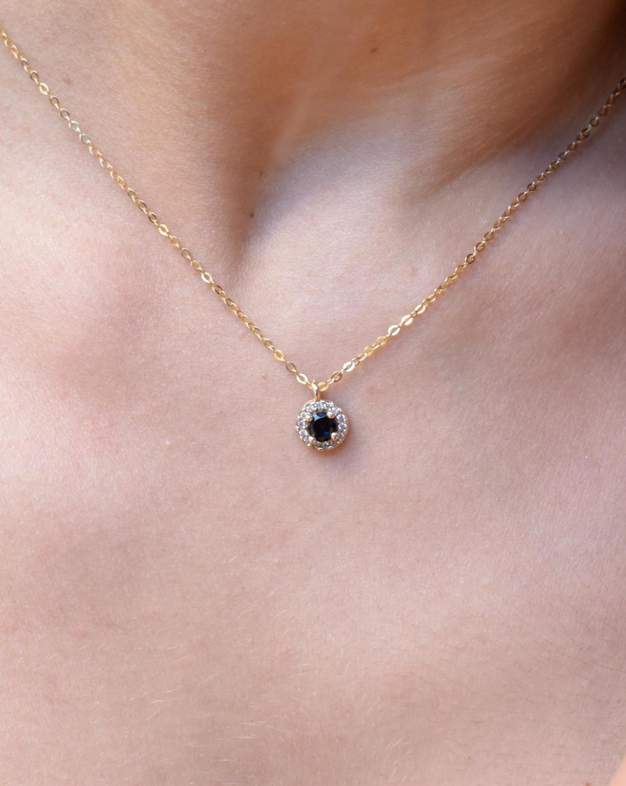 Κολιέ Ροζέτα με Σκούρο Μπλε Ζιργκόν 14Κ