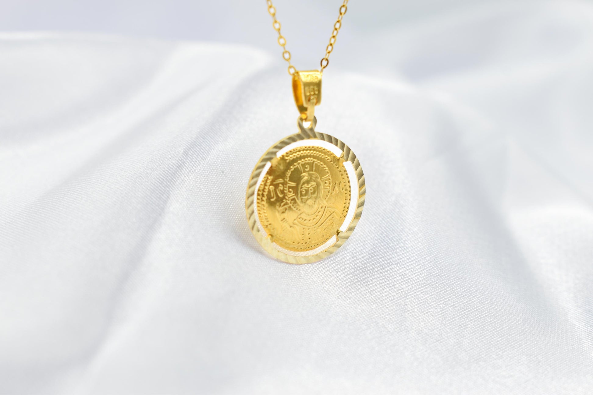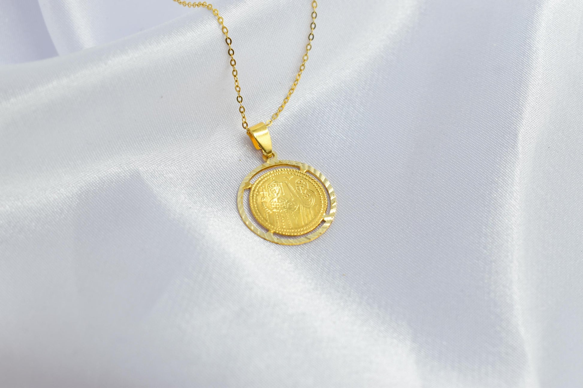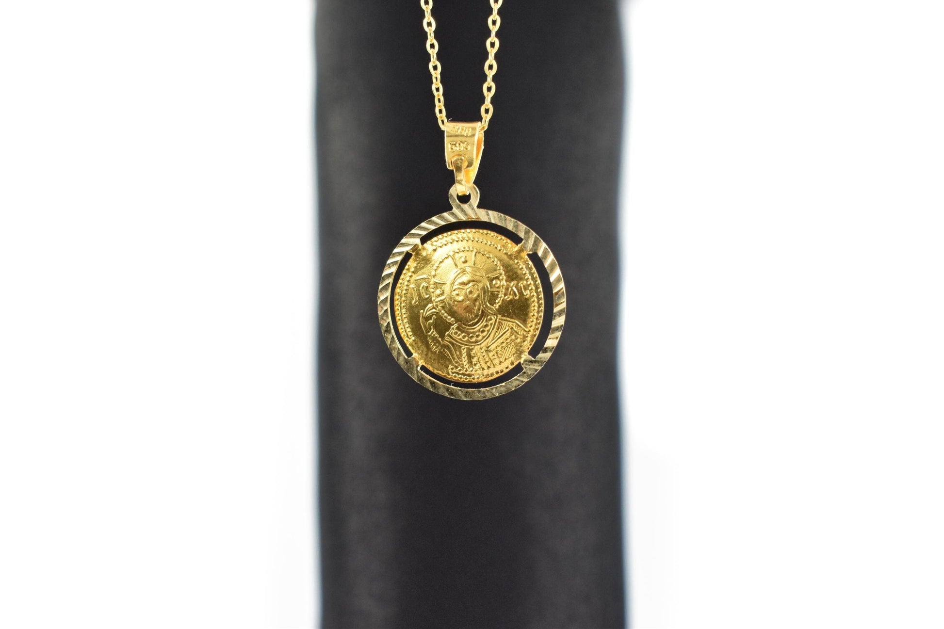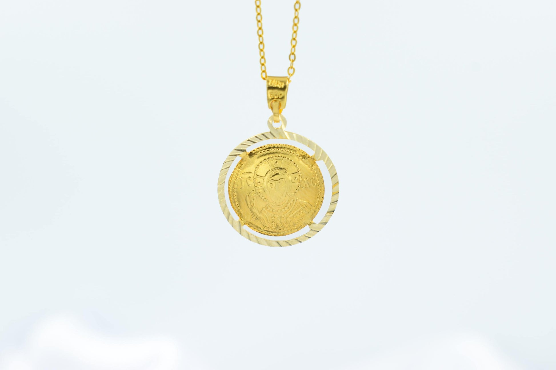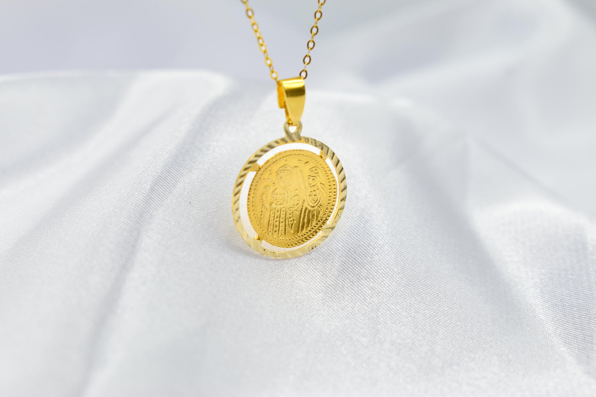 Κλασικό κωνσταντινάτο διπλής όψης από χρυσό 14 καρατίων, δουλεμένο με λεπτομέρεια και παραδοσιακή βυζαντινή αισθητική. Ένα κόσμημα με ιδιαίτερη πνευματική και συναισθηματική αξία, ιδανικό για καθημερινή χρήση αλλά και για ξεχωριστές περιστάσεις. 💛