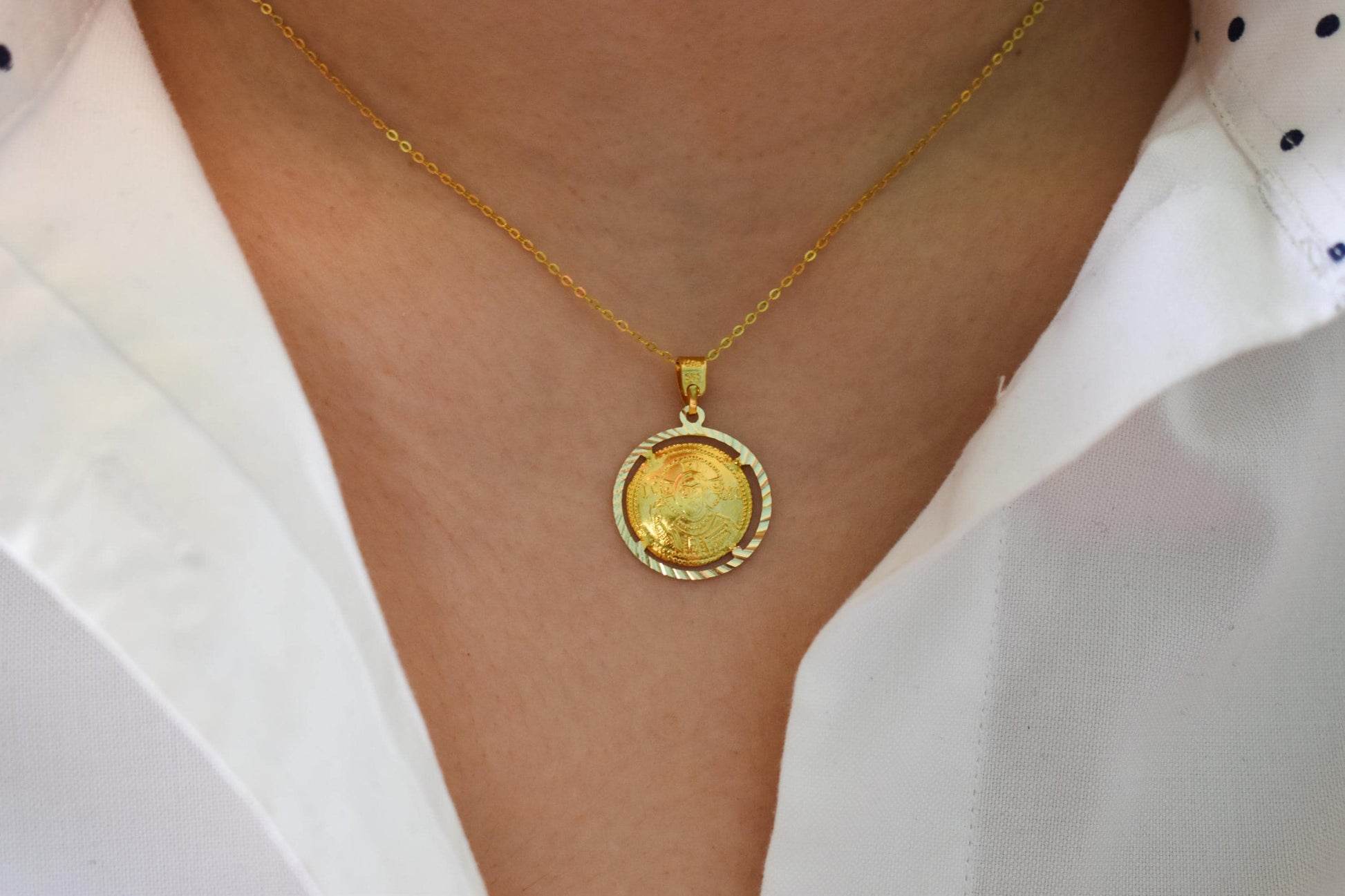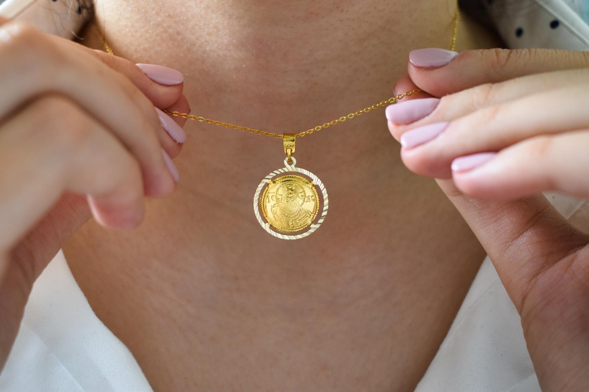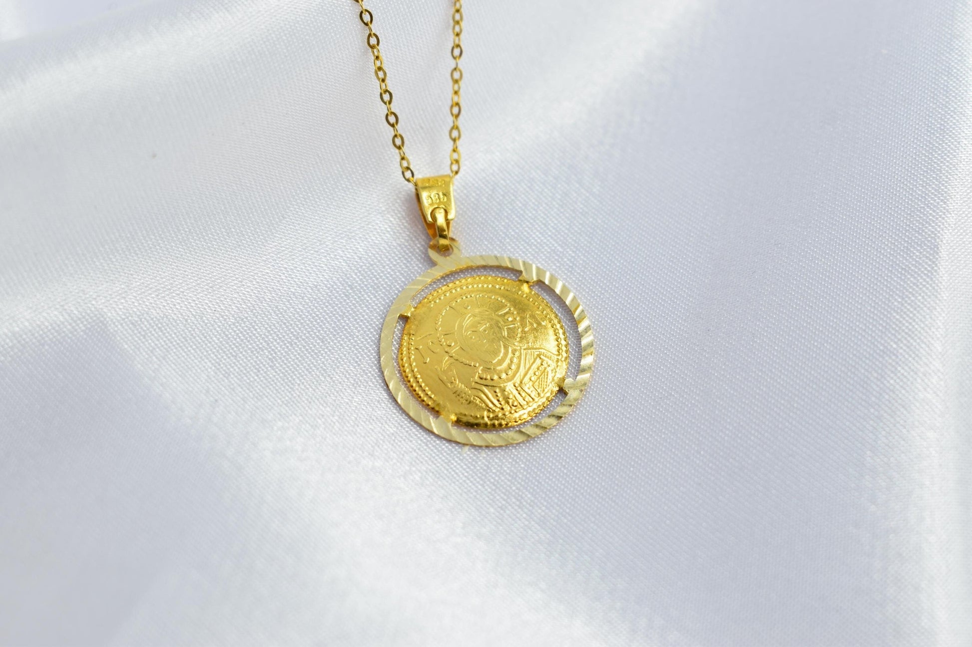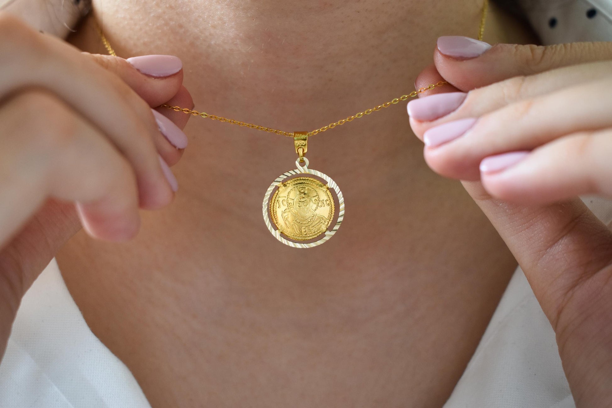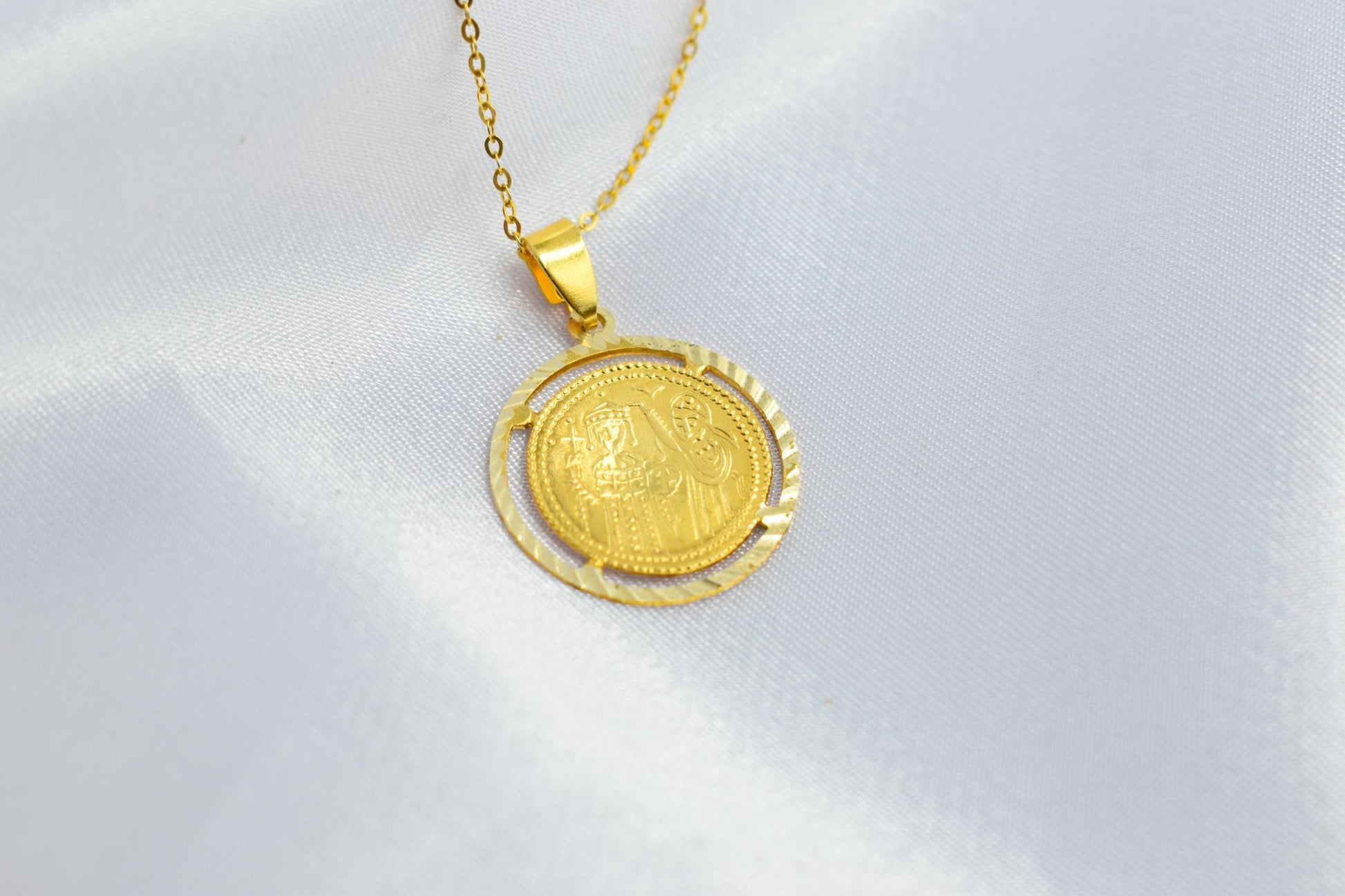 Κλασικό κωνσταντινάτο διπλής όψης από χρυσό 14 καρατίων, δουλεμένο με λεπτομέρεια και παραδοσιακή βυζαντινή αισθητική. Ένα κόσμημα με ιδιαίτερη πνευματική και συναισθηματική αξία, ιδανικό για καθημερινή χρήση αλλά και για ξεχωριστές περιστάσεις. 💛