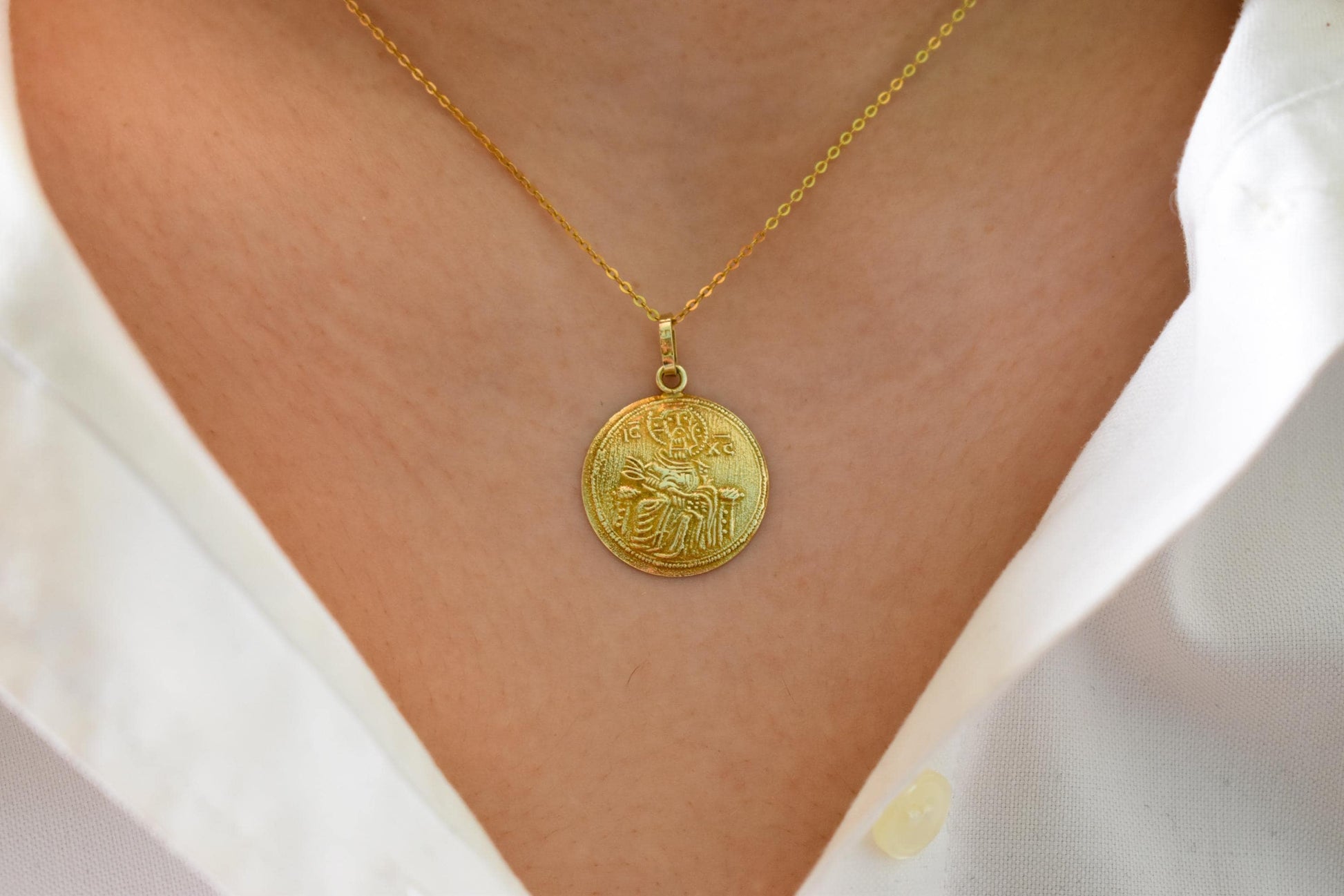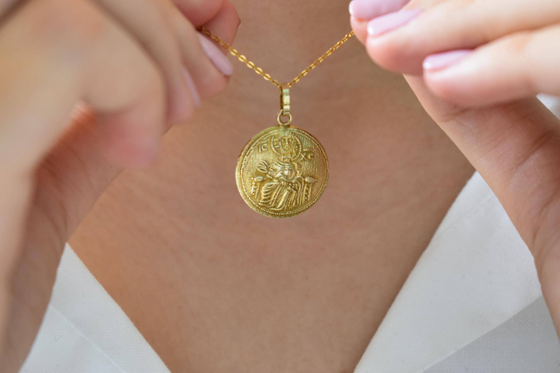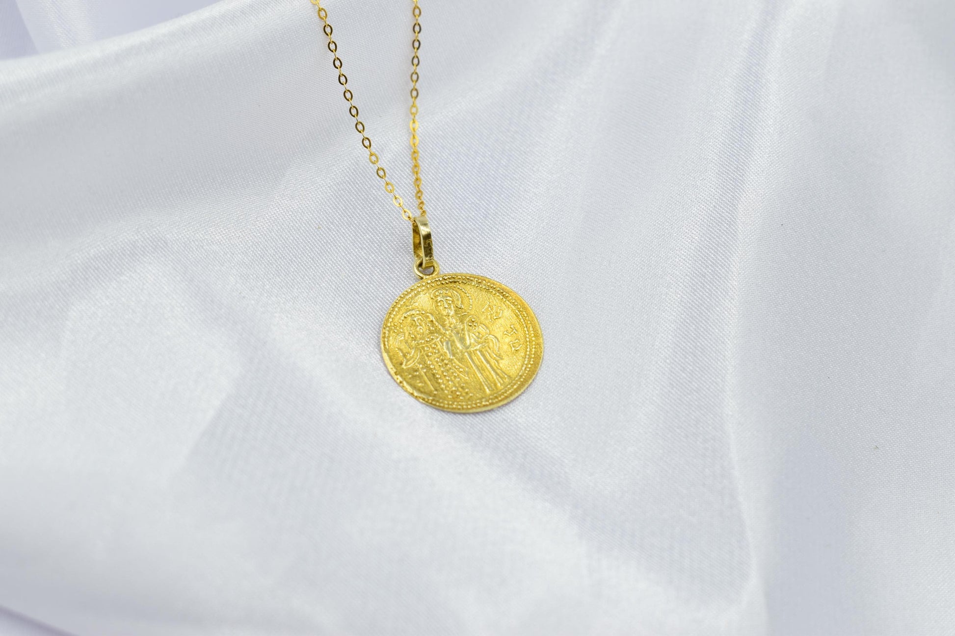 Αυθεντικό κωνσταντινάτο από χρυσό 14 καρατίων, φτιαγμένο με παραδοσιακή τεχνική και ανάγλυφη απεικόνιση. Ένα σύμβολο πίστης και προστασίας, ιδανικό για καθημερινή χρήση ή ως δώρο με διαχρονική αξία. 💛