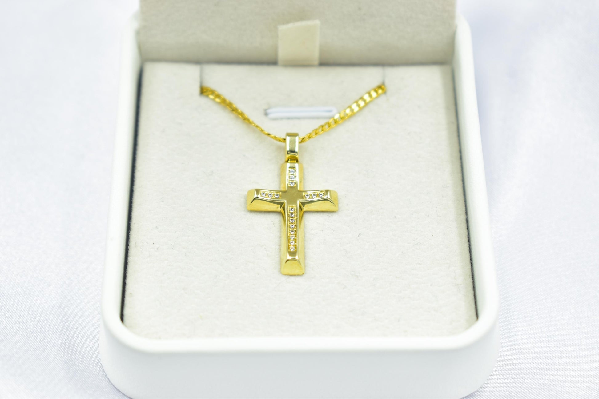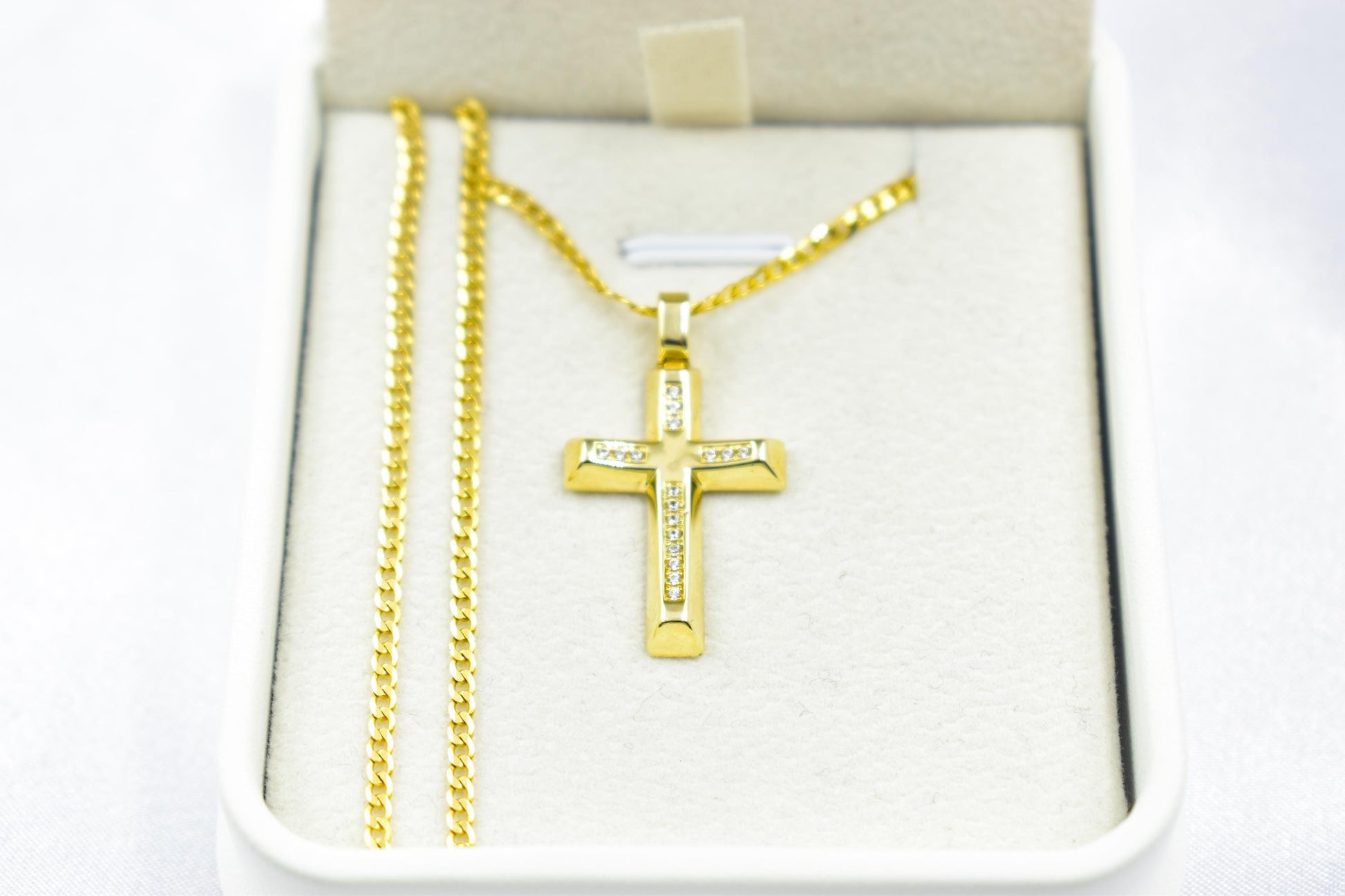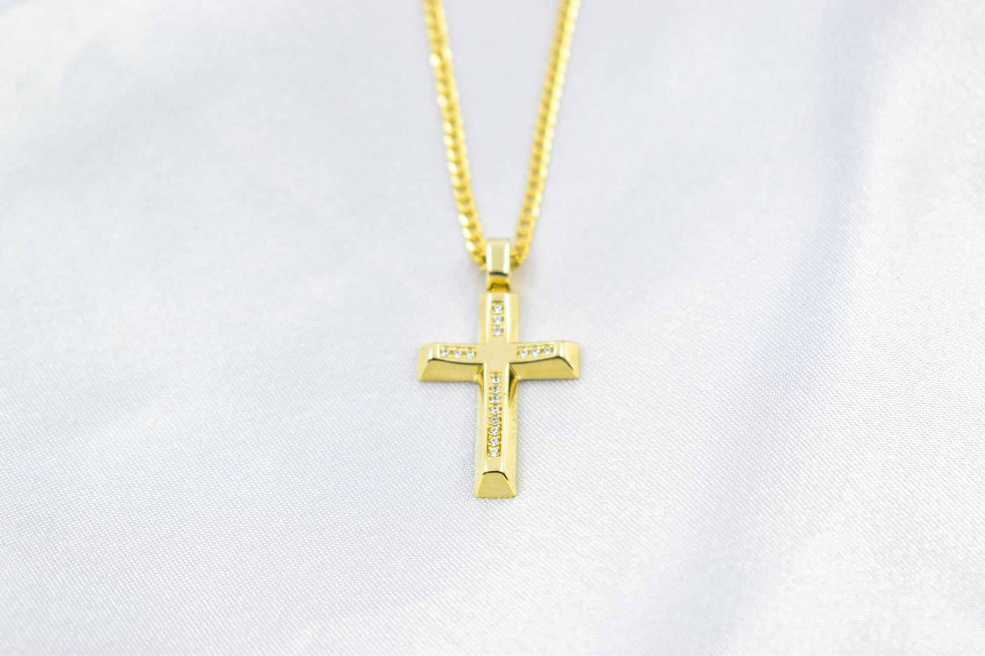14K Gold Cross Pendant with Zircon Stones | Elegant Christian Necklace | Available as Pendant Only or Complete Set with Chain