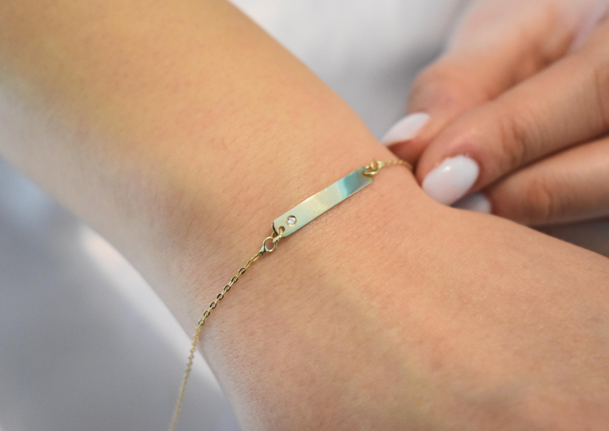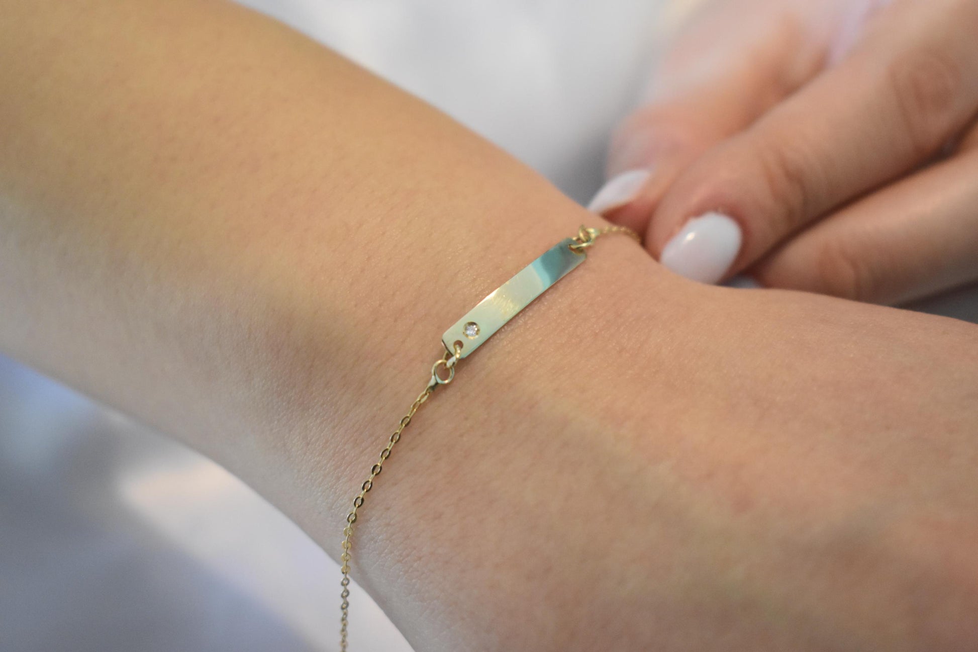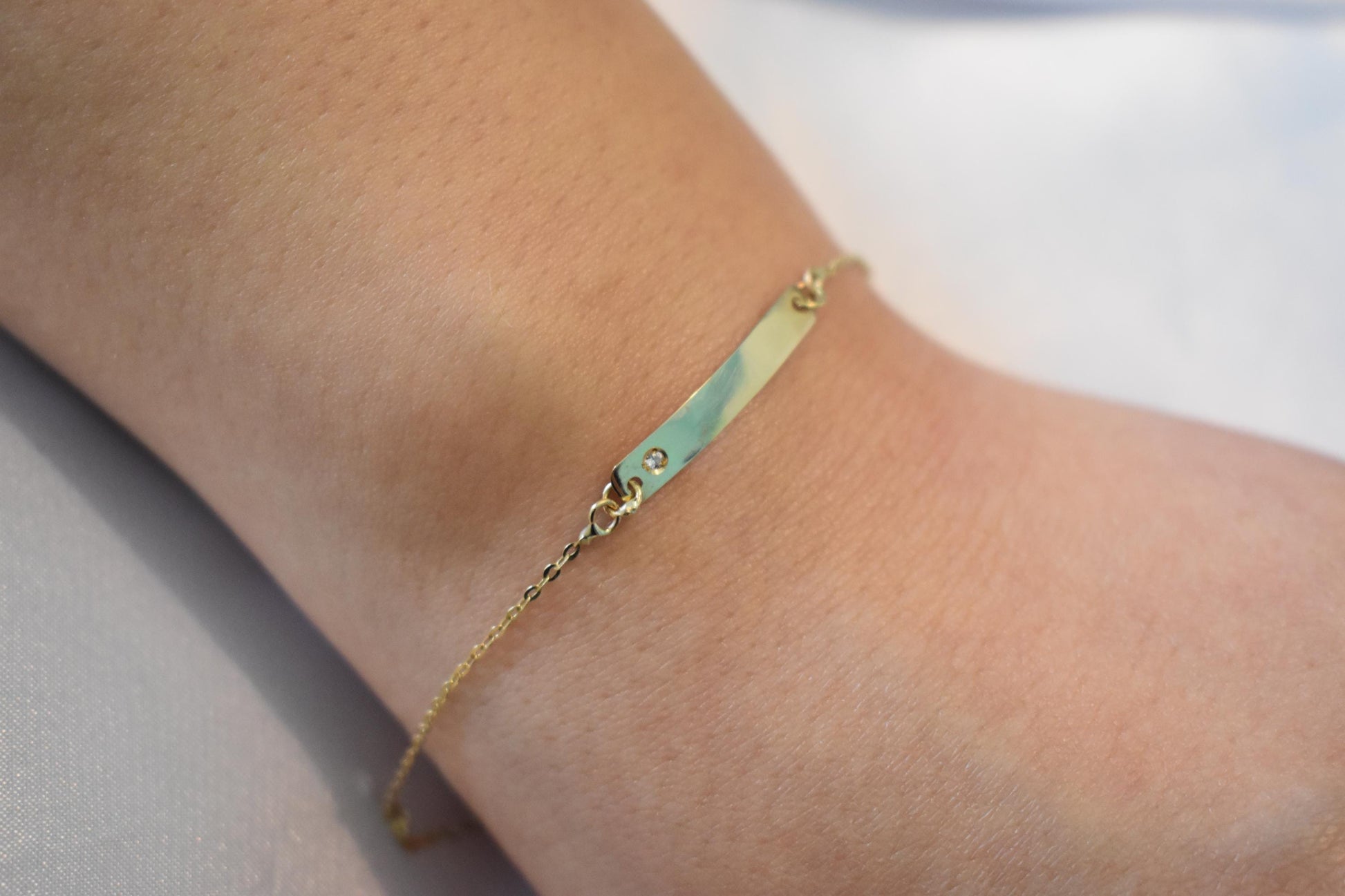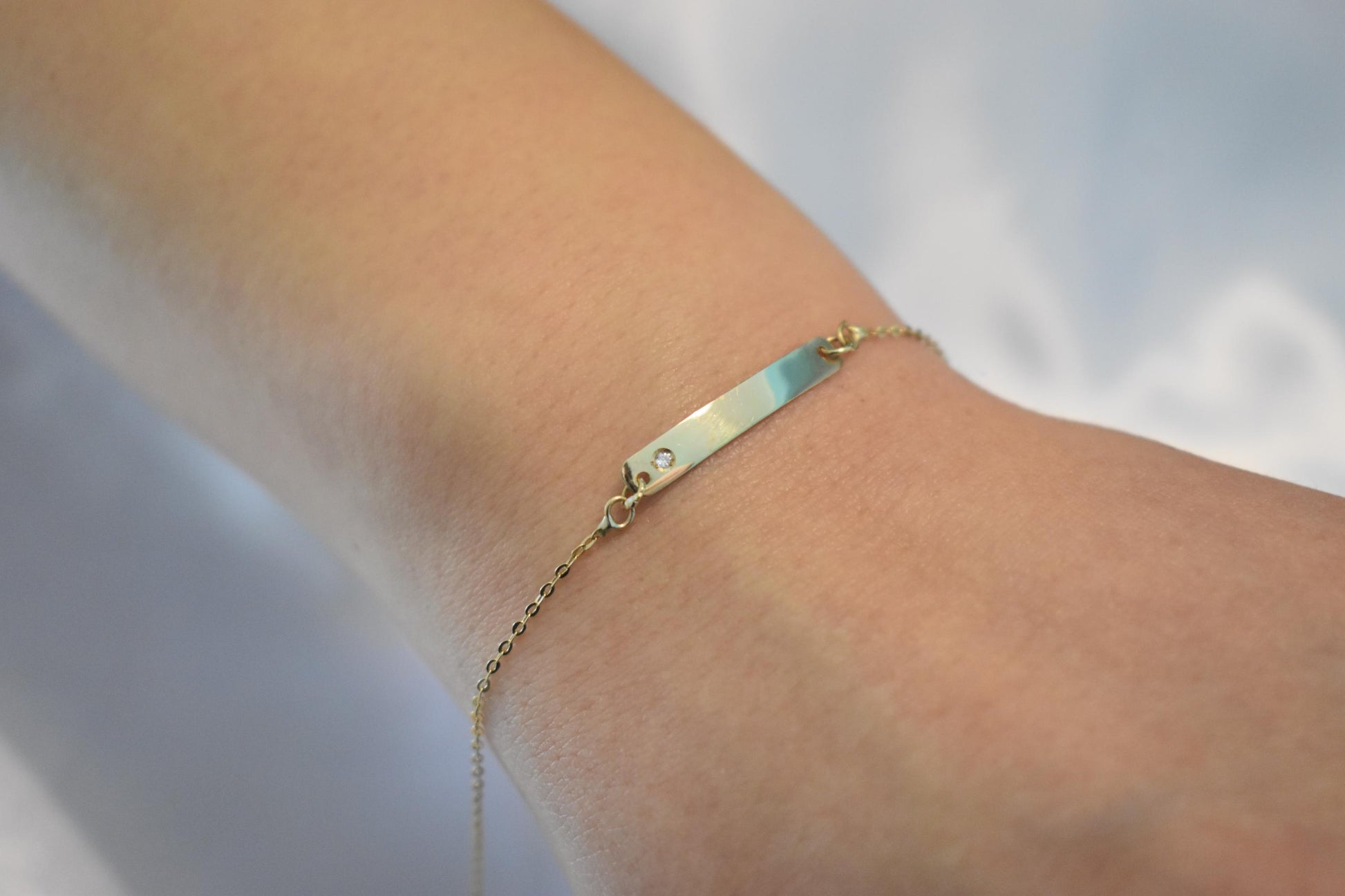 Χειροποίητη χρυσή ταυτότητα βραχιόλι Κ14 σε ιδιαίτερα λεπτή και κομψή γραμμή, ιδανική για καθημερινή χρήση αλλά και για δώρο σε αγαπημένα πρόσωπα.