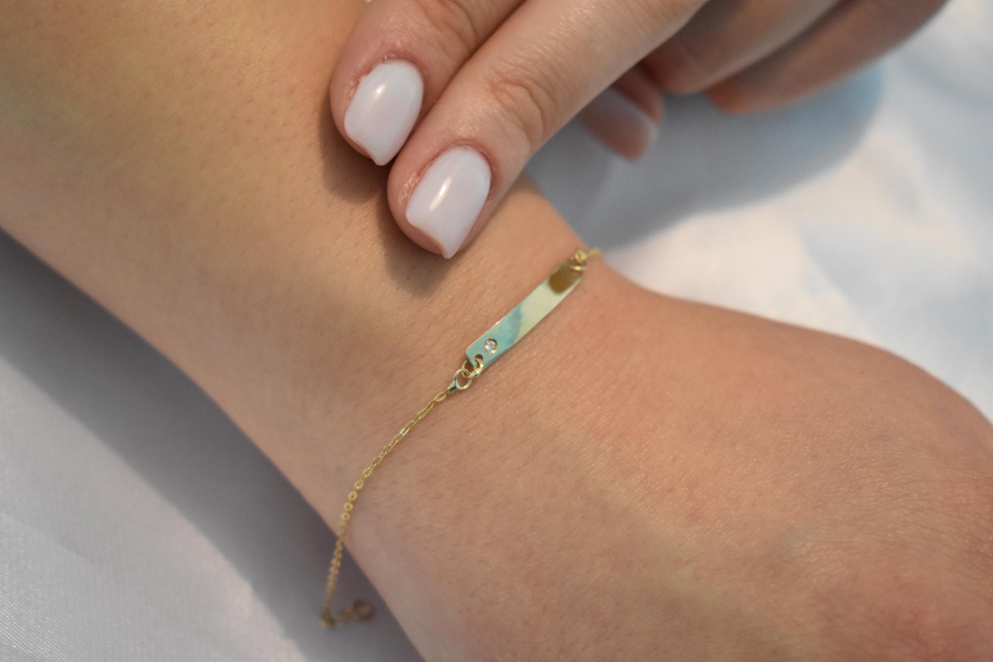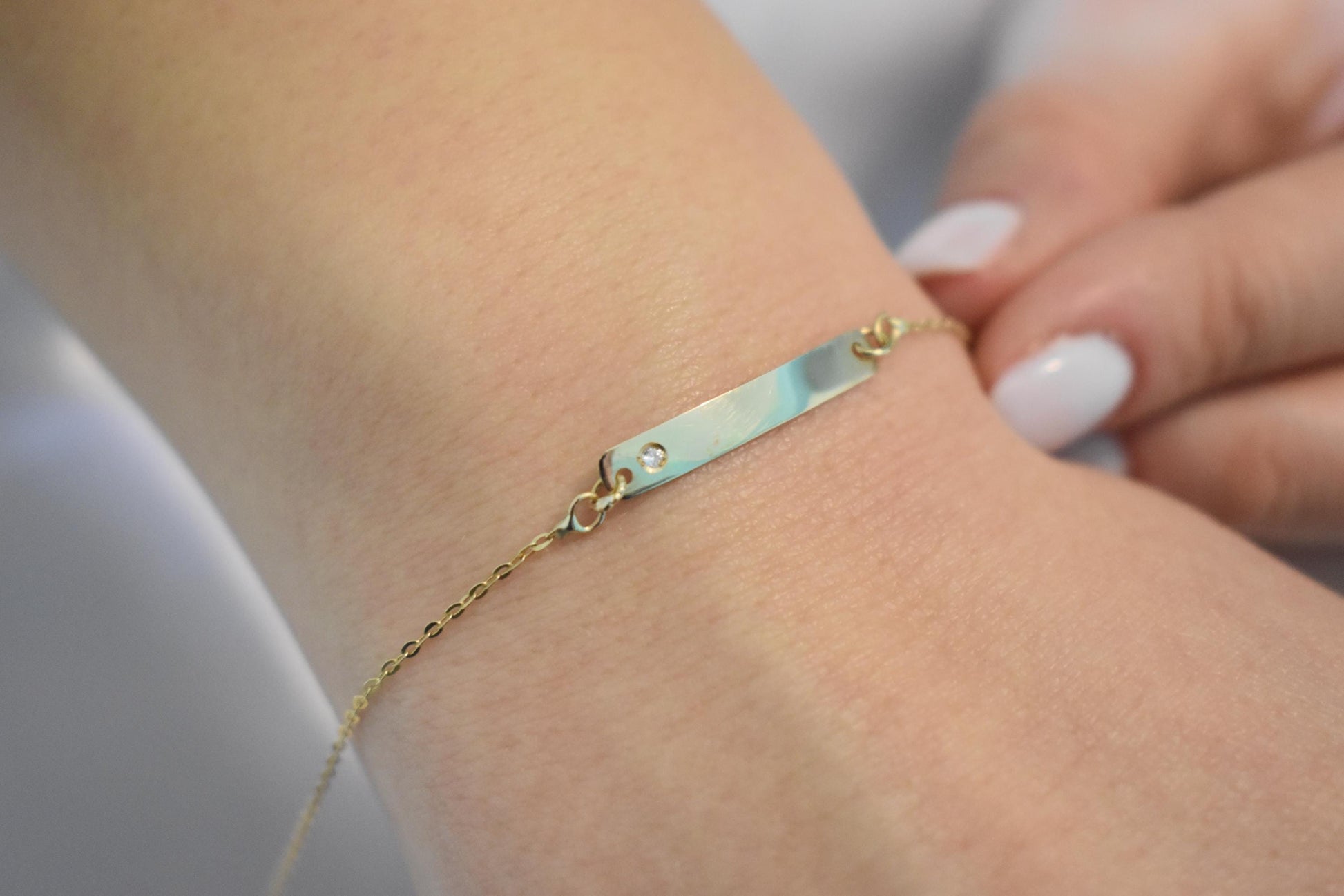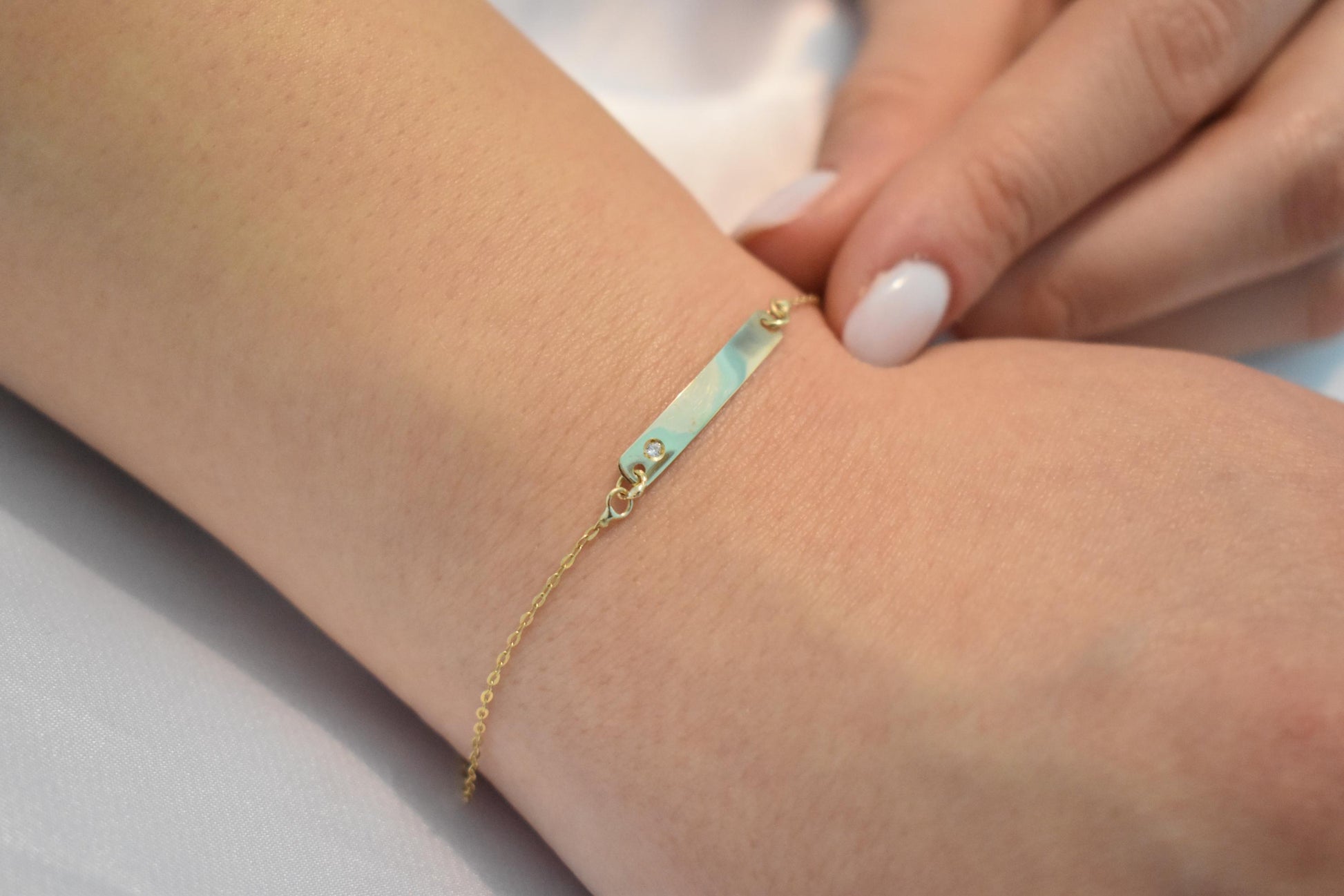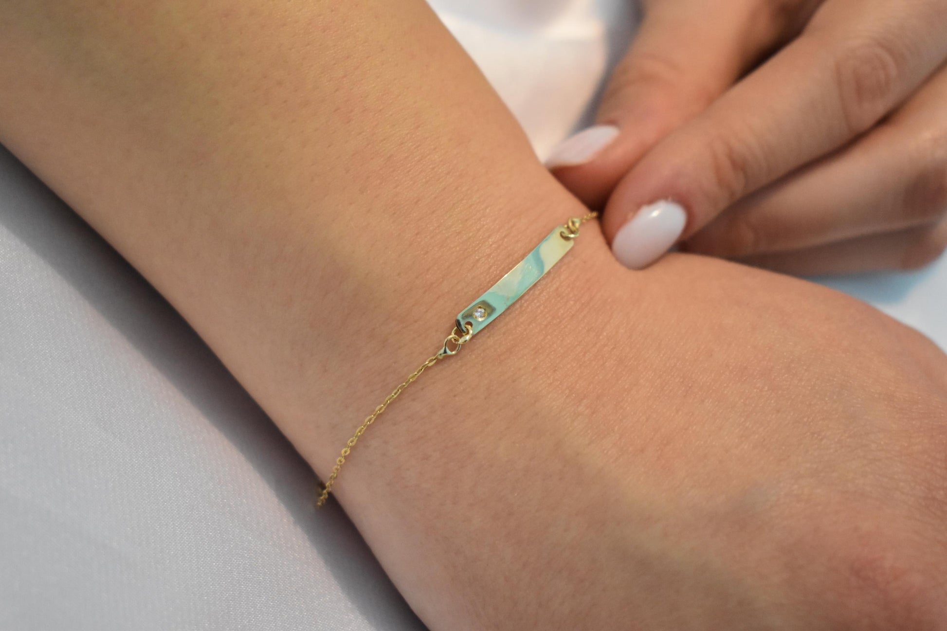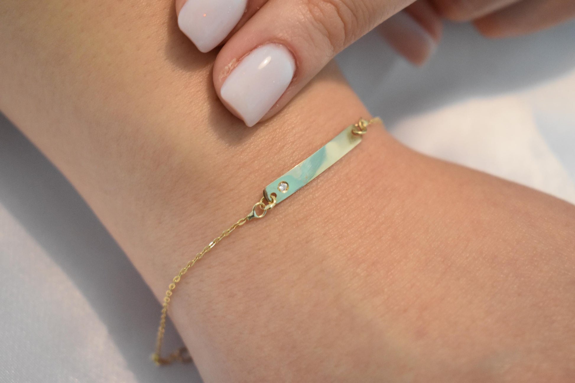 Χειροποίητη χρυσή ταυτότητα βραχιόλι Κ14 σε ιδιαίτερα λεπτή και κομψή γραμμή, ιδανική για καθημερινή χρήση αλλά και για δώρο σε αγαπημένα πρόσωπα.
