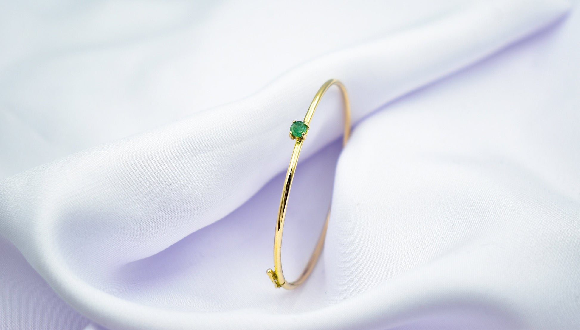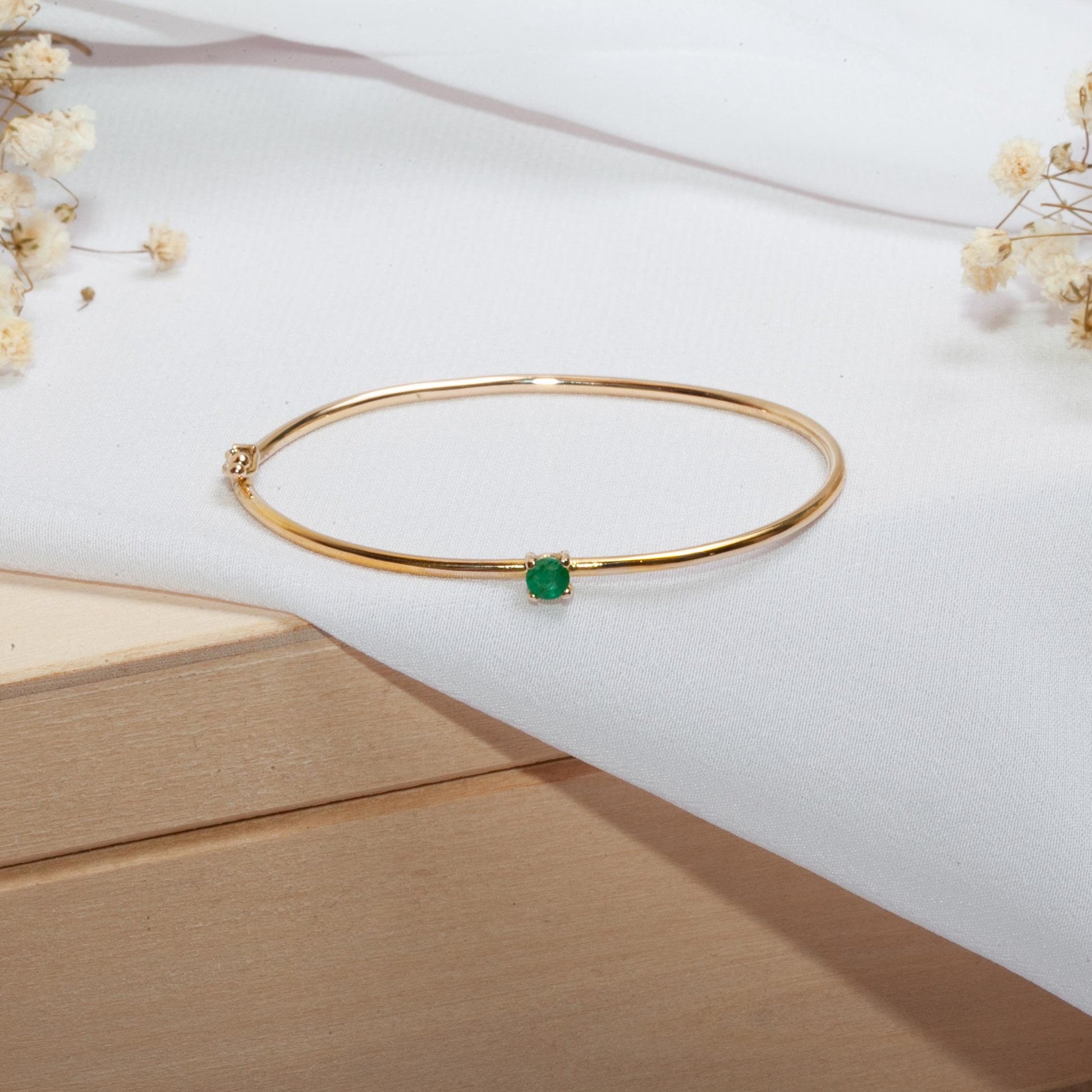 This piece is not just a bracelet; it's a symbol of sophistication and individuality. Whether you’re searching for a unique gift for her or treating yourself, this elegant gold bangle with its brilliant emerald gemstone is the perfect choice. Ideal for birthdays, anniversaries, or simply to show appreciation, this emerald jewelry is sure to be cherished for years to come