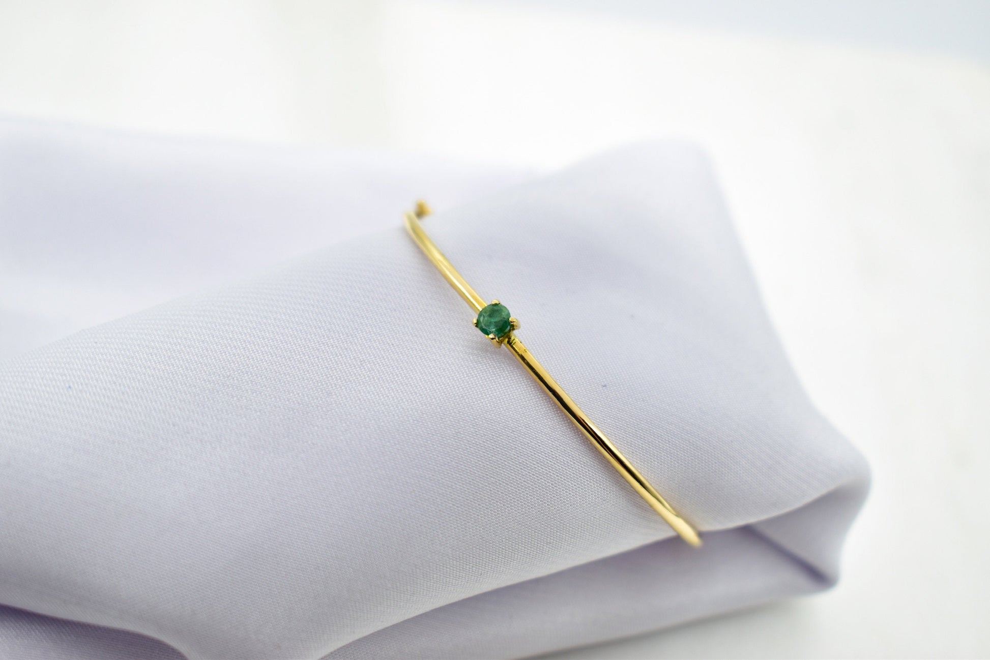 14K Gold Emerald Bangle,Emerald Bracelet,Bracelet for Women,Emerald Bezel Bracelet,May Birthstone Bracelet,Emerald Bangle For Women