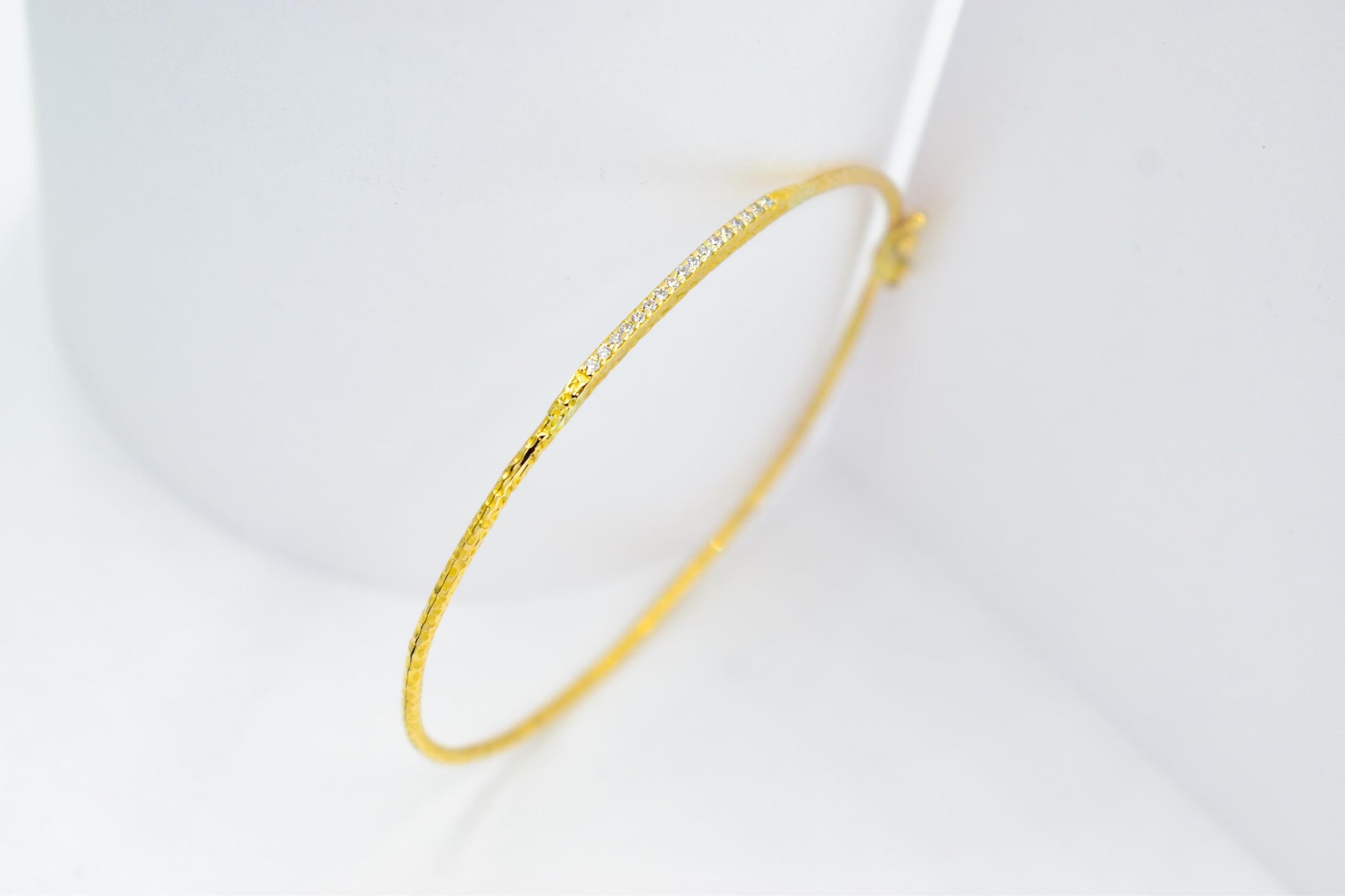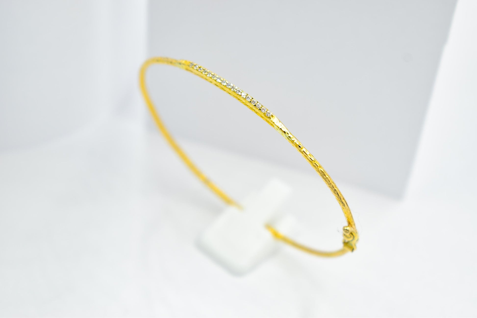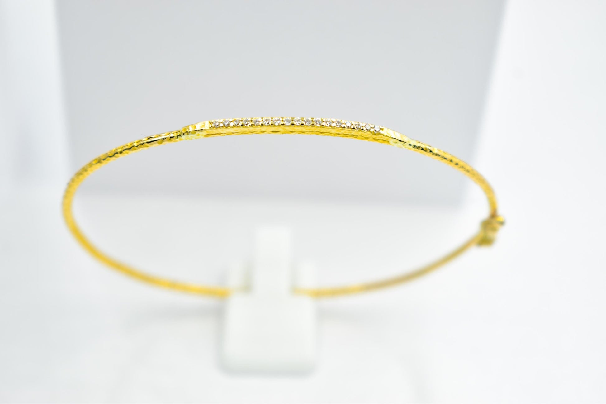 14K Gold Hammered Bar Bracelet,VVS1 Diamond or Zircon Cuff,Dainty Custom Bangle, Minimalist Stacking Gold Jewellery Gift for Her