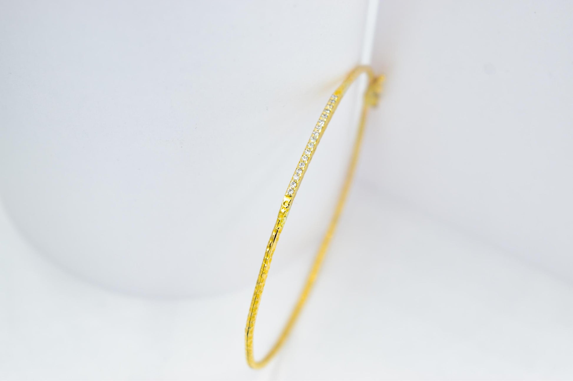 Show off your style with this elegant 14K gold bracelet, featuring a delicate bar set with sparkling zircons or VVS1 diamonds — depending on your choice. The bar’s clean line and minimal design make it perfect for everyday wear or for layering with other bracelets.