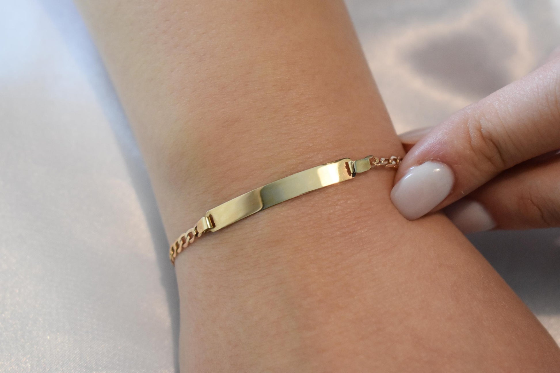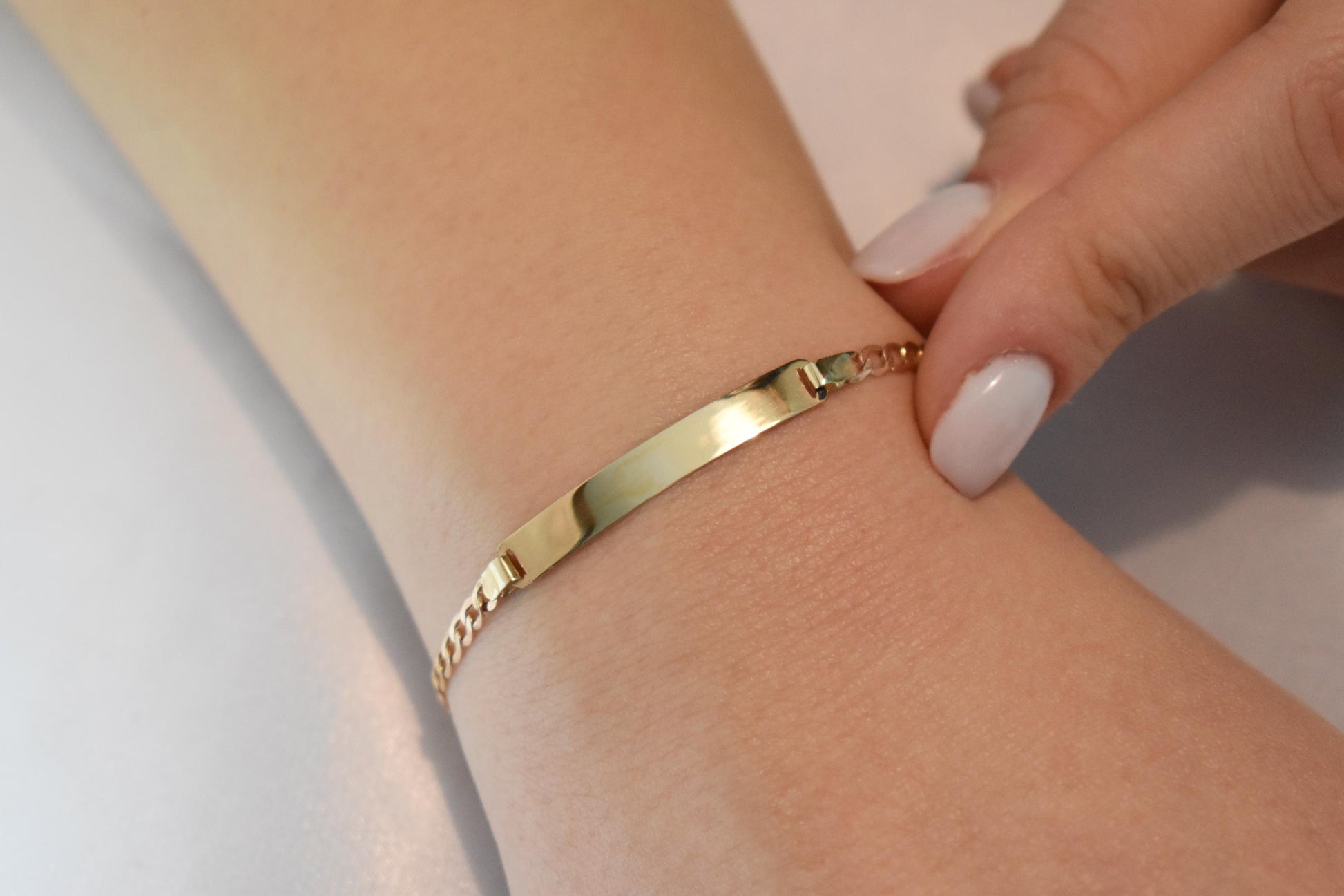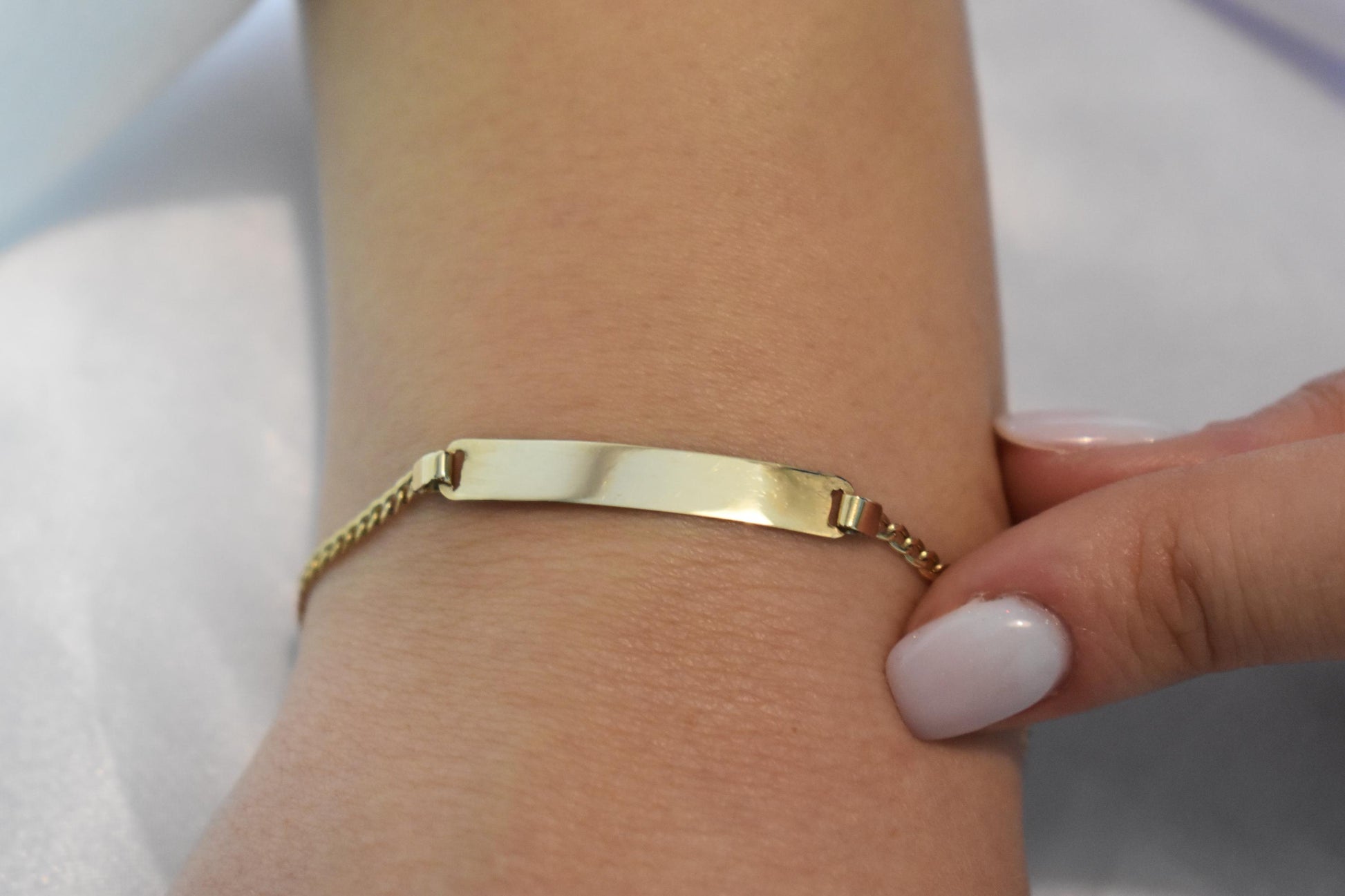 Χρυσή ταυτότητα βραχιόλι Κ14 κατασκευασμένη στο εργαστήριό μας, κατάλληλη για άνδρες, γυναίκες ή παιδιά.