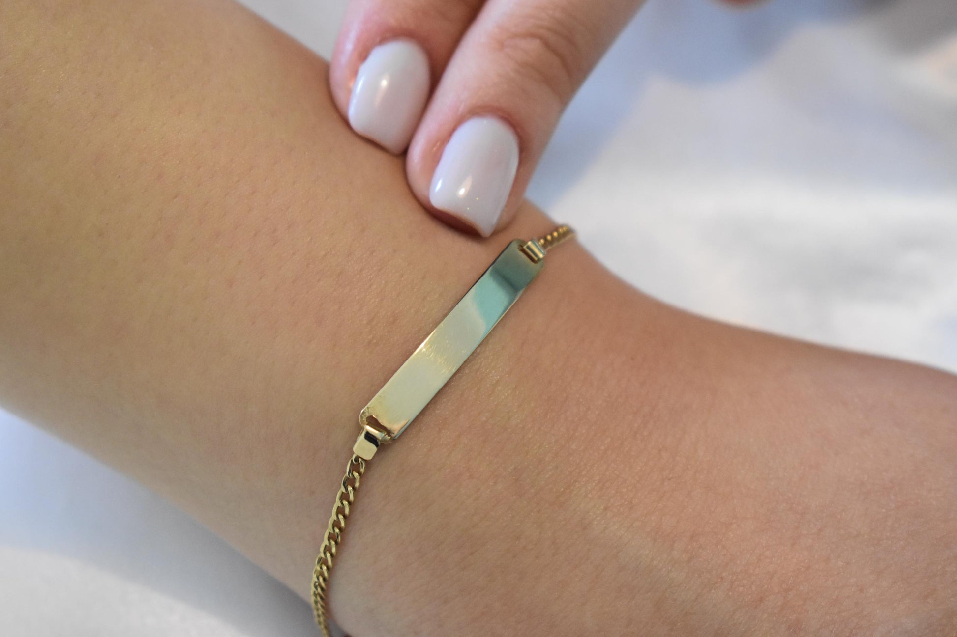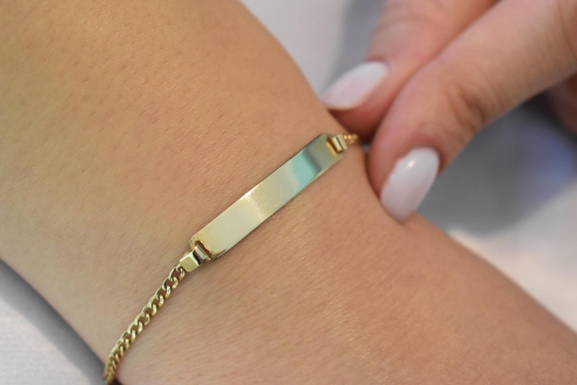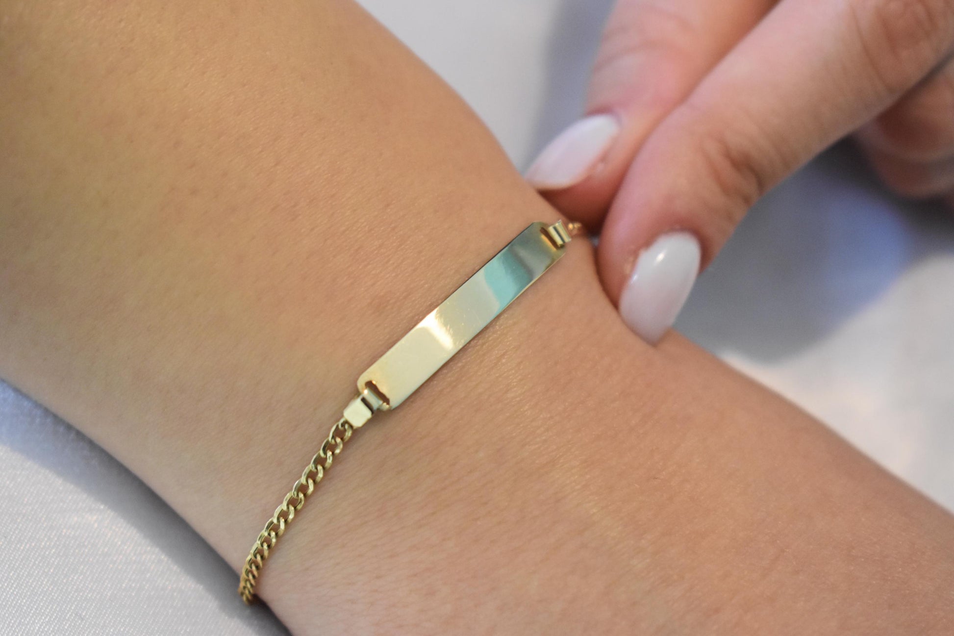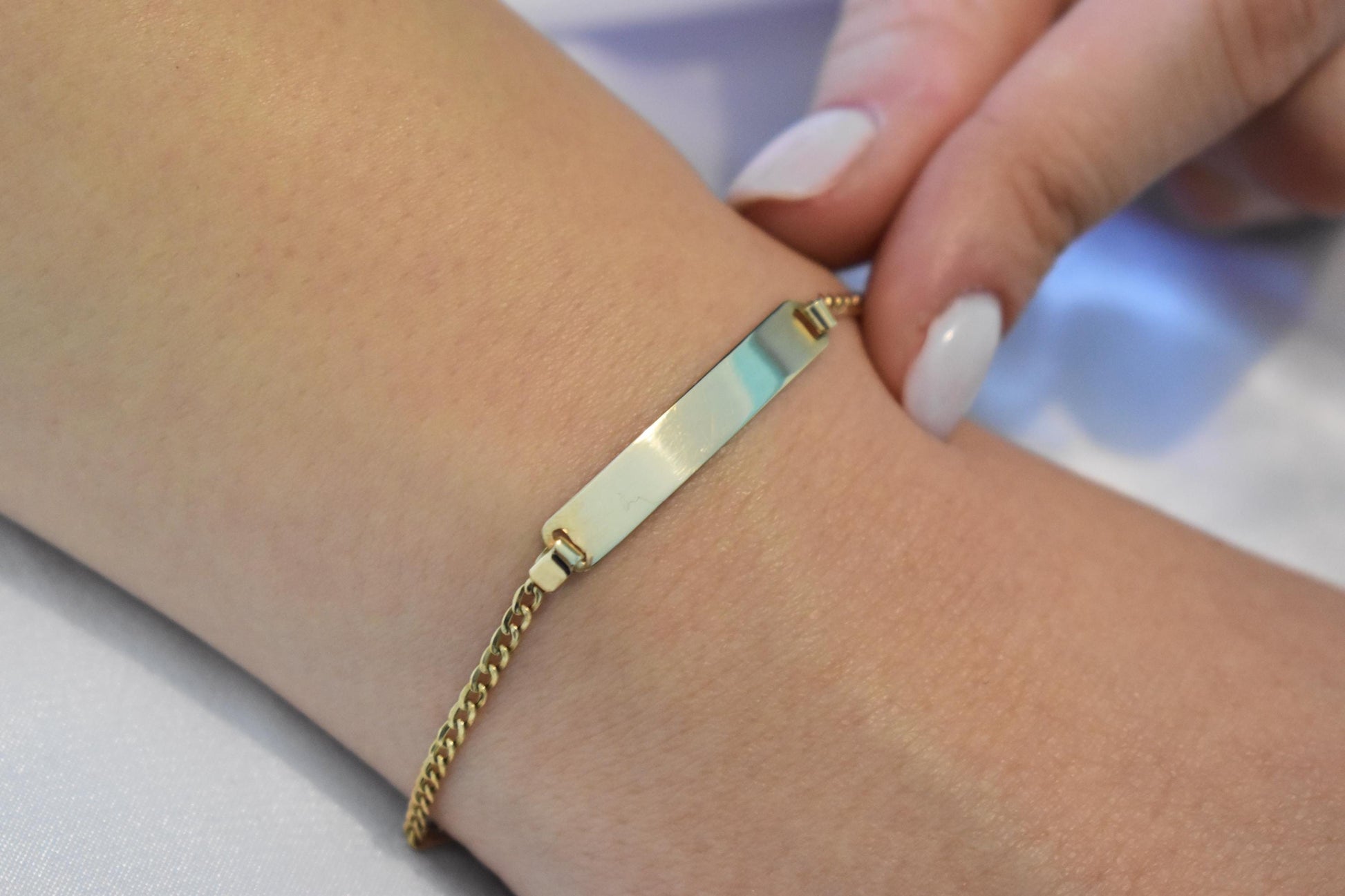 Χρυσή ταυτότητα βραχιόλι Κ14 κατασκευασμένη στο εργαστήριό μας, κατάλληλη για άνδρες, γυναίκες ή παιδιά.
