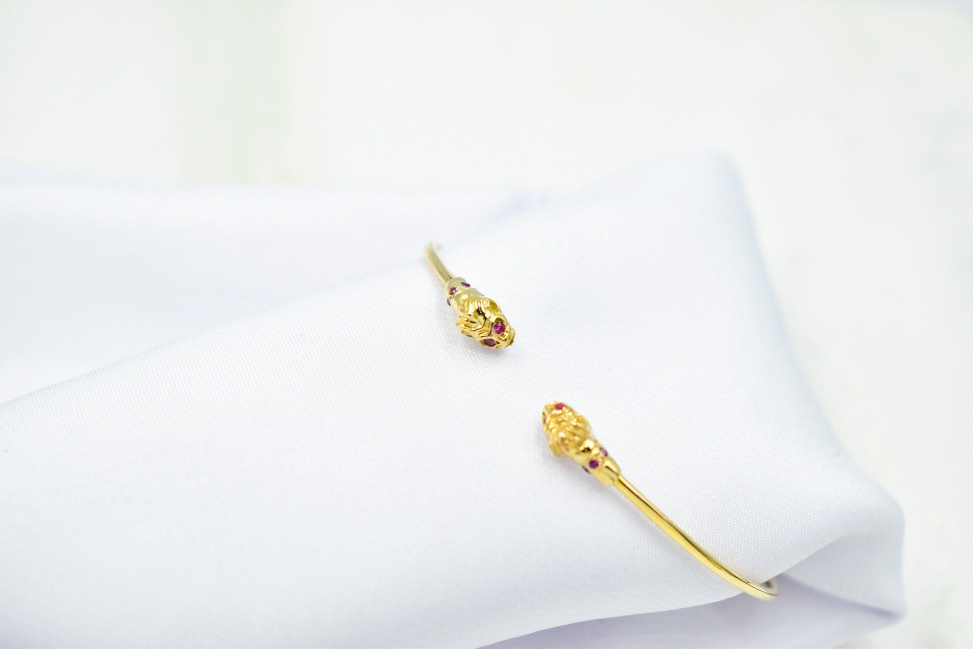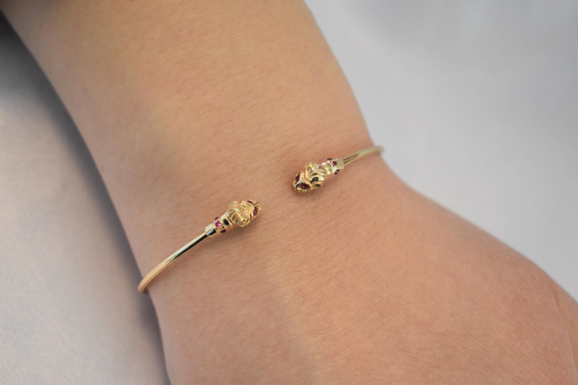 14K Gold Lion Head Bracelet with Gemstone Eyes,Ancient Greek Lion Bracelet,Unisex Bracelet,Animal Bangle,Symbol of Strength,Gift for Her