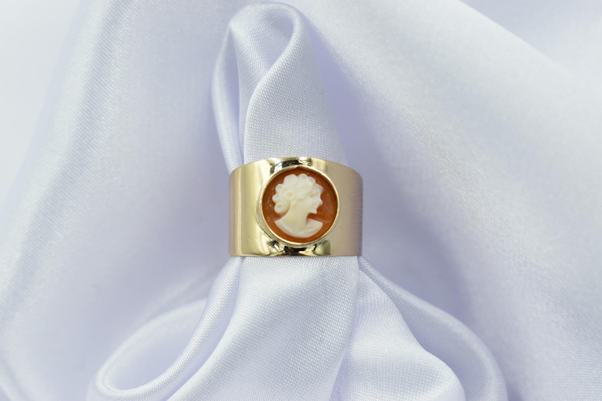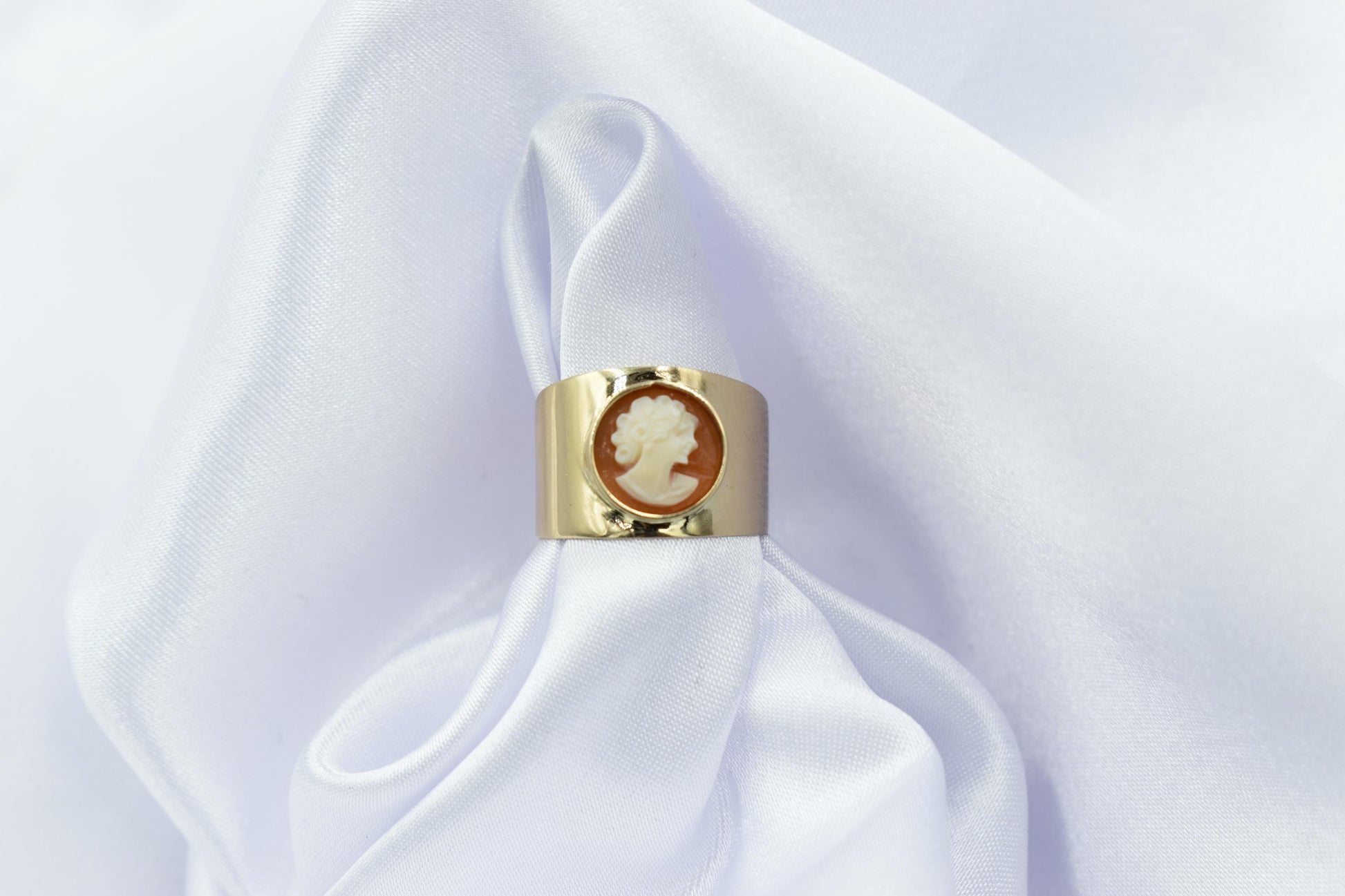 Whether you're looking for a unique piece of luxury jewelry or a heartfelt gift for her, this 14K gold cameo ring is sure to impress with its sophisticated design and exquisite detailing. Perfect for women who love timeless gold jewelry, this ring is a versatile and elegant addition to any jewelry collection.