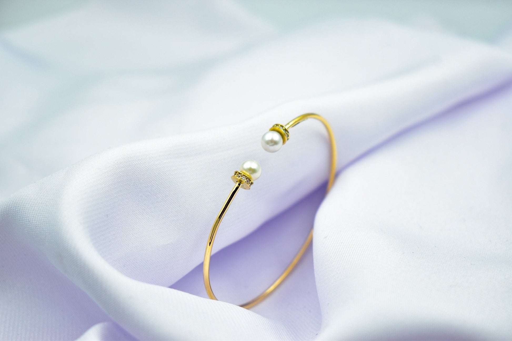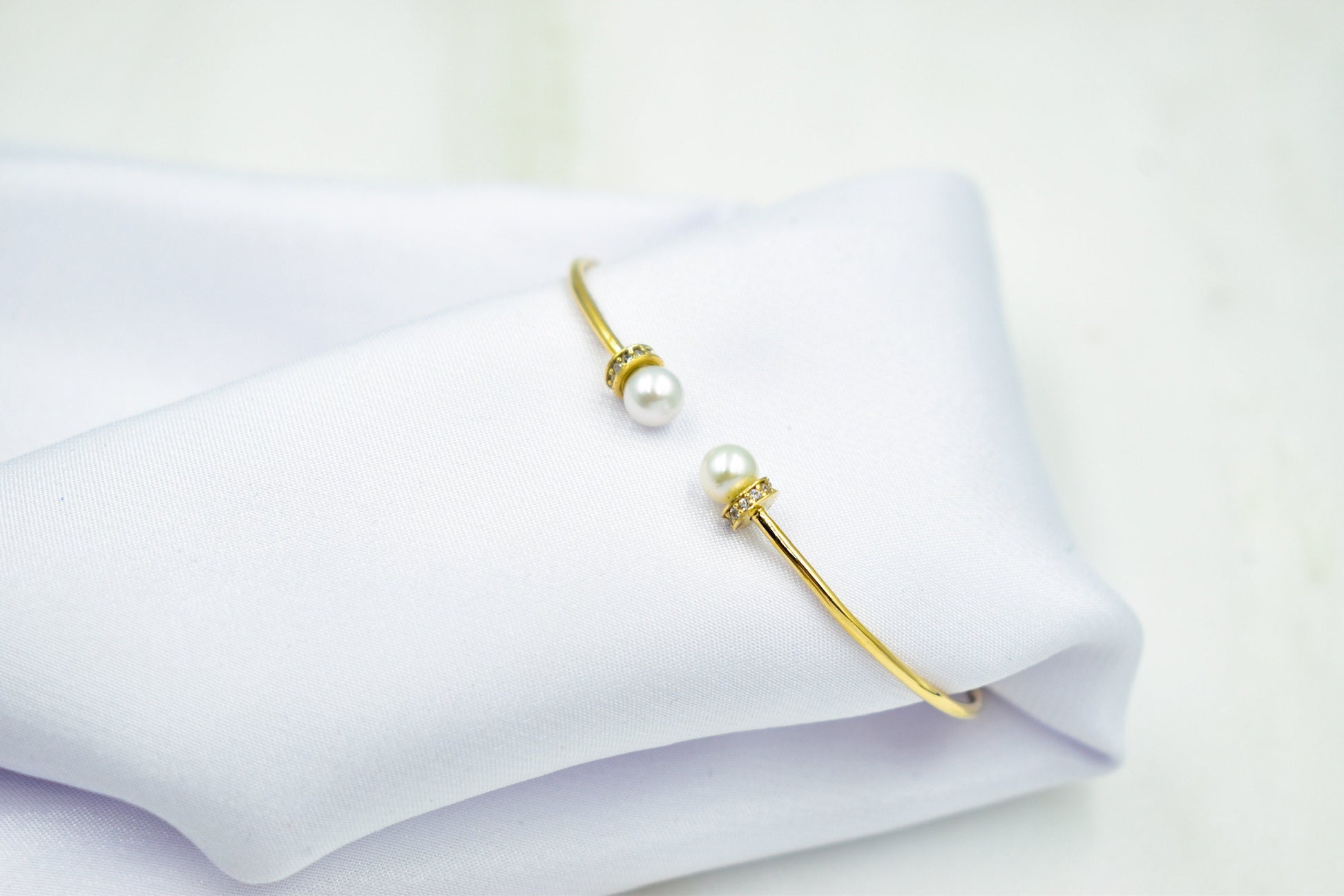 14K Gold Pearl Bracelet,Pearl Gold Bracelet,Minimal Pearl Bangle Bracelet,Wedding & Engagement Gold Pearl,Bridal and Bridesmaid Bracelet