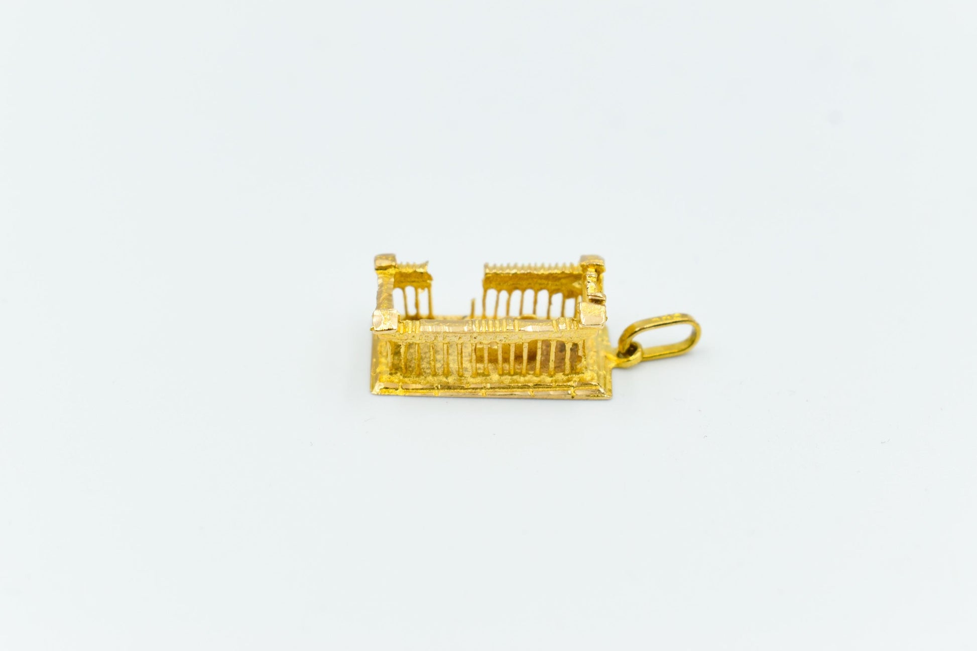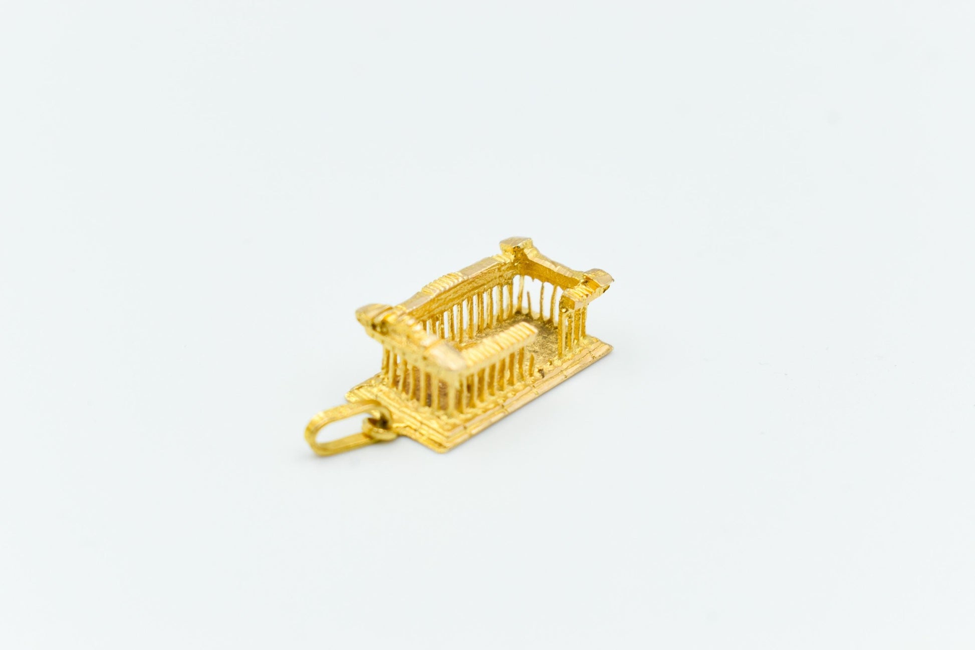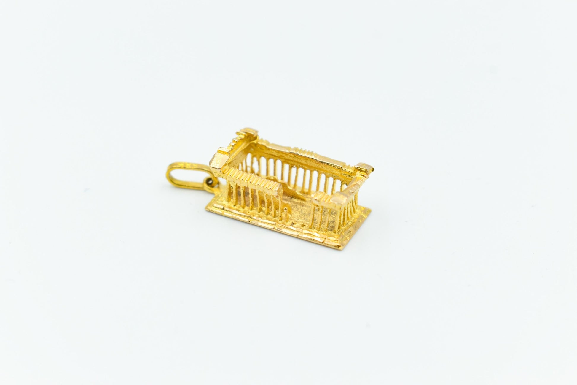 Ένα μοναδικό χειροποίητο κρεμαστό από χρυσό 14 καρατίων, εμπνευσμένο από τον Παρθενώνα – το πιο εμβληματικό σύμβολο της αρχαίας Ελλάδας. Η λεπτομερής τρισδιάστατη αποτύπωση του μνημείου το κάνει όχι απλώς κόσμημα, αλλά μικρογλυπτική σε φορητή μορφή.