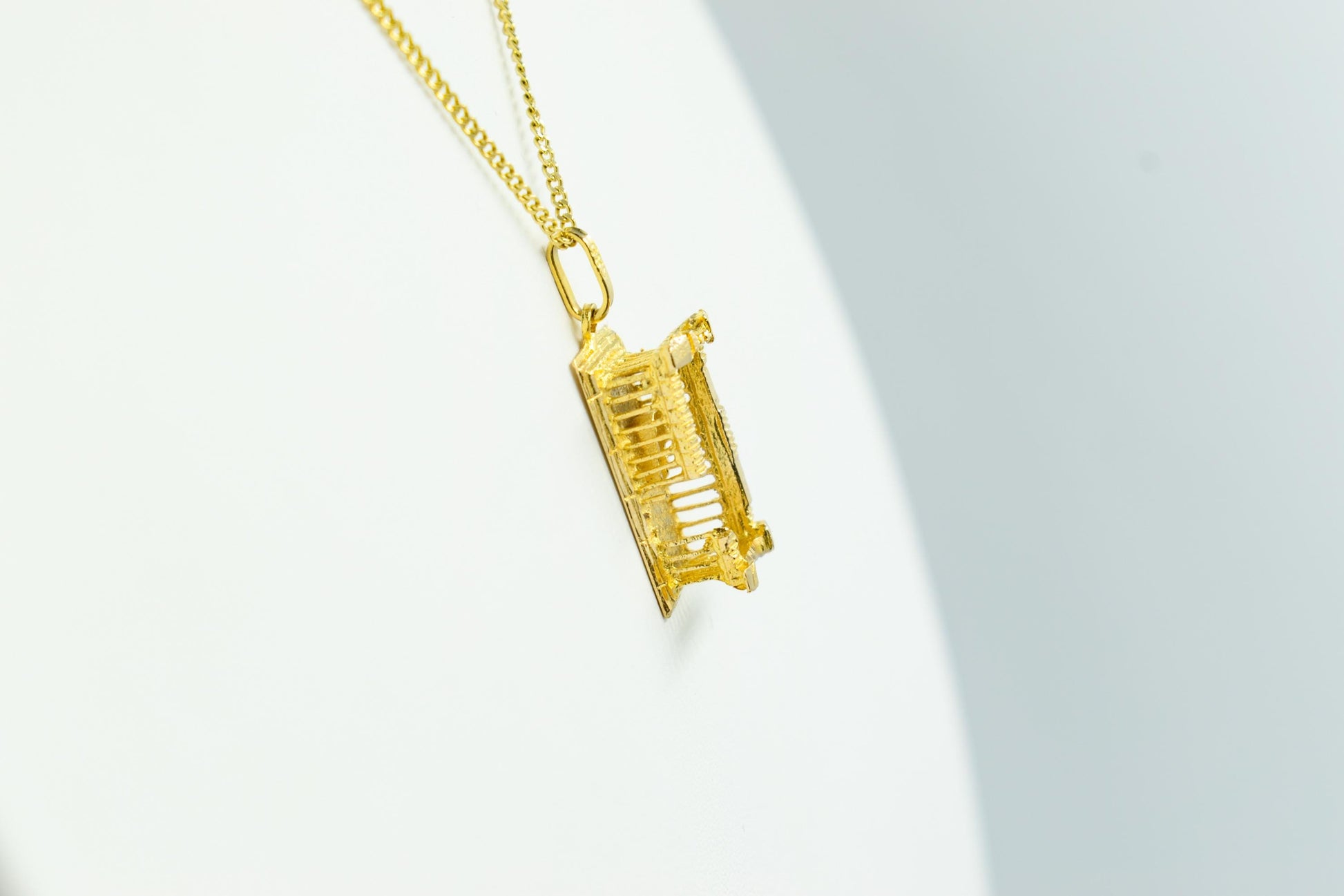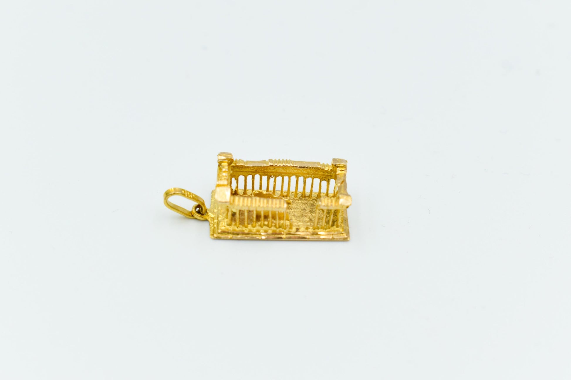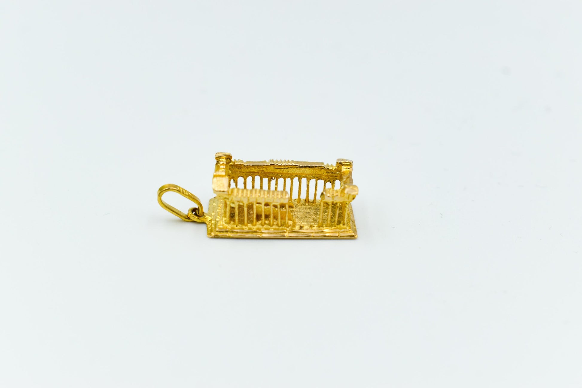Ένα μοναδικό χειροποίητο κρεμαστό από χρυσό 14 καρατίων, εμπνευσμένο από τον Παρθενώνα – το πιο εμβληματικό σύμβολο της αρχαίας Ελλάδας. Η λεπτομερής τρισδιάστατη αποτύπωση του μνημείου το κάνει όχι απλώς κόσμημα, αλλά μικρογλυπτική σε φορητή μορφή.
