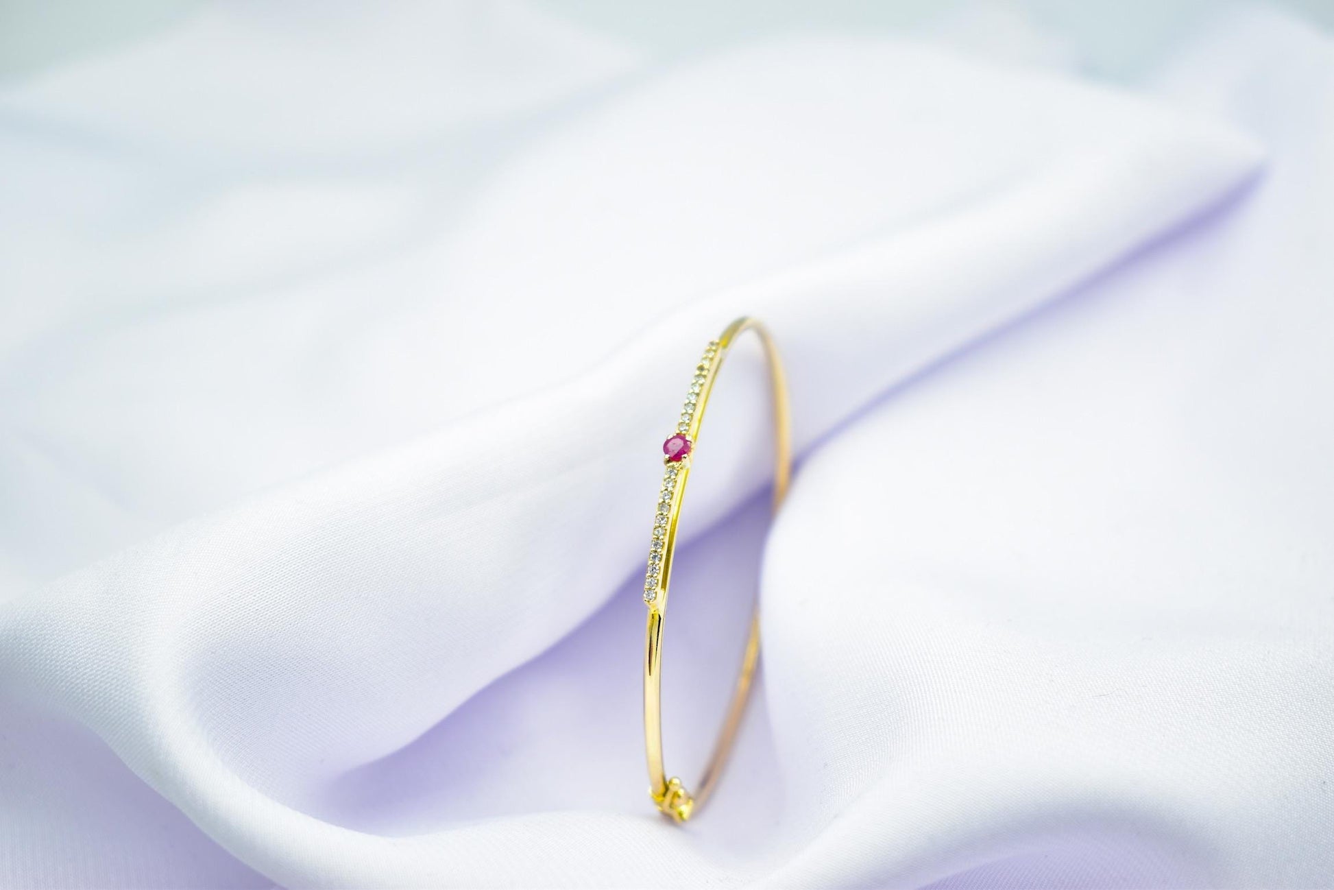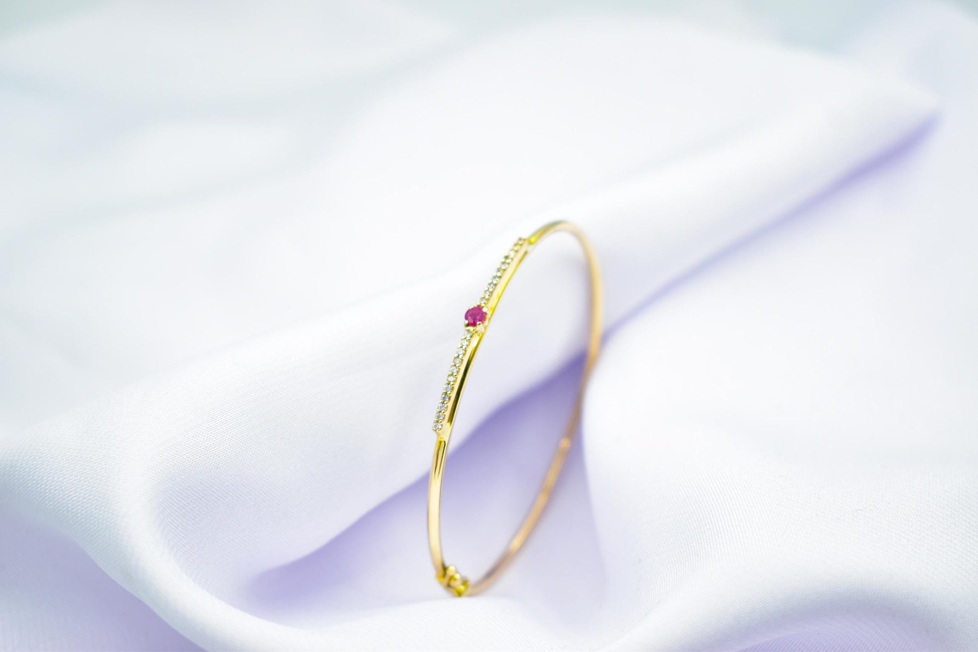 14K Gold Bangle with Ruby & Zircon – Timeless Elegance & Luxury
