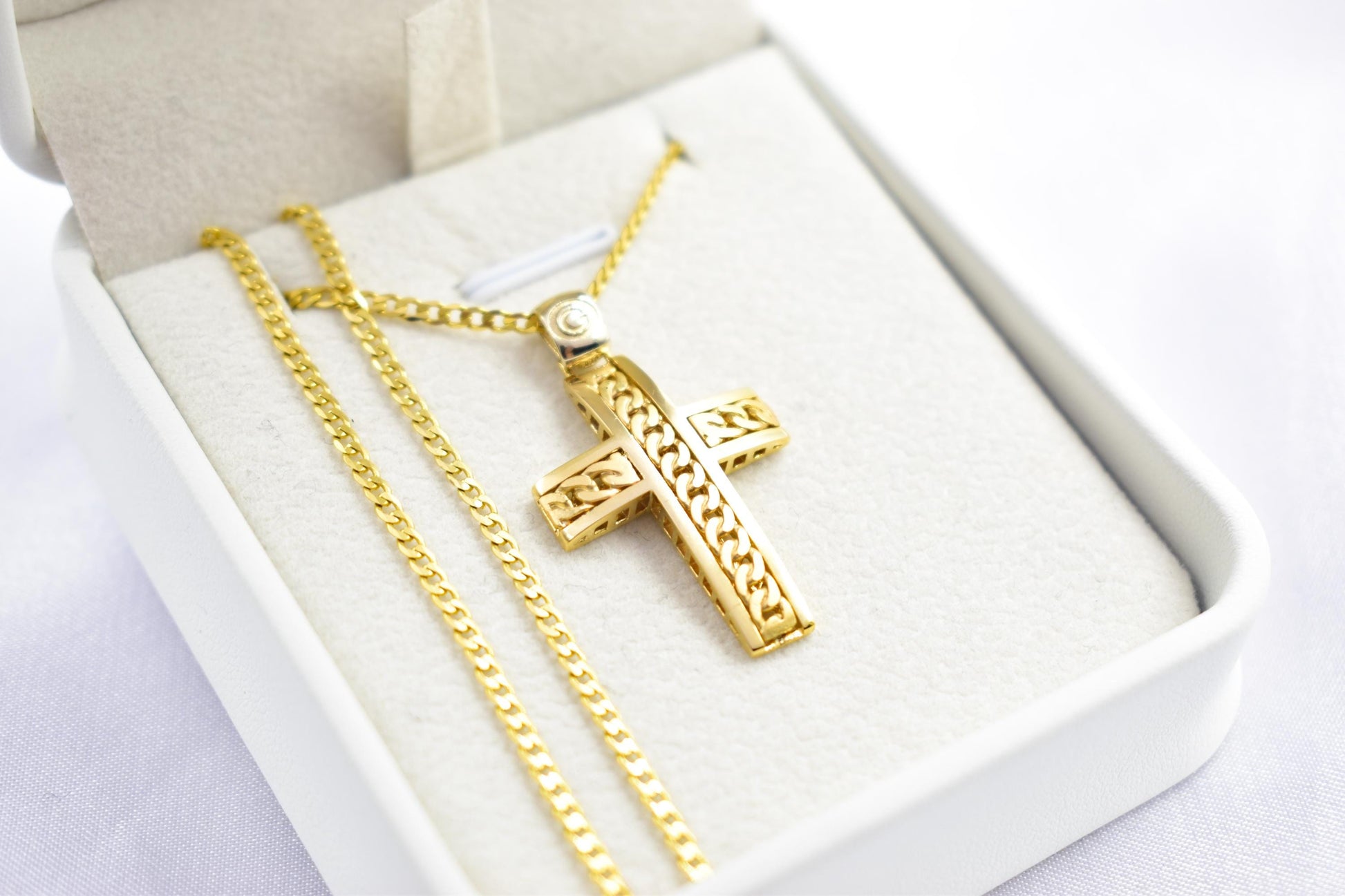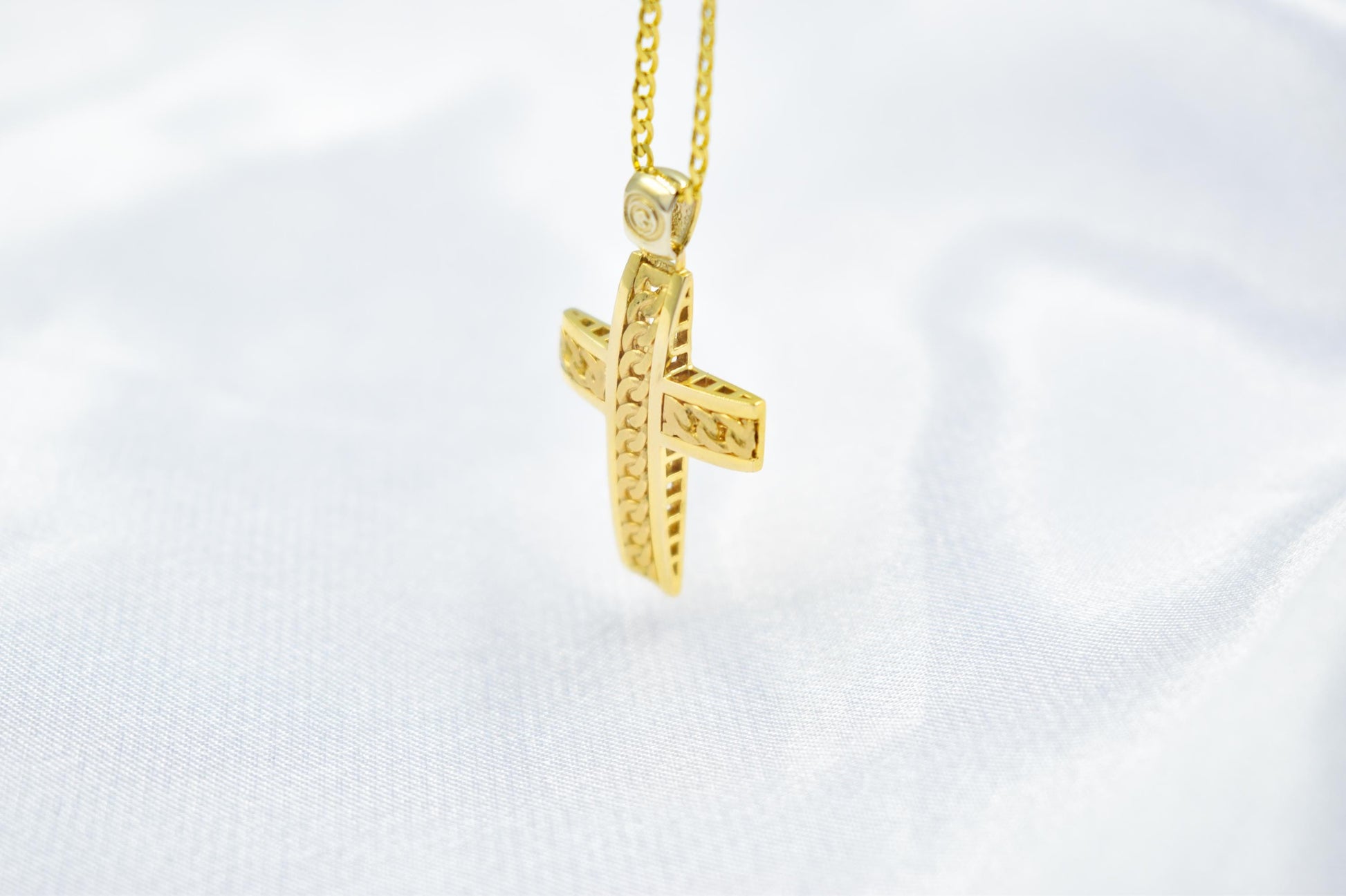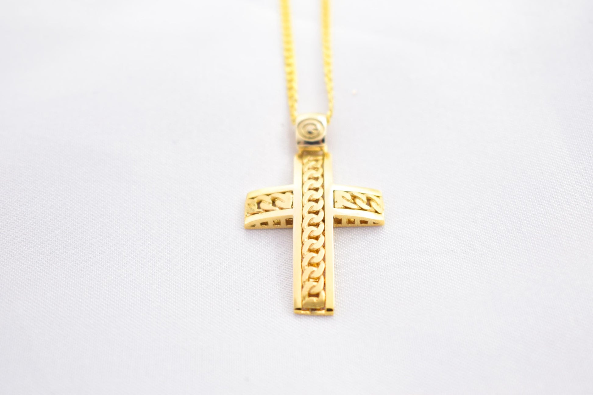 Ανδρικοί Σταυροί 14K Gold Solid Cross Pendant with Cuban Chain Design | Reversible Design | Handmade Christian Jewellery,Men’s & Women’s Option ,Baptism Gift