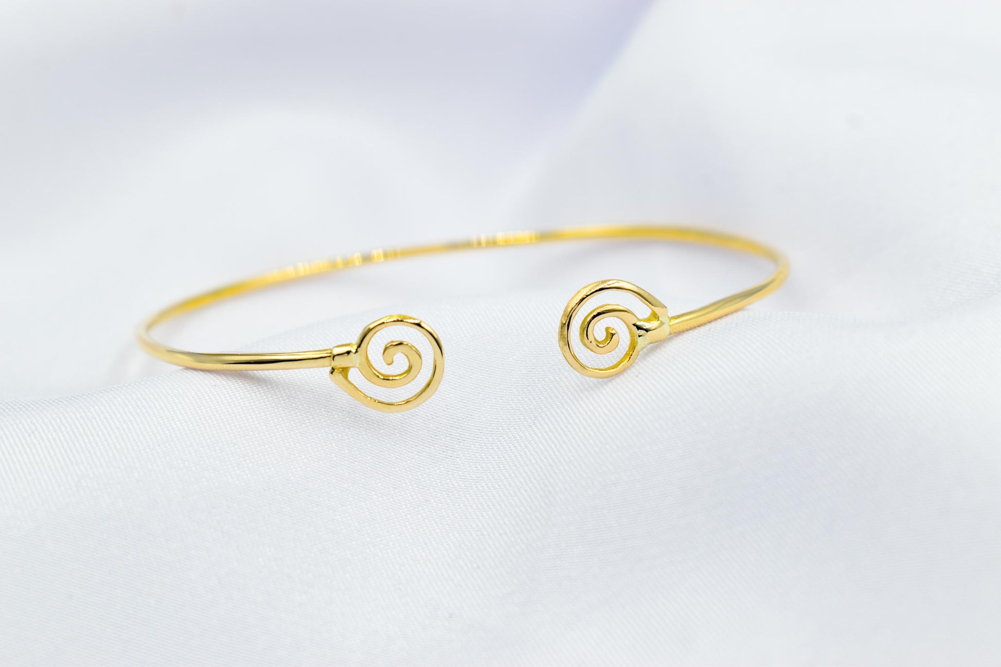 Discover the captivating beauty of our 14K Gold Spiral Bracelet, a stunning piece that embodies both elegance and contemporary design. This exquisite Spiral Bangle features two intricately designed spiral motifs facing each other, symbolizing harmony and balance. The unique design is inspired by the Greek Round Swirl, a motif that celebrates the essence of life and continuity, making this bracelet not just an accessory but a meaningful piece of art.
