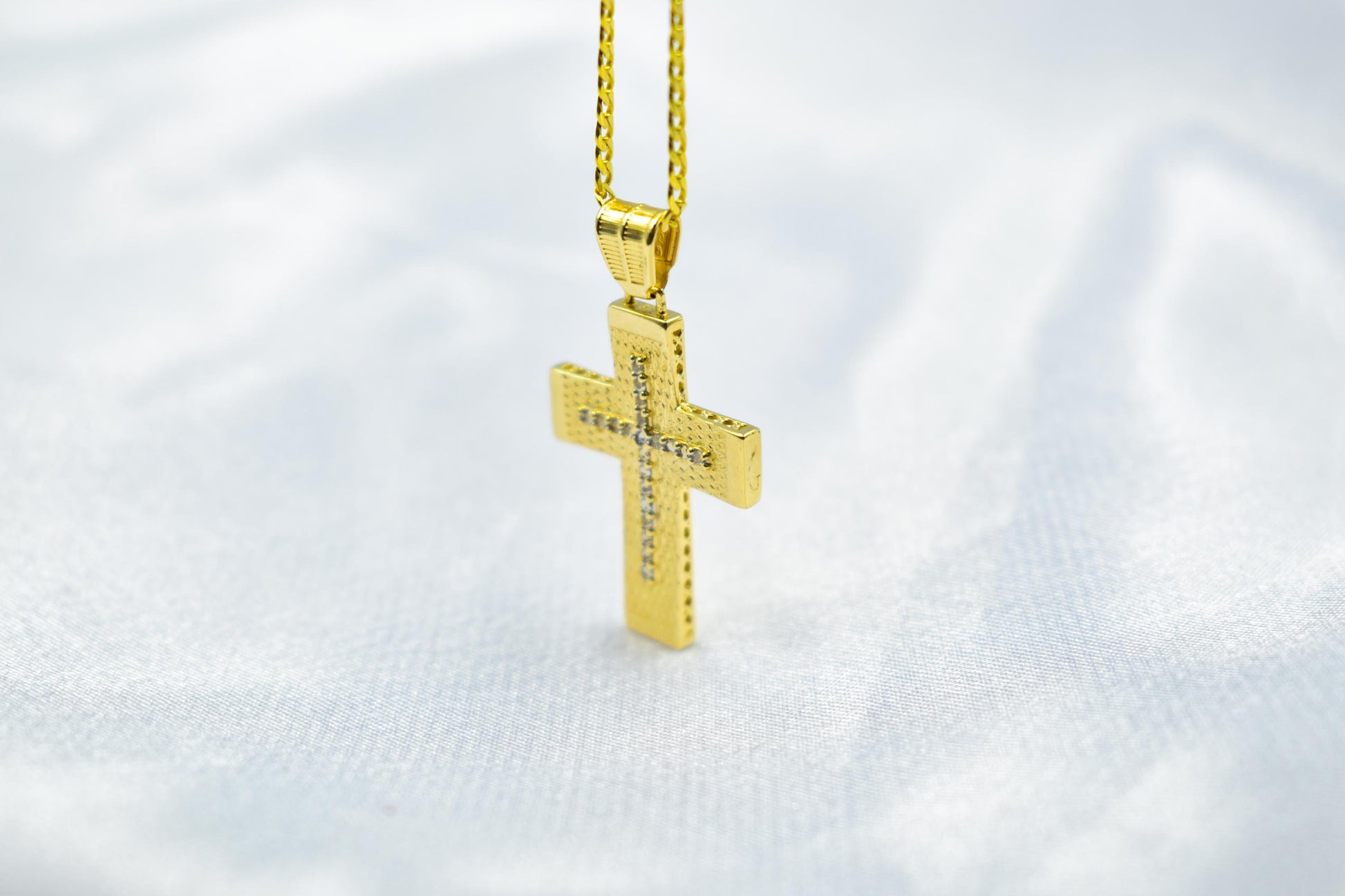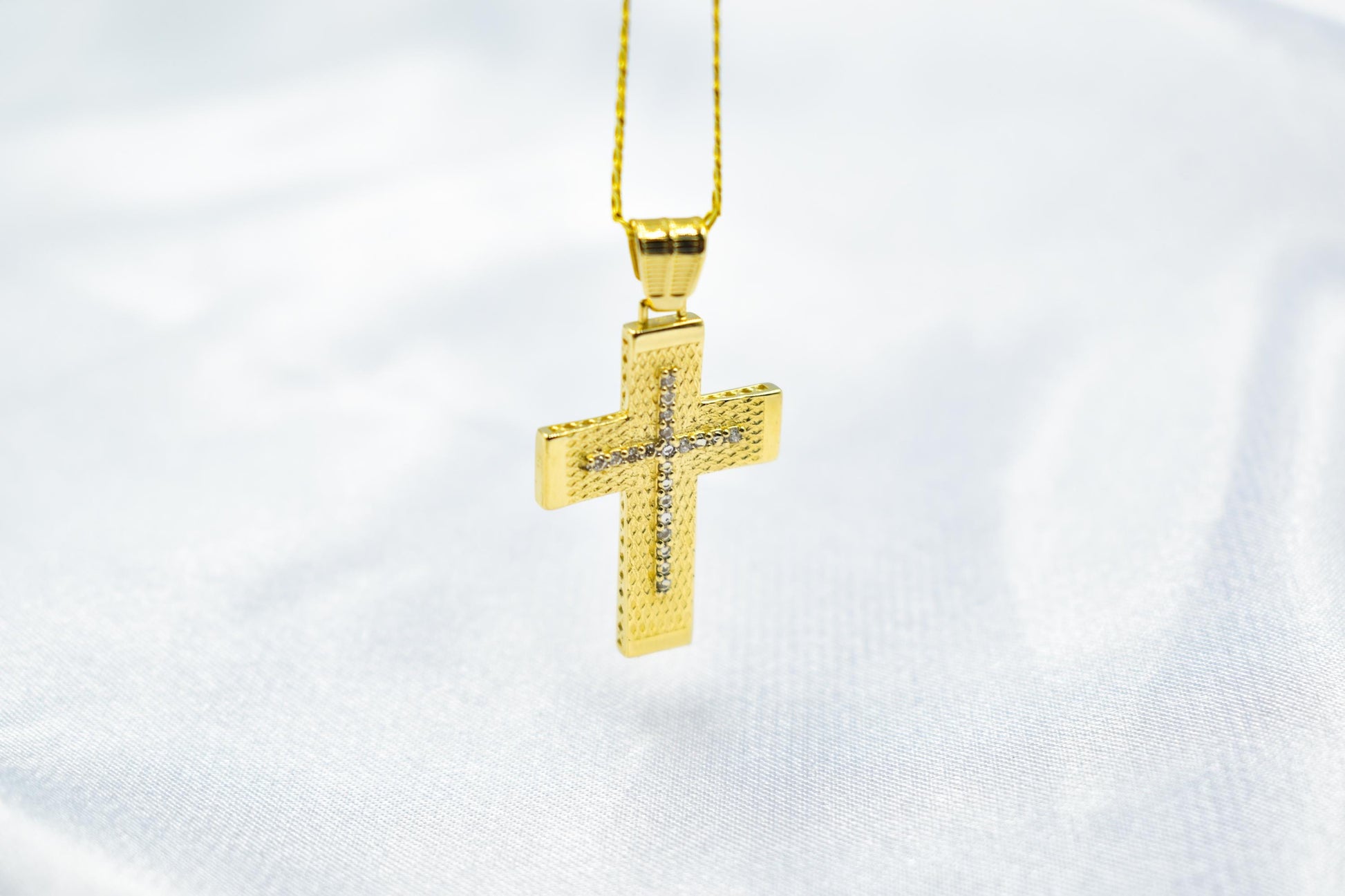 14K Gold Textured Cross Pendant with White Zircon Stones | Reversible Design | Elegant Christian Jewellery for Men & Women