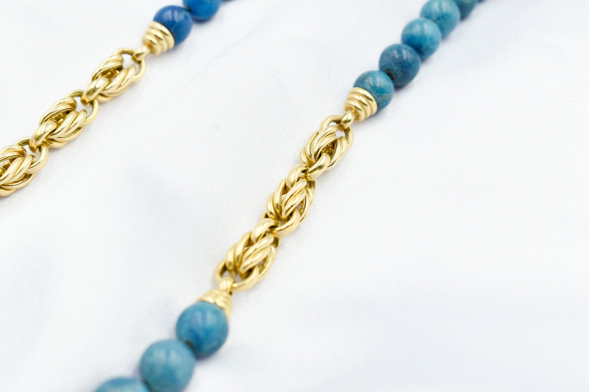 Χρυσό Κολιέ με Τυρκουάζ Πέτρες 14Κ