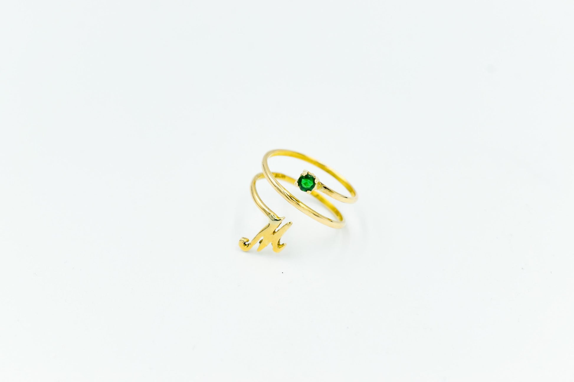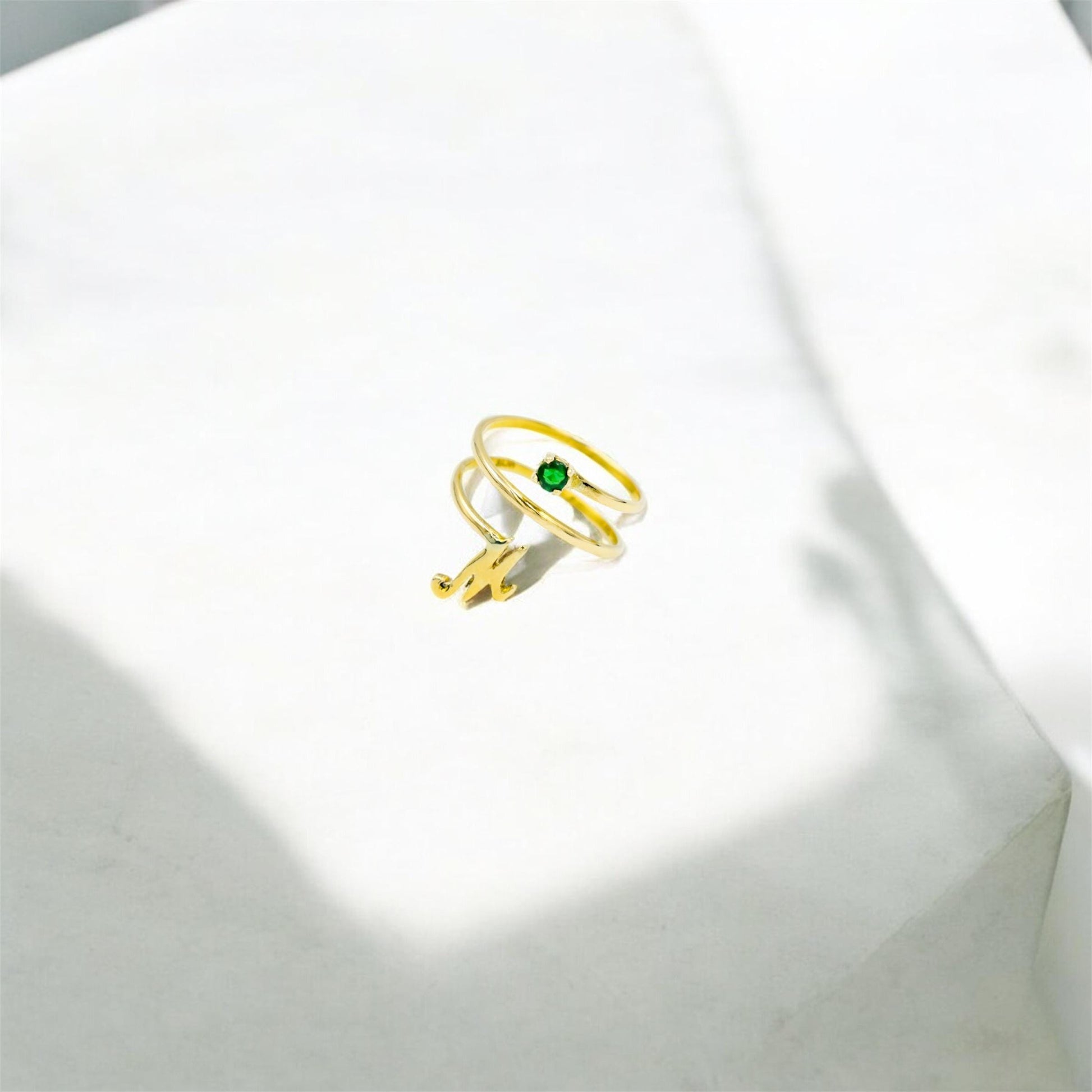 Personalized Green Gemstone Ring,Custom Monogram Jewelry,Handmade Gold Ring,Monogram Design,Unique Birthstone Gift for Her
