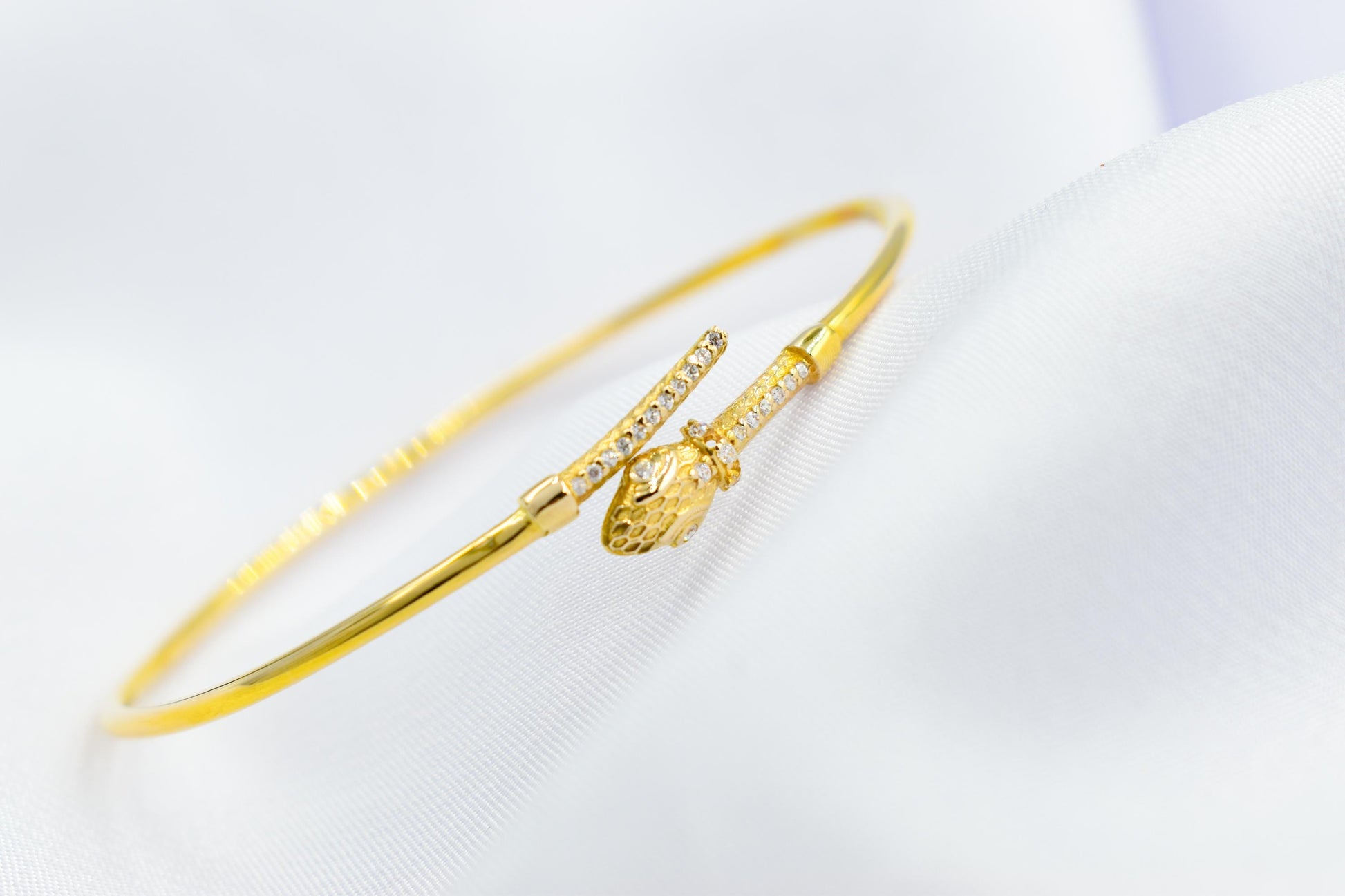 Introducing our Alluring Gold Snake Bangle with White Zircons: