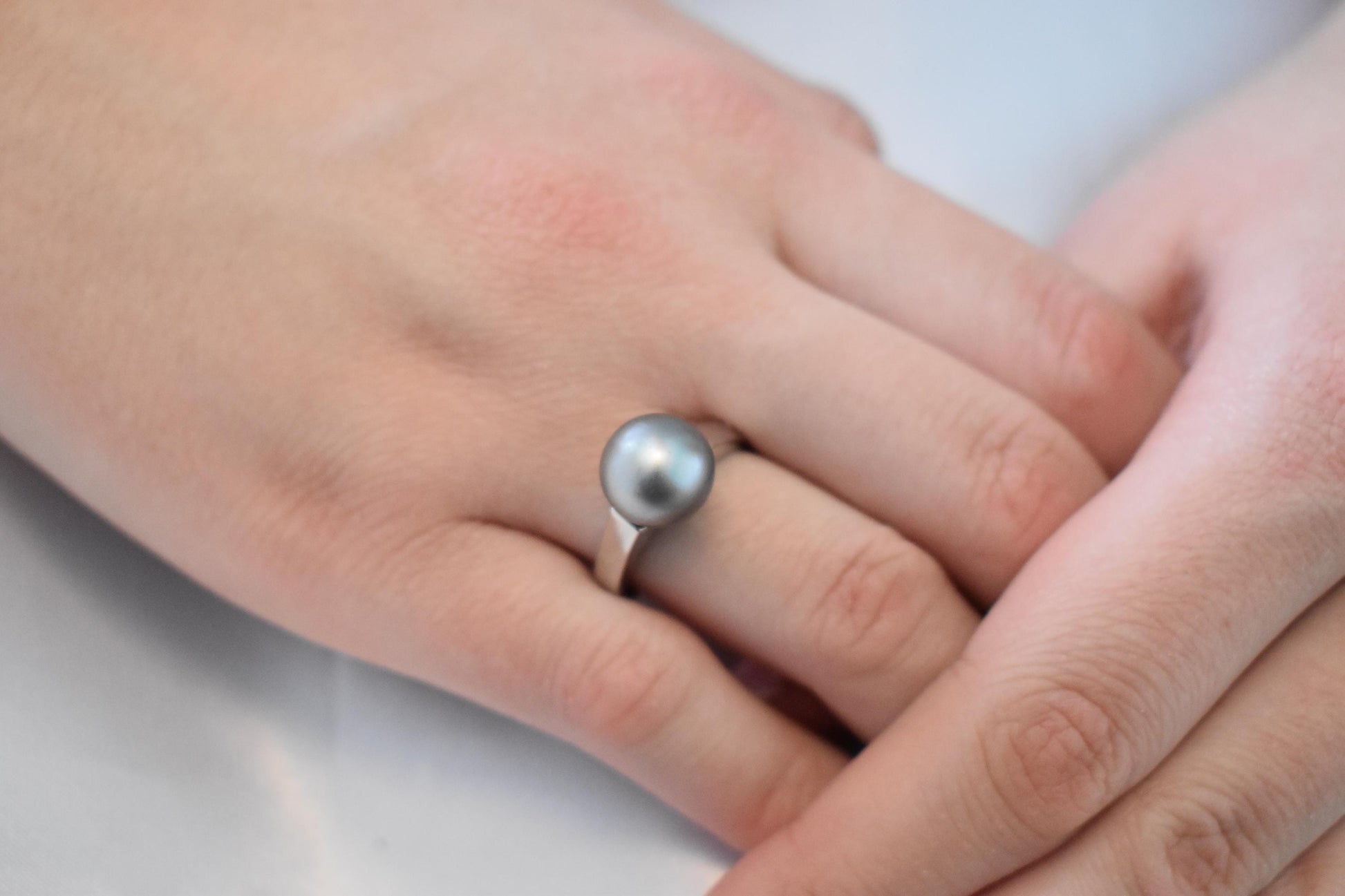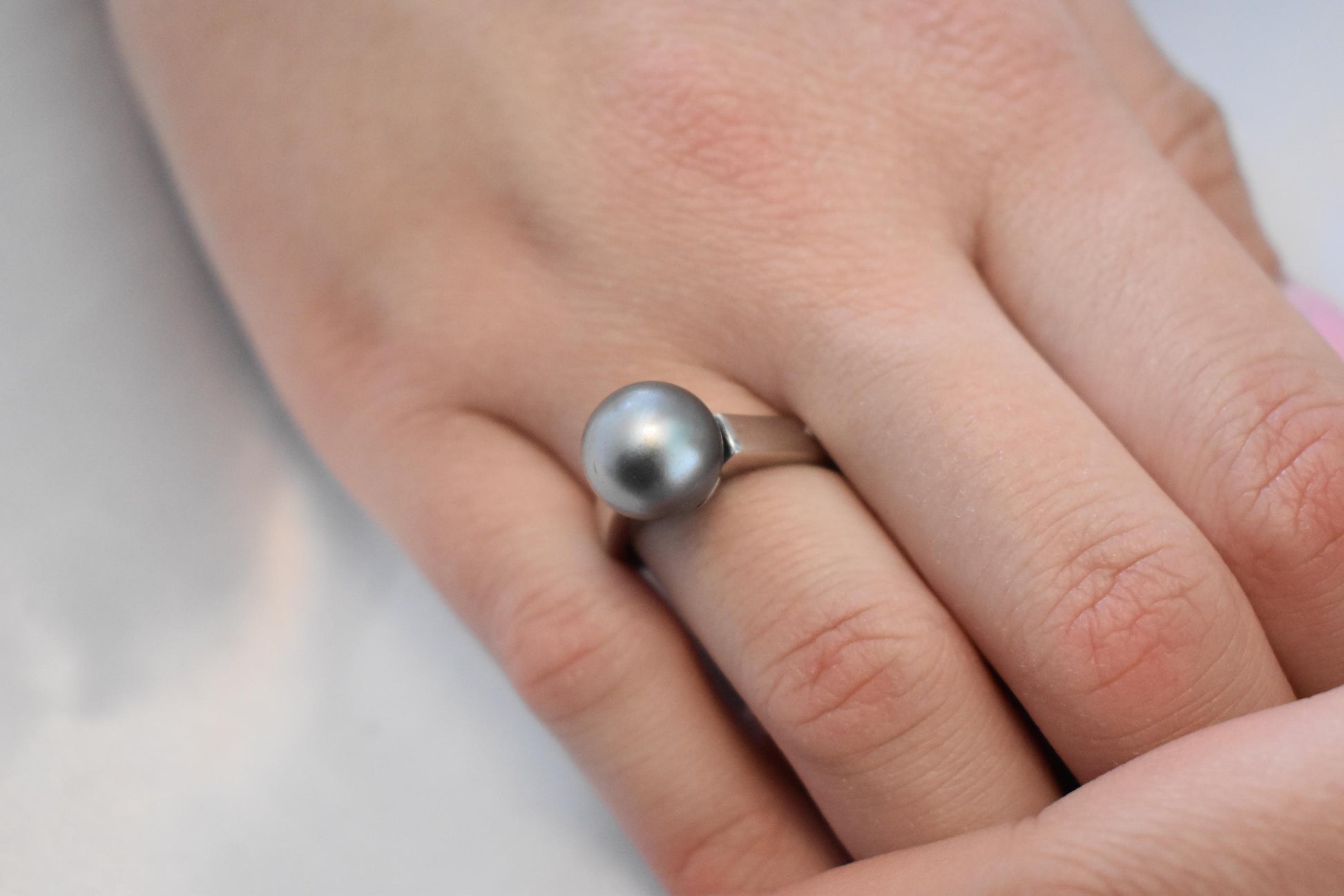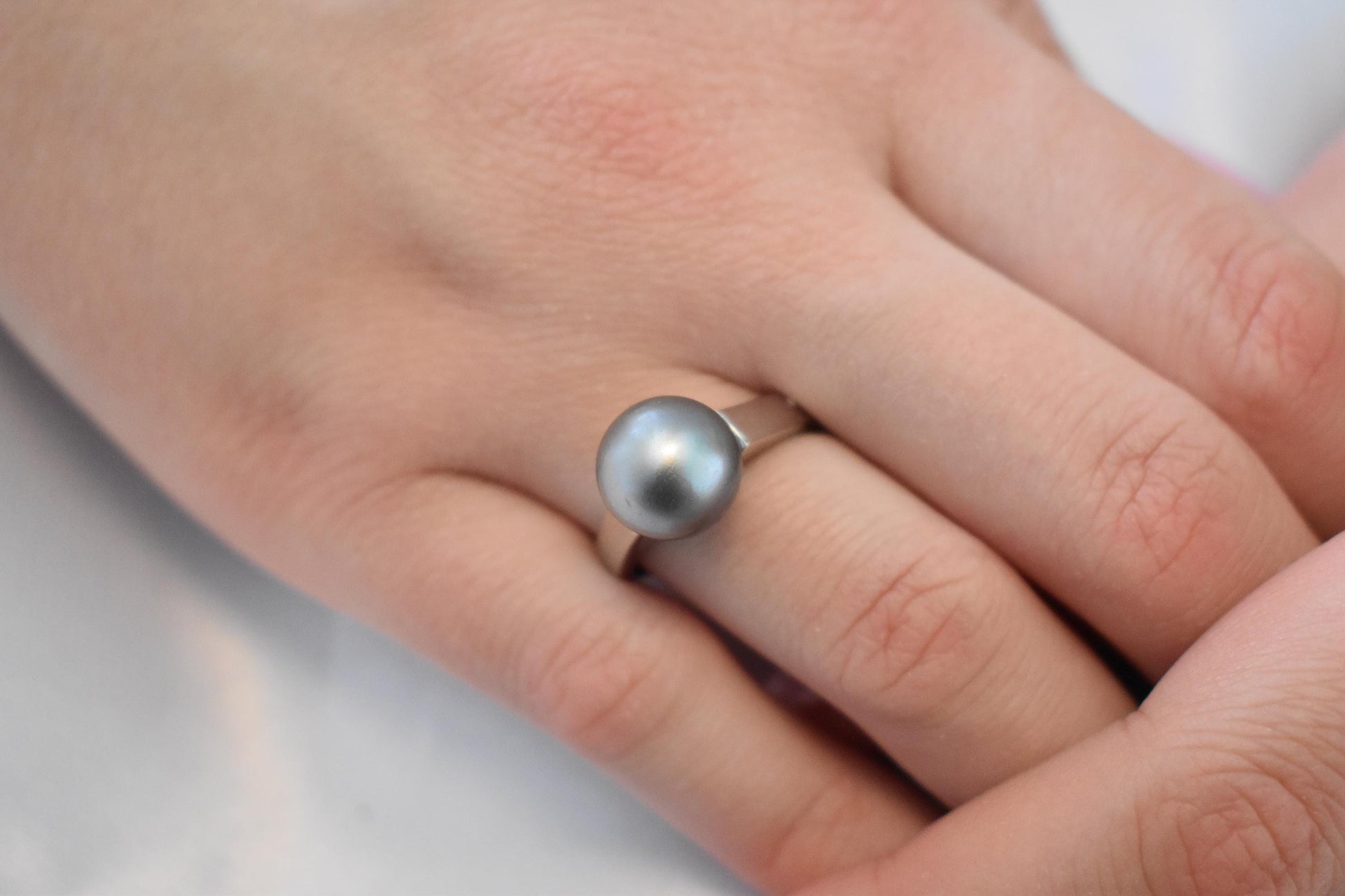 Χειροποίητο Λευκόχρυσο Δαχτυλίδι με Φυσικό Γκρι Μαργαριτάρι Κ14
