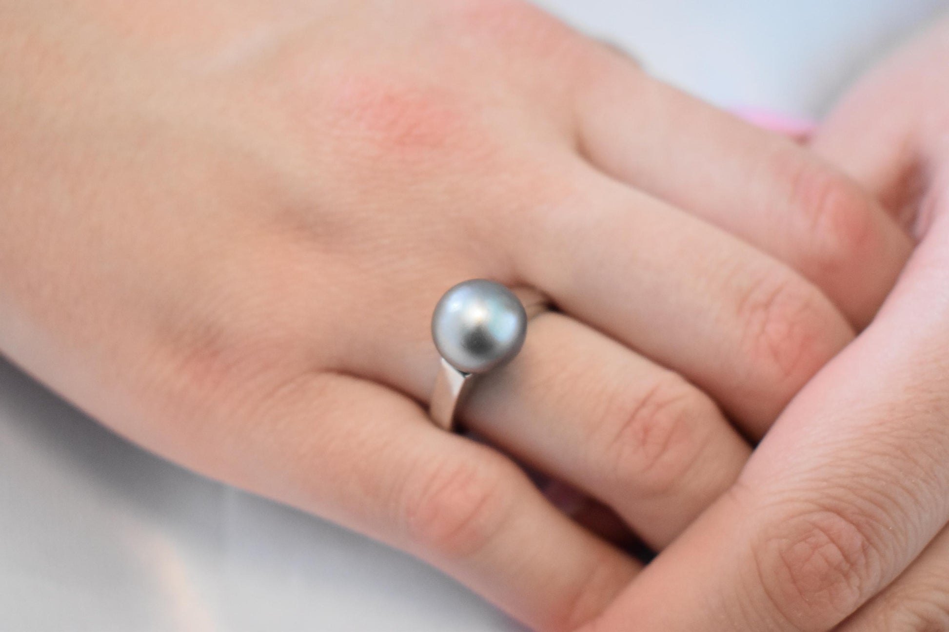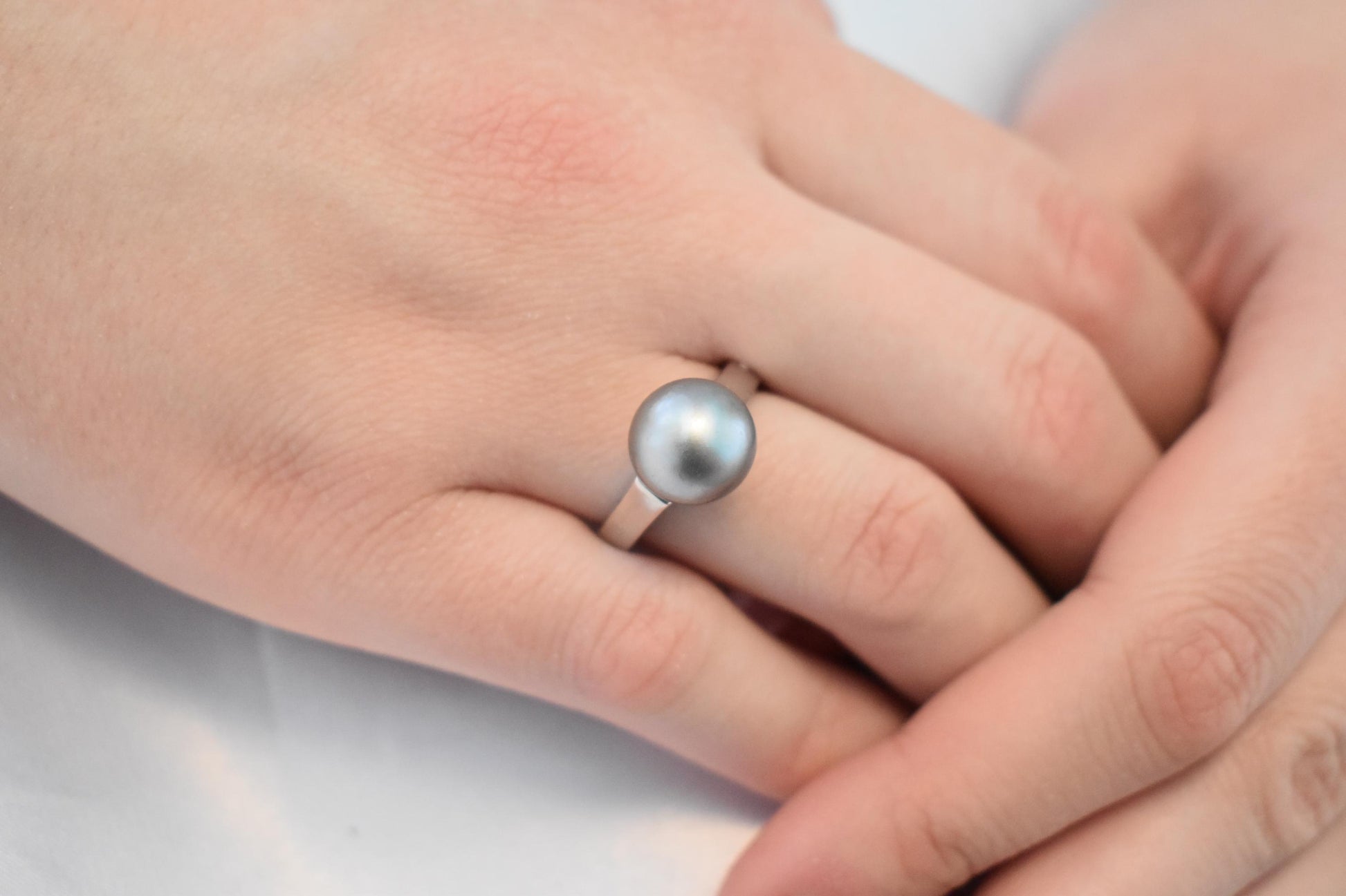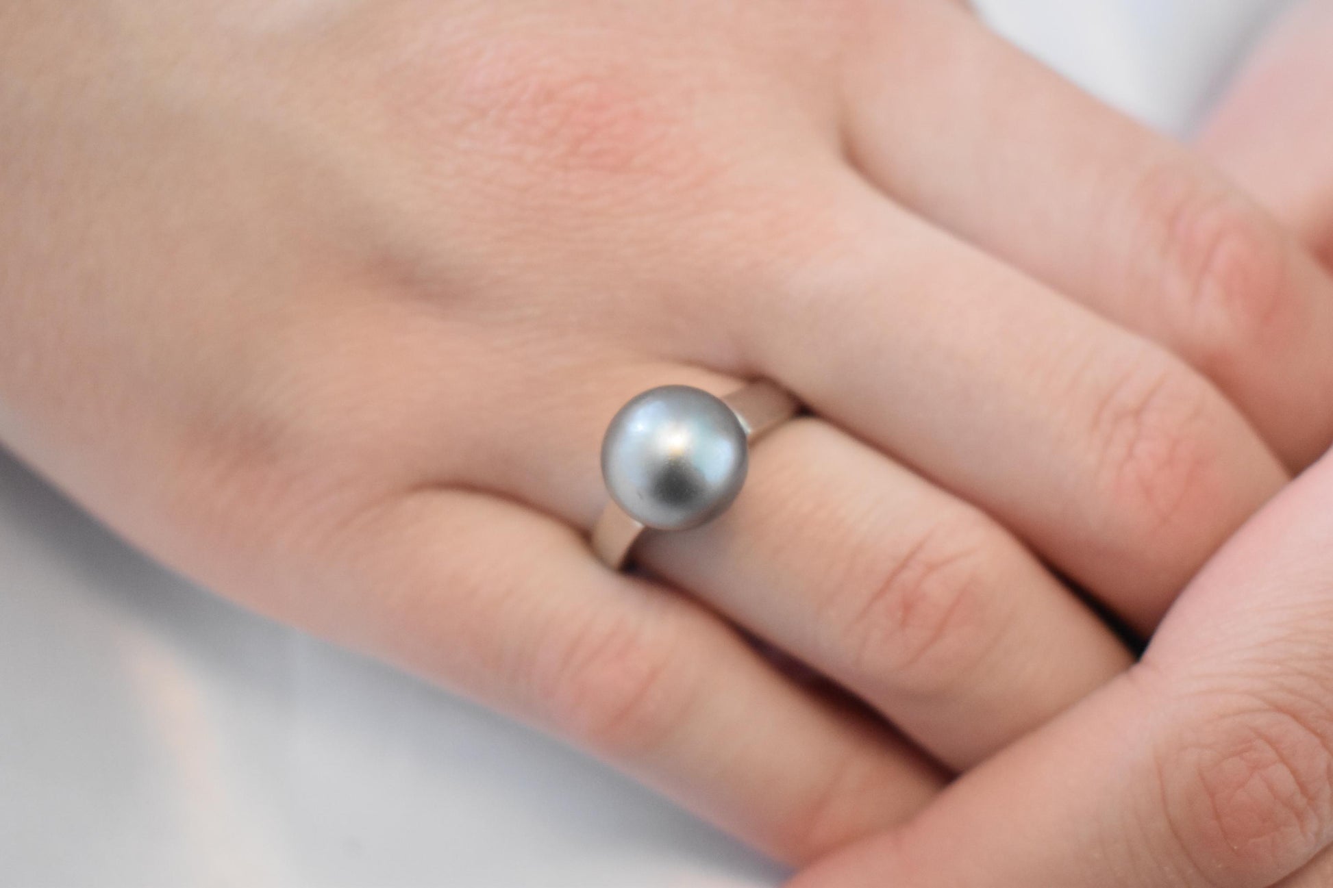 Χειροποίητο Λευκόχρυσο Δαχτυλίδι με Φυσικό Γκρι Μαργαριτάρι Κ14
