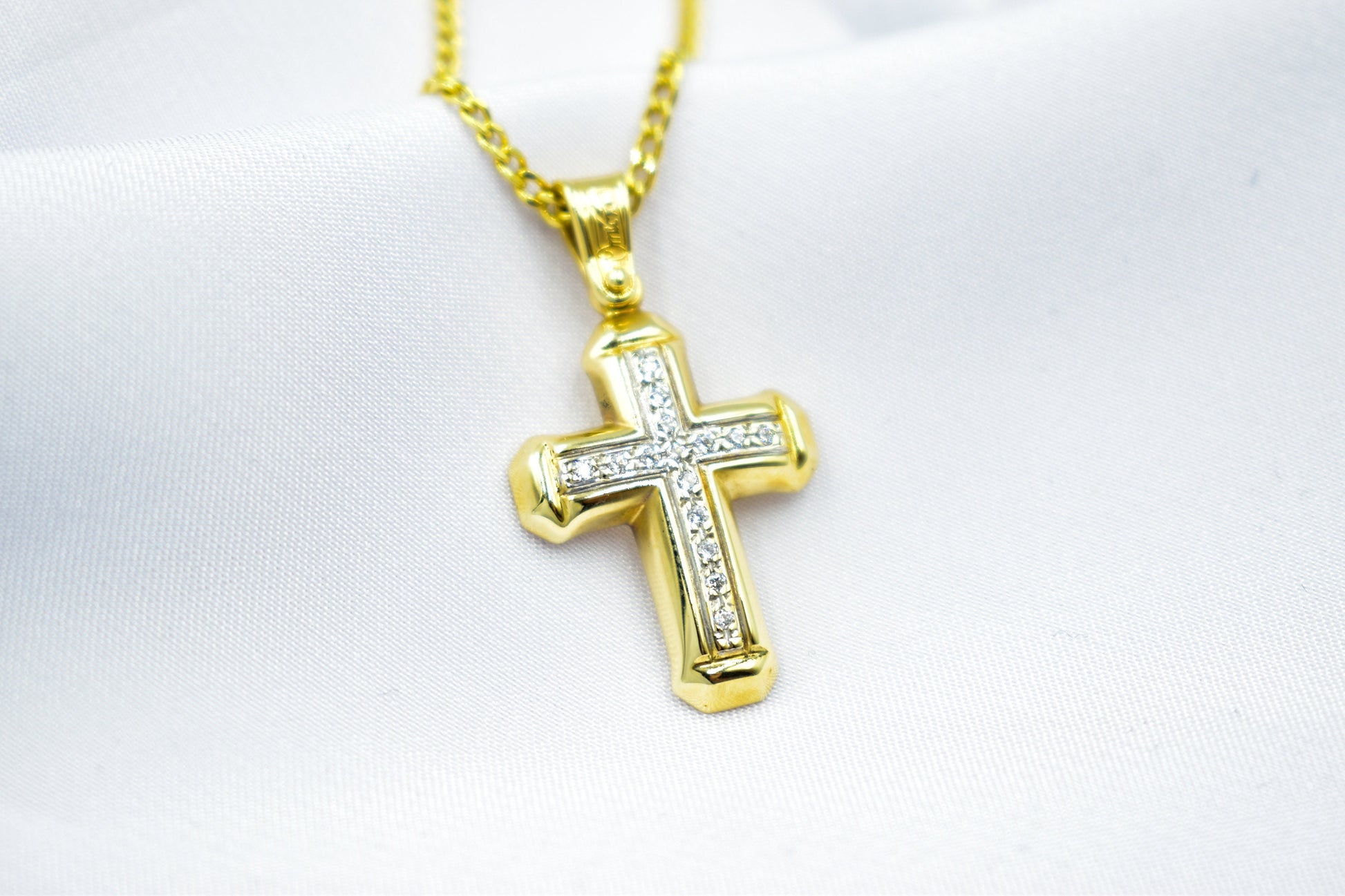 γυναικα 14K Solid Gold Cross,Necklace Sparkling Zircon Stones,Elegant Christian Pendant, Unisex Religious Gold Cross,Gold Cross Charm,Necklace Cross