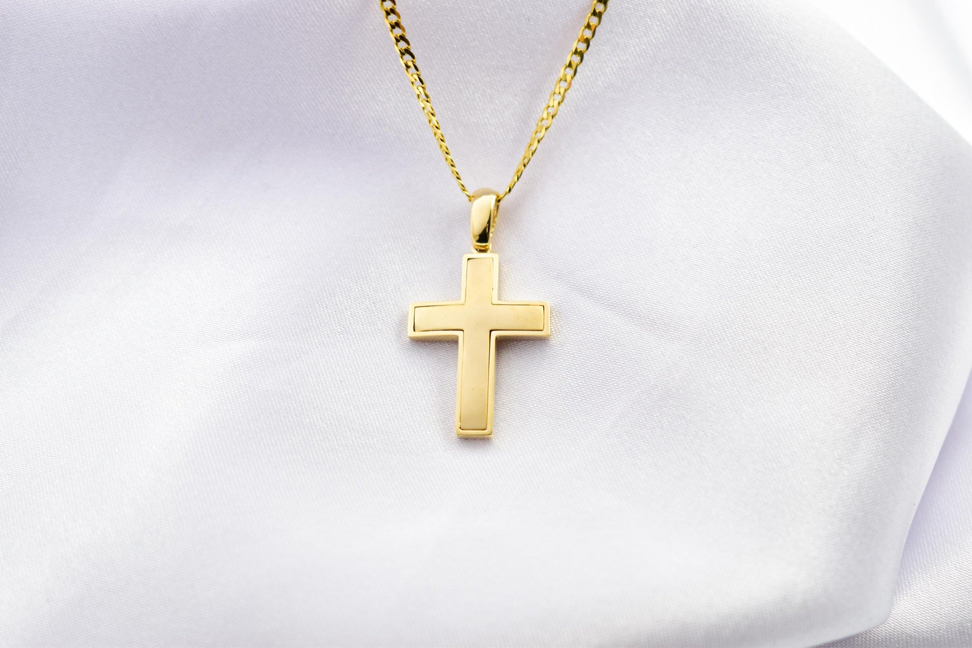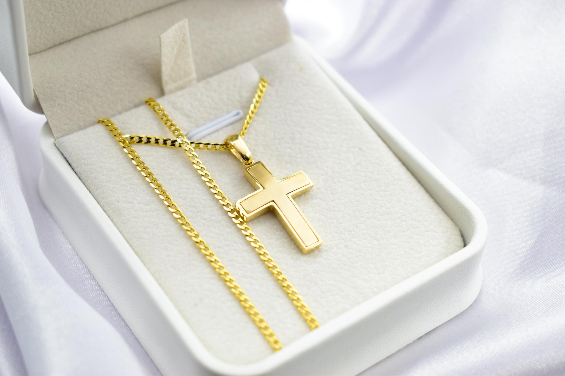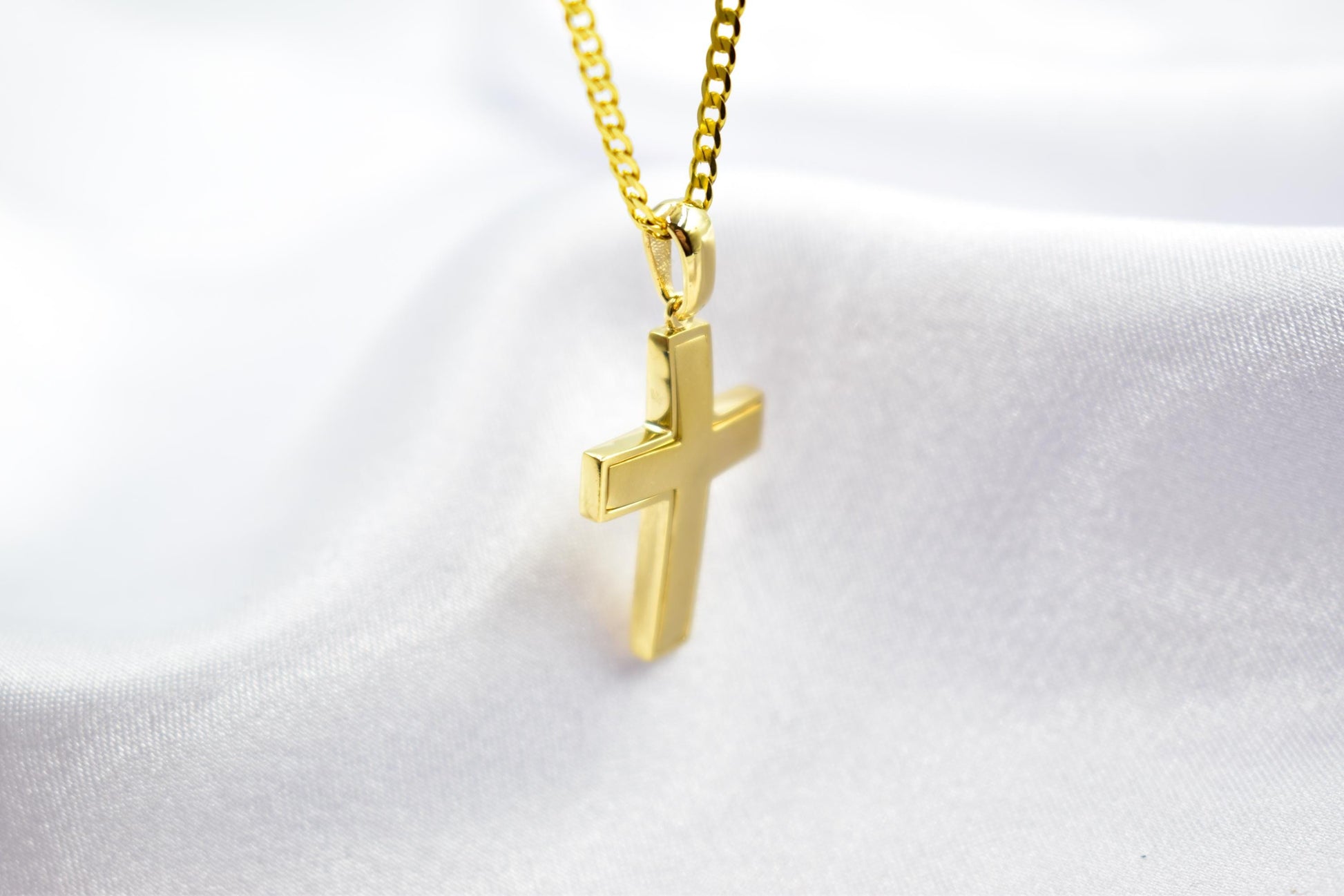 14K Solid Gold Cross Necklace for Men or Women – Dainty Gold Cross Pendant with Optional Chain – Christian Jewelry – Religious Gift – Baptism Gift This elegant 14K solid gold cross pendant is a timeless piece of Christian jewelry designed for both men and women. Expertly crafted in genuine 14 karat gold, it features a minimalist yet bold design with smooth, polished edges, making it ideal for everyday wear or as a meaningful gift. ✨ Product Details: • Material: 14K Yellow Gold (Stamped) • Pendant Size: Classic cross design – elegant and refined • Chain: Optional 14K solid gold chain • Finish: High polish for a bright, luxurious shine • Style: Unisex – suitable for men, women, and teens • Packaging: Arrives in a premium gift box – ready for gifting 🎁 Perfect for: • Baptism or Christening gift • Confirmation or First Communion • Birthday or Anniversary present • Religious keepsake or personal symbol of faith • Christmas or Easter gift This gold cross necklace is a beautiful expression of faith, love, and protection. Whether worn alone or layered, it adds a touch of grace to any outfit. Offered with or without a chain to suit your preference. Add this meaningful piece to your collection or gift it to someone special – it’s a treasured item that will last a lifetime. This cross pendant artfully combines religious significance with the brilliance of zircon, creating a distinctive piece that is both meaningful and stylish.