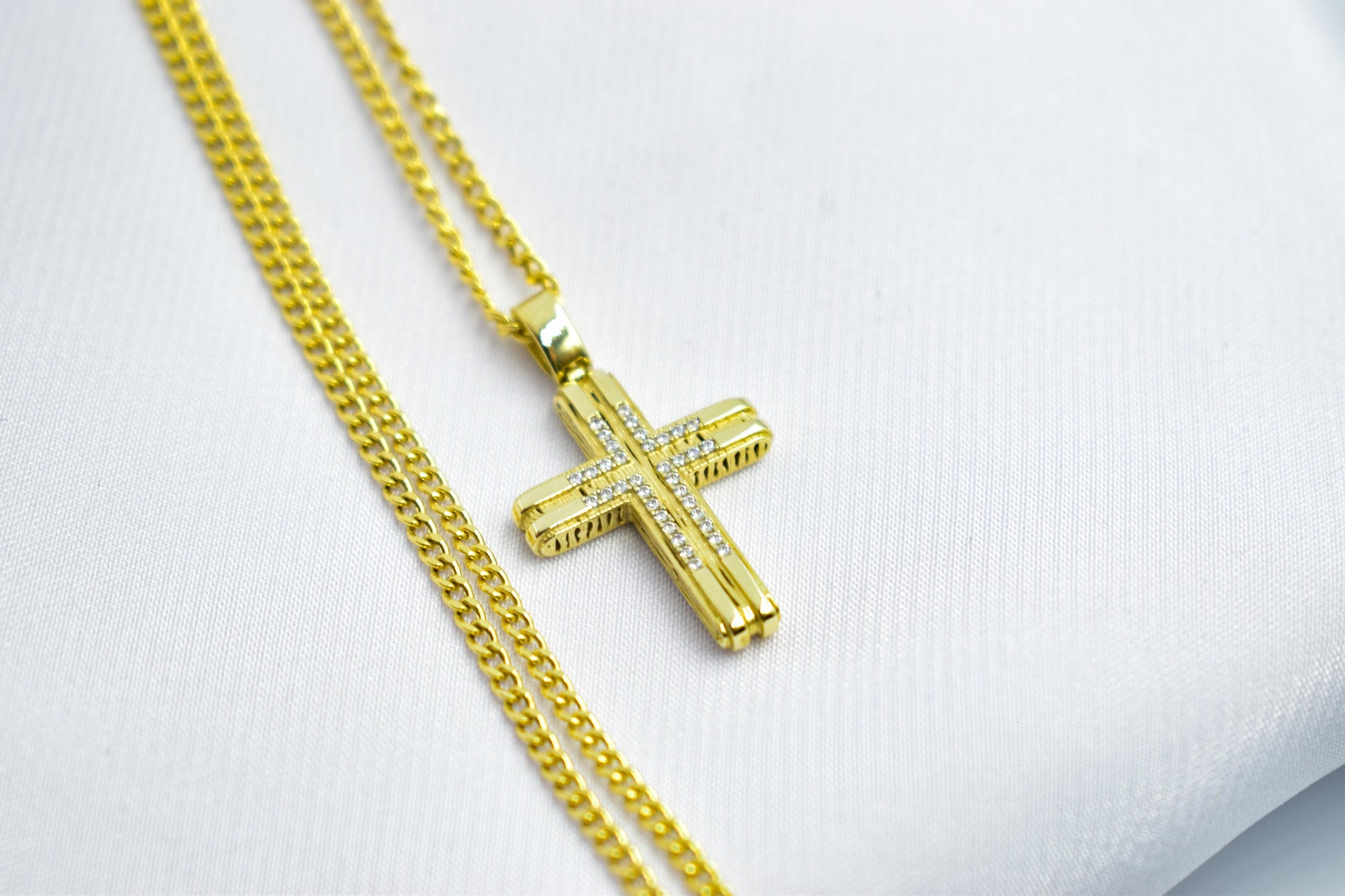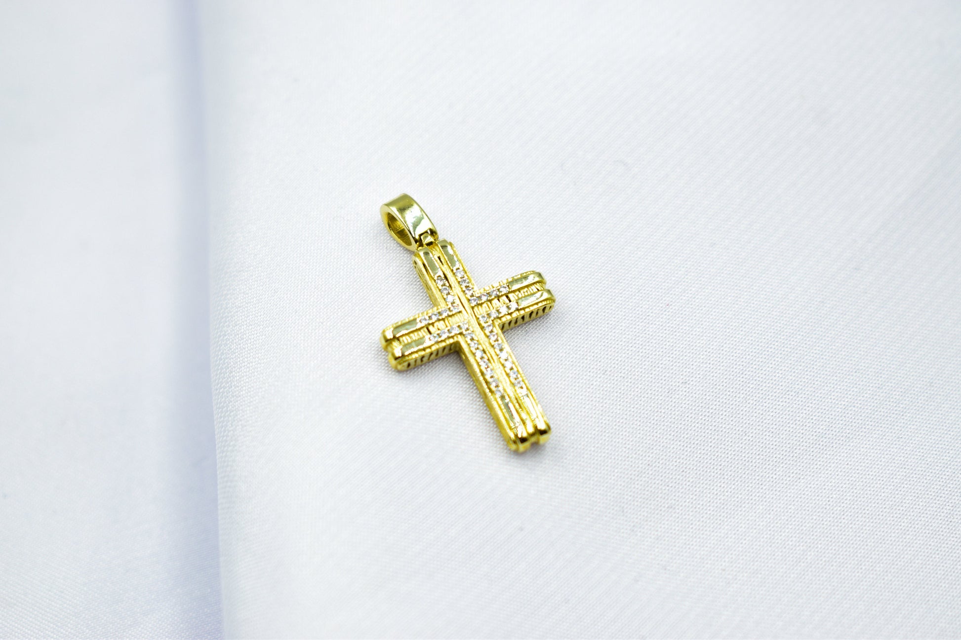 Design: Classic cross set with sparkling zircon stones for added elegance