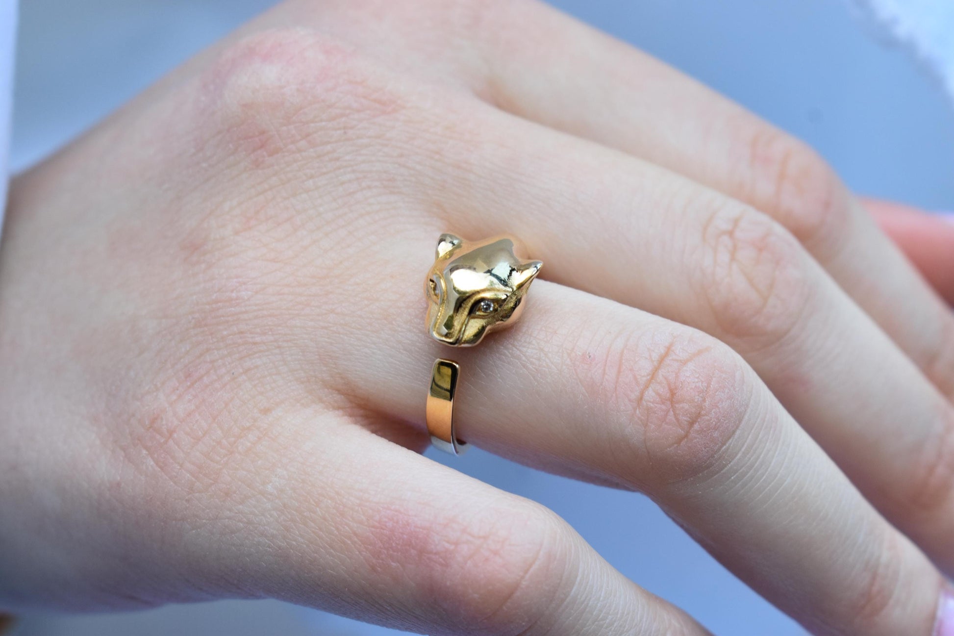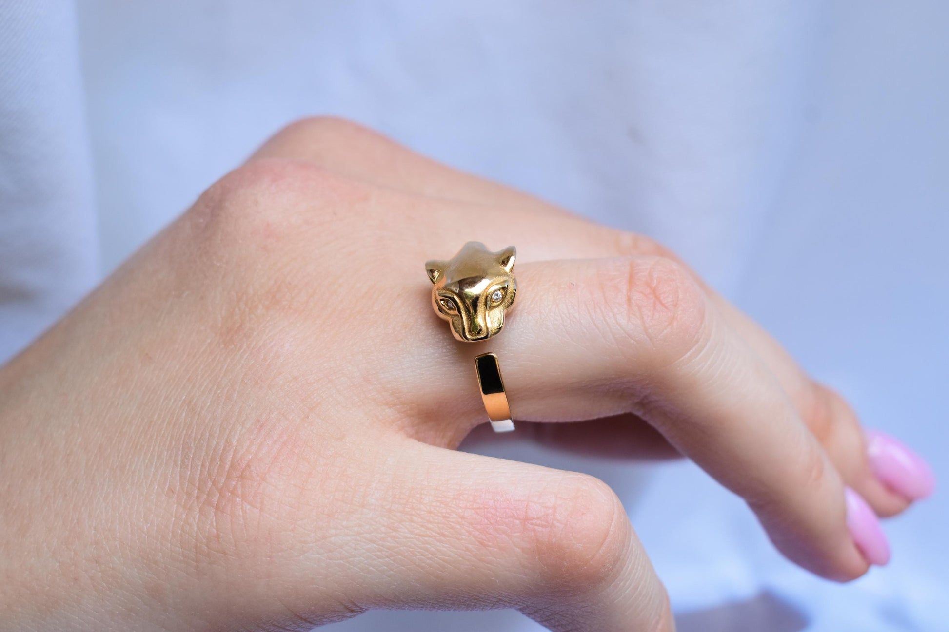Χειροποίητο δαχτυλίδι Κ14 σε σχέδιο πάνθηρα, ένα εντυπωσιακό και δυναμικό κόσμημα με ιδιαίτερο χαρακτήρα.