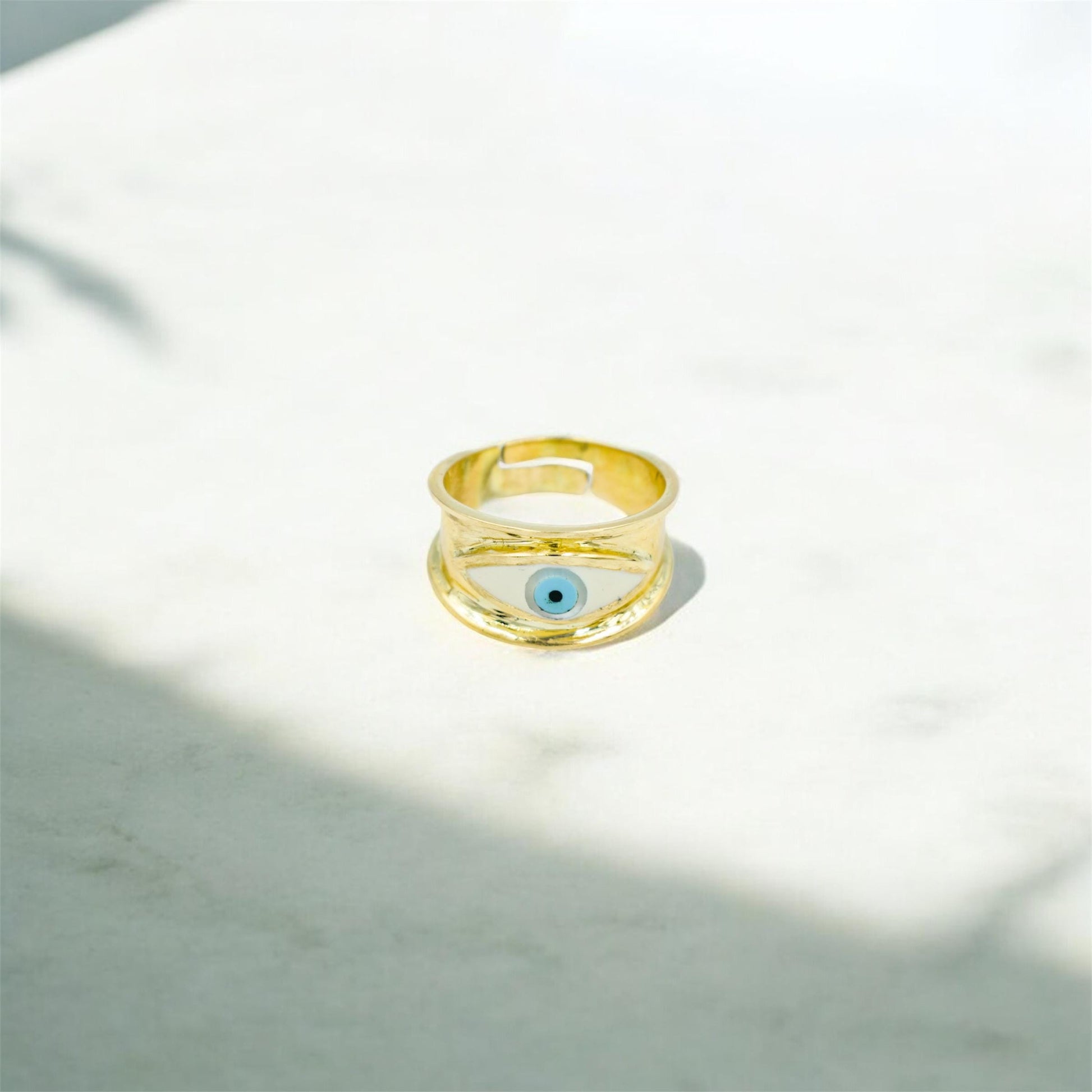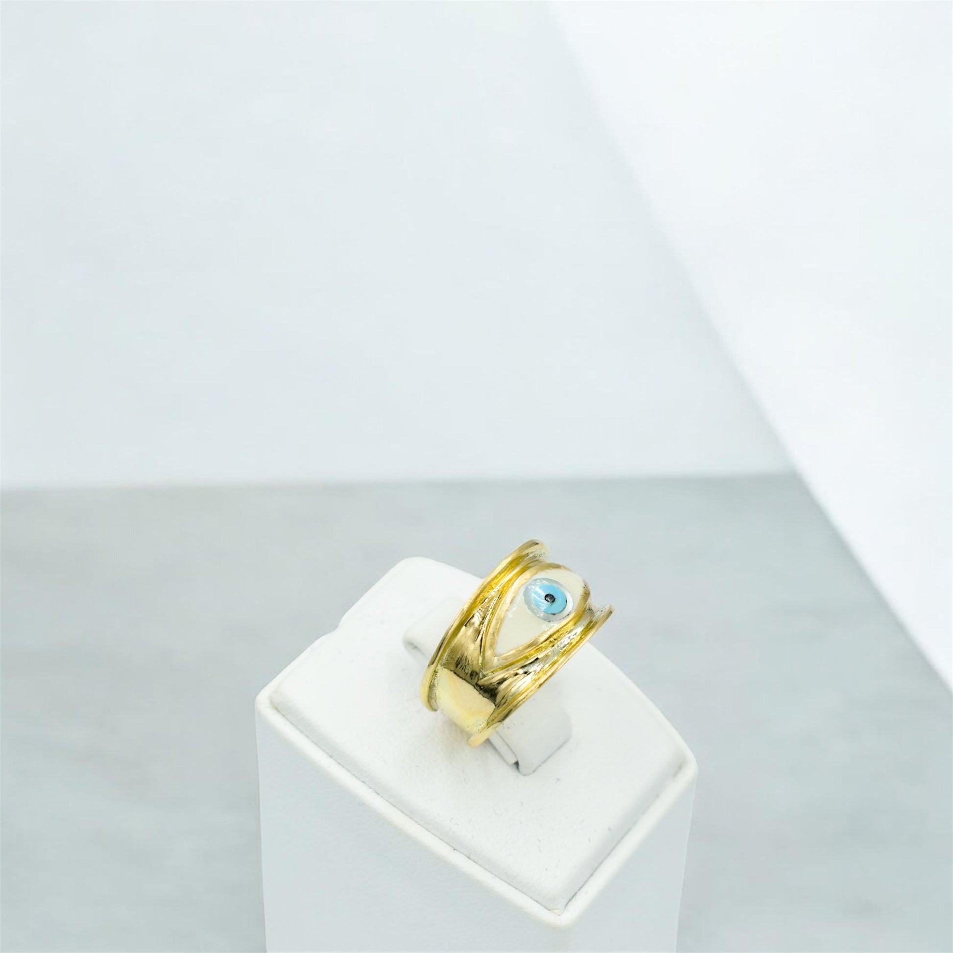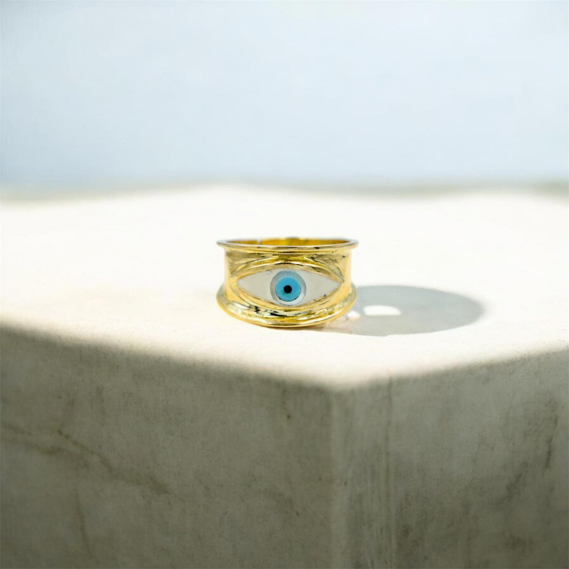 Εντυπωσιακό δαχτυλίδι Κ14 με σμάλτο ματάκι, ιδανικό τόσο για καθημερινή χρήση όσο και για layering.