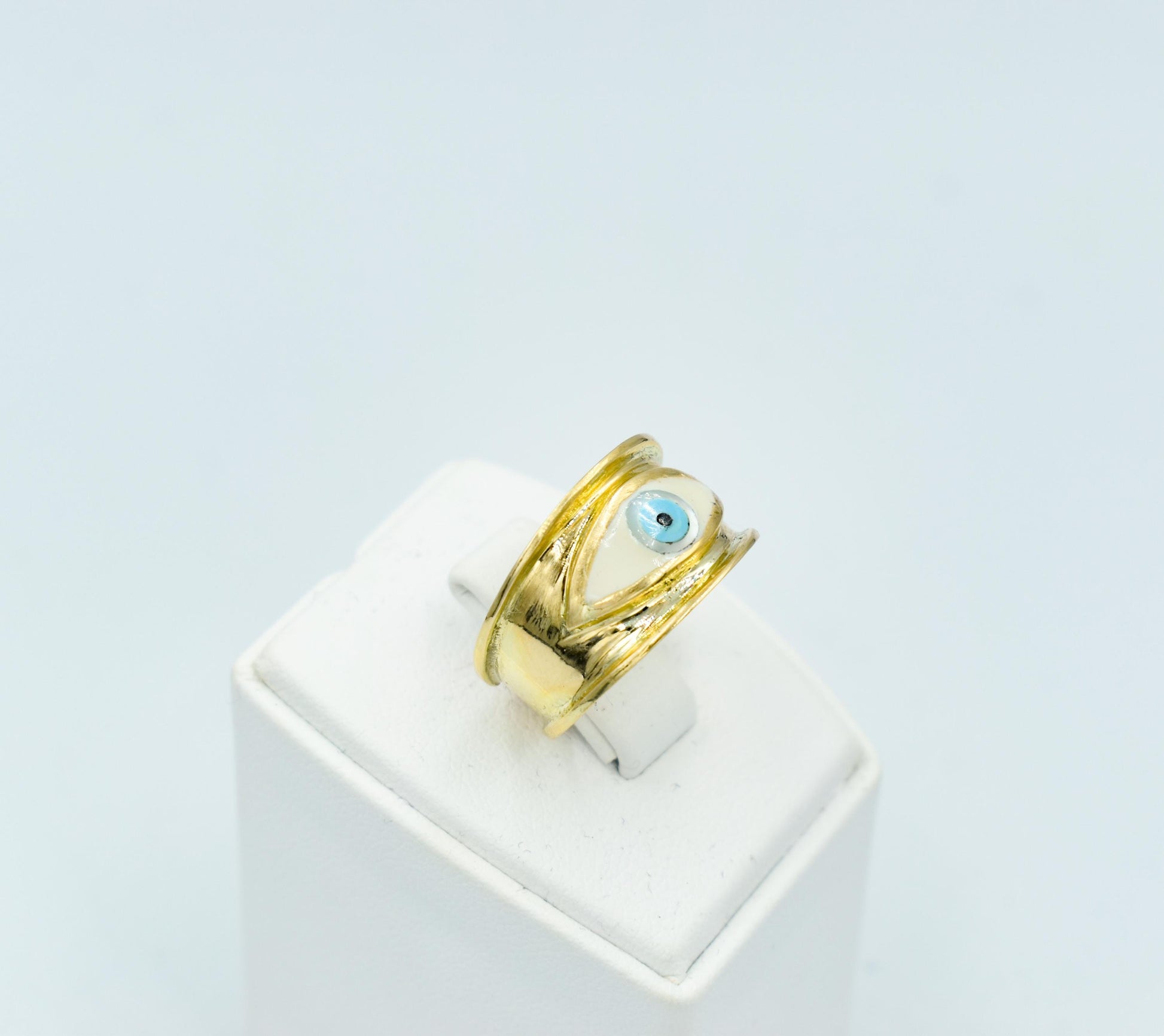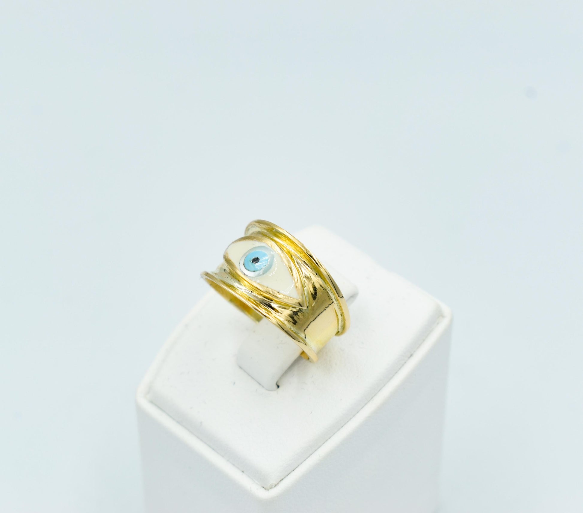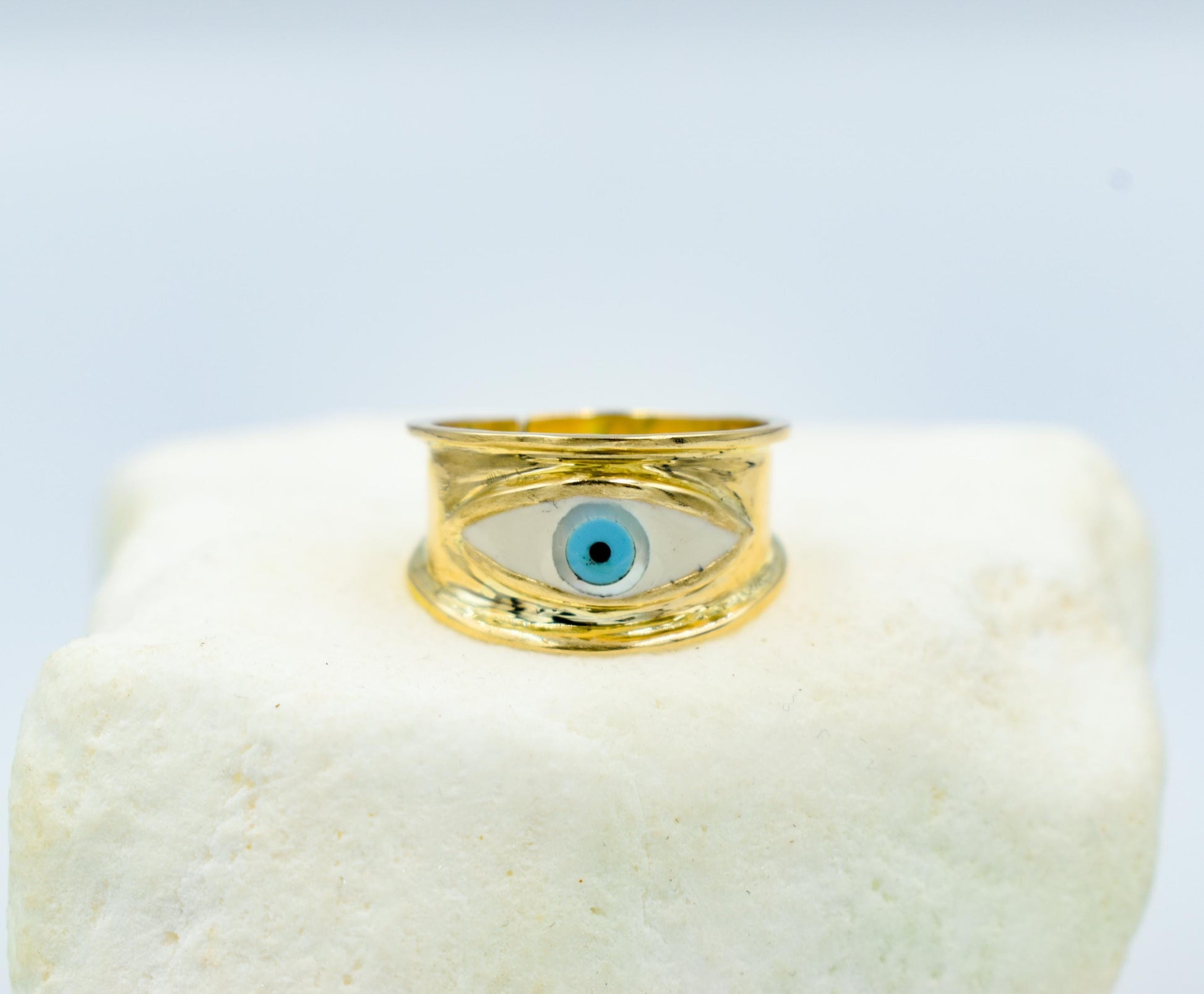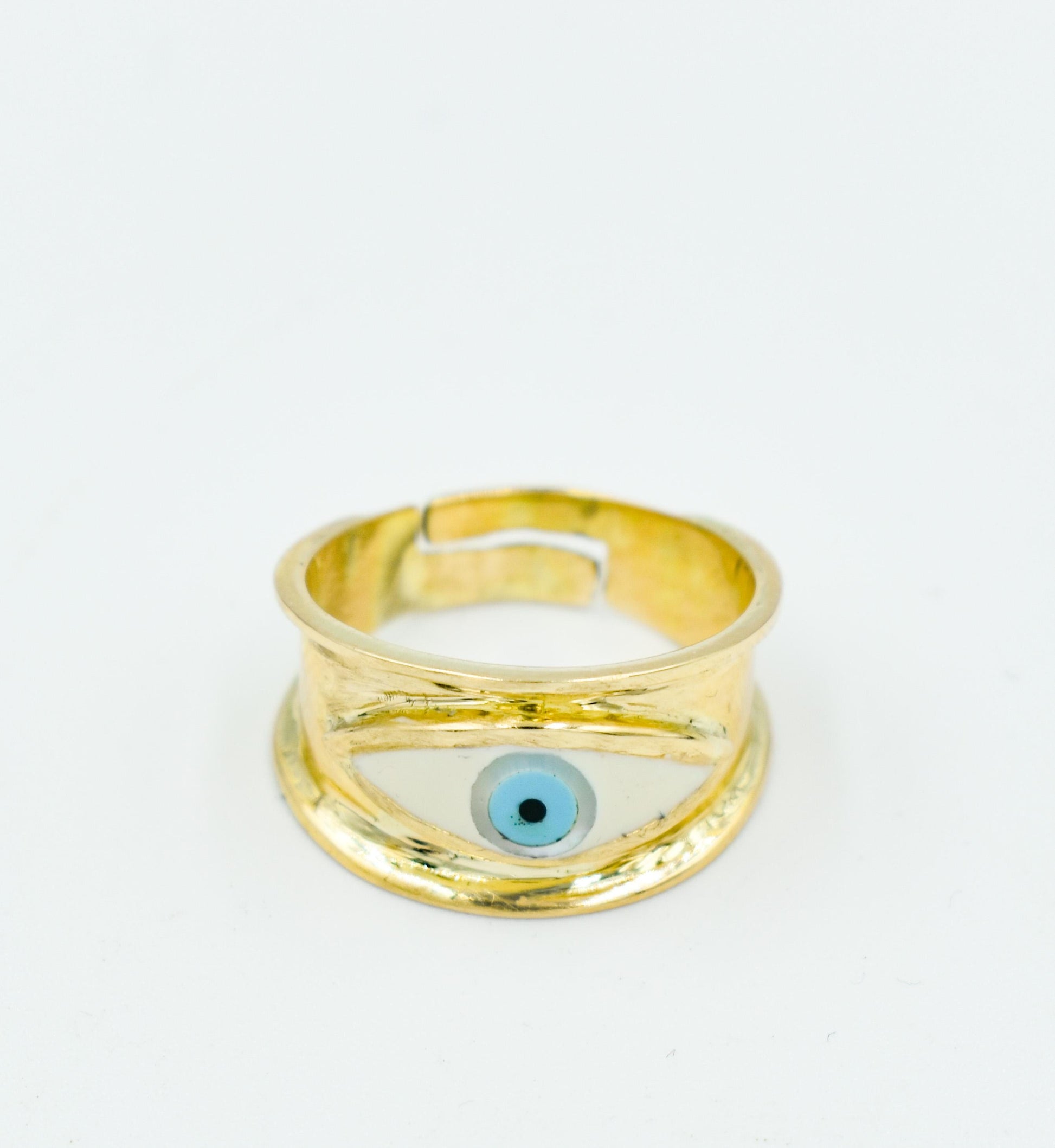 Χειροποίητο Δαχτυλίδι με Λευκό Σμάλτο Μάτι Κ14 - Αυξομειούμενο