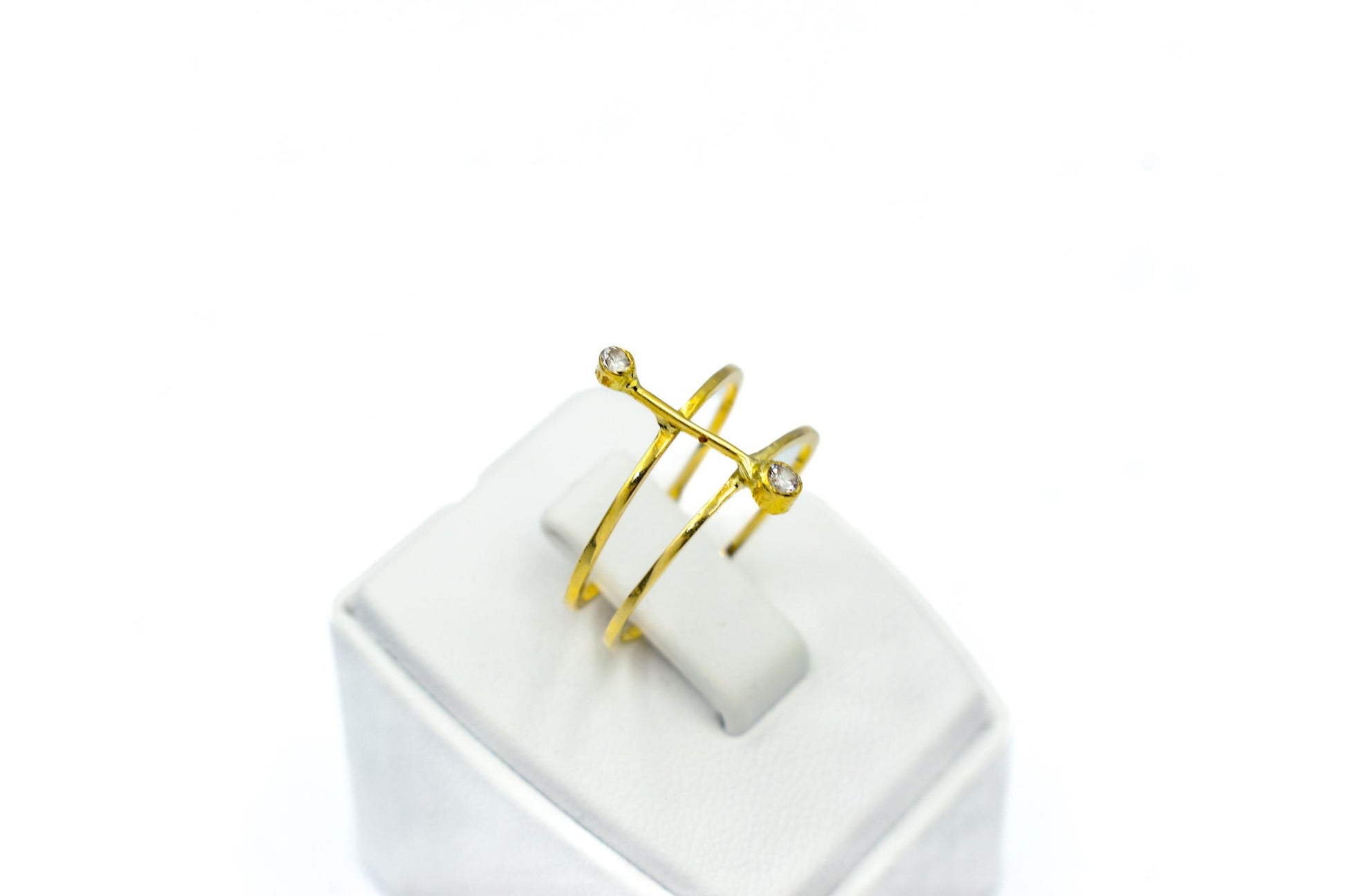 Introducing our exquisite 14k gold ring, a perfect blend of elegance and sophistication. This beautifully crafted piece features two sparkling zircon stones that add a stunning touch of brilliance to any outfit. Designed with a delicate double band, this ring stands out perfectly on its own, making it ideal for both casual and formal occasions.
