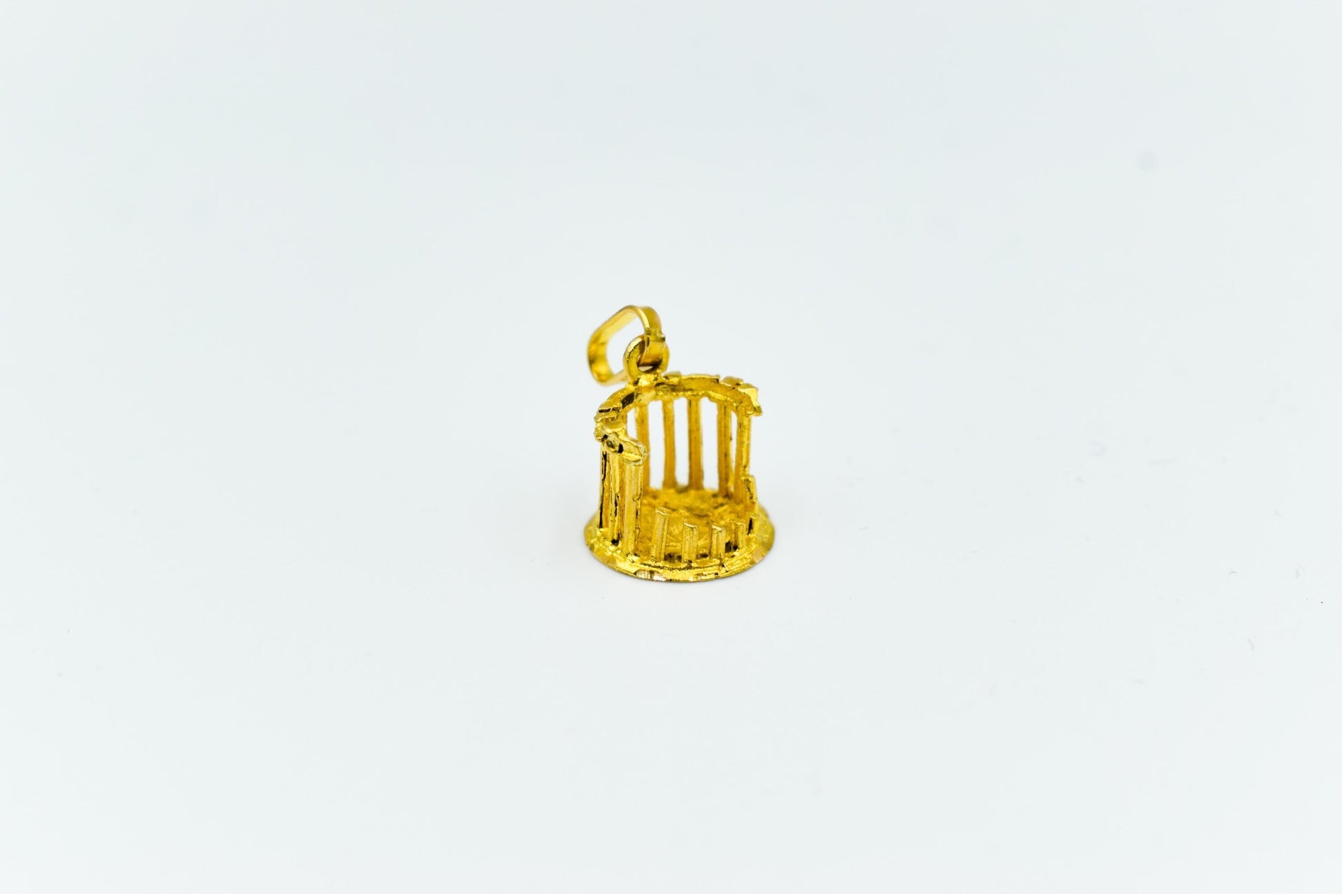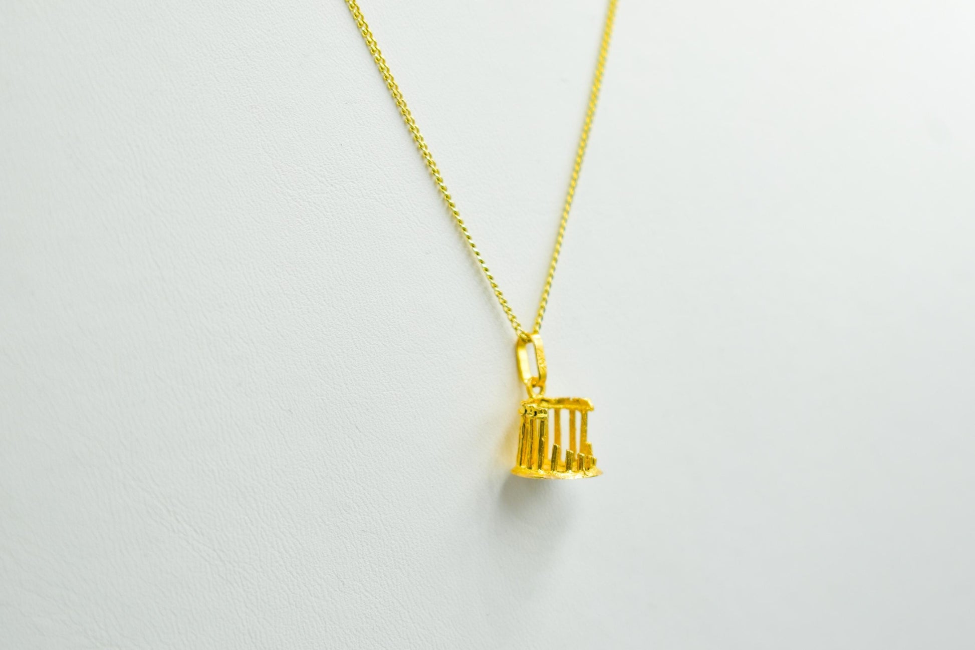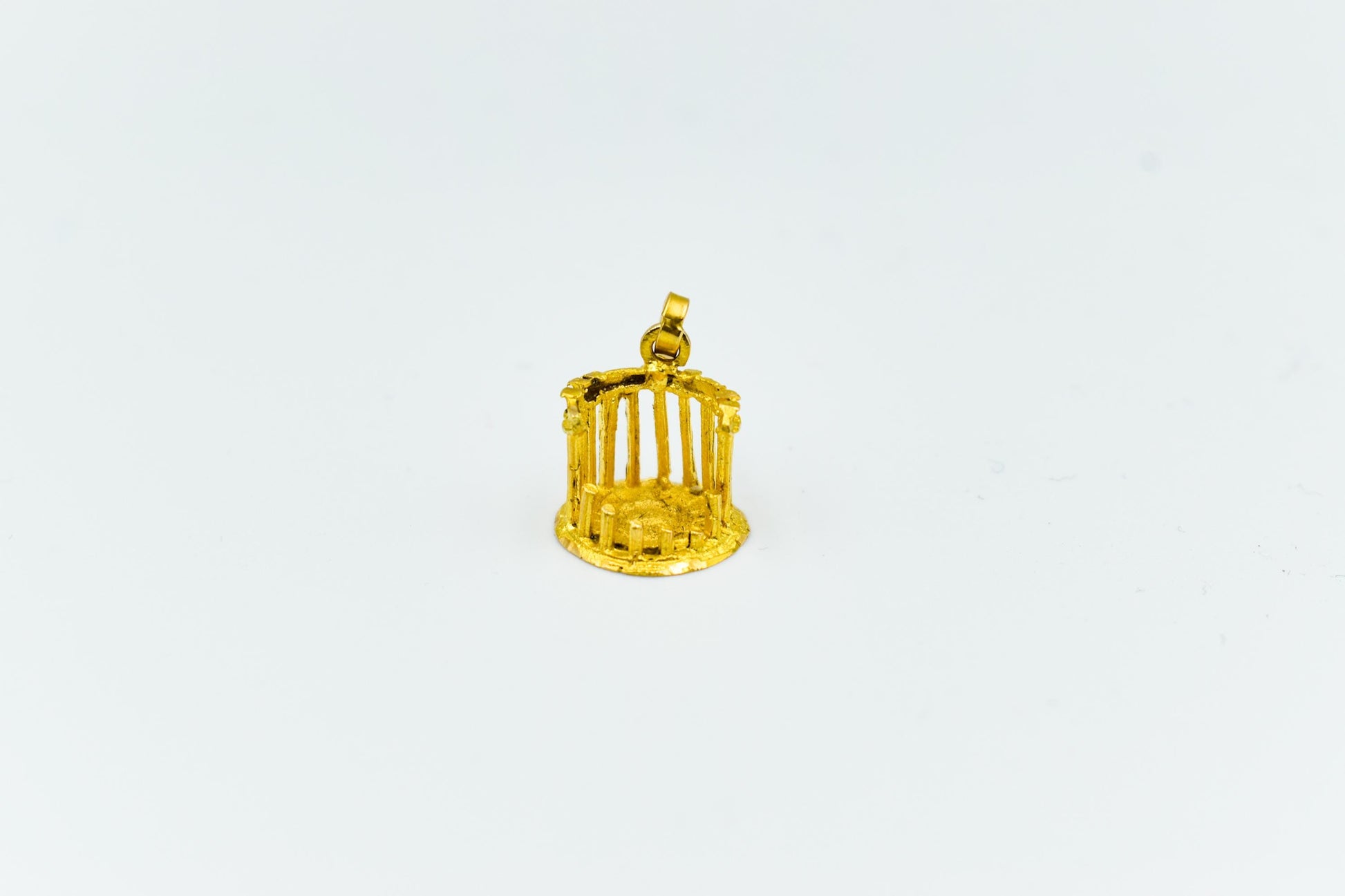 Ένα μοναδικό τρισδιάστατο κρεμαστό από χρυσό 14 καρατίων, που αναπαριστά με λεπτομέρεια τον αρχαιοελληνικό Θόλο — έναν από τους πιο αναγνωρίσιμους κυκλικούς ναούς της αρχαιότητας. Η αρχιτεκτονική ακρίβεια και η χειροποίητη υφή του το καθιστούν πραγματικό μικρογλυπτό και όχι απλώς ένα κόσμημα.