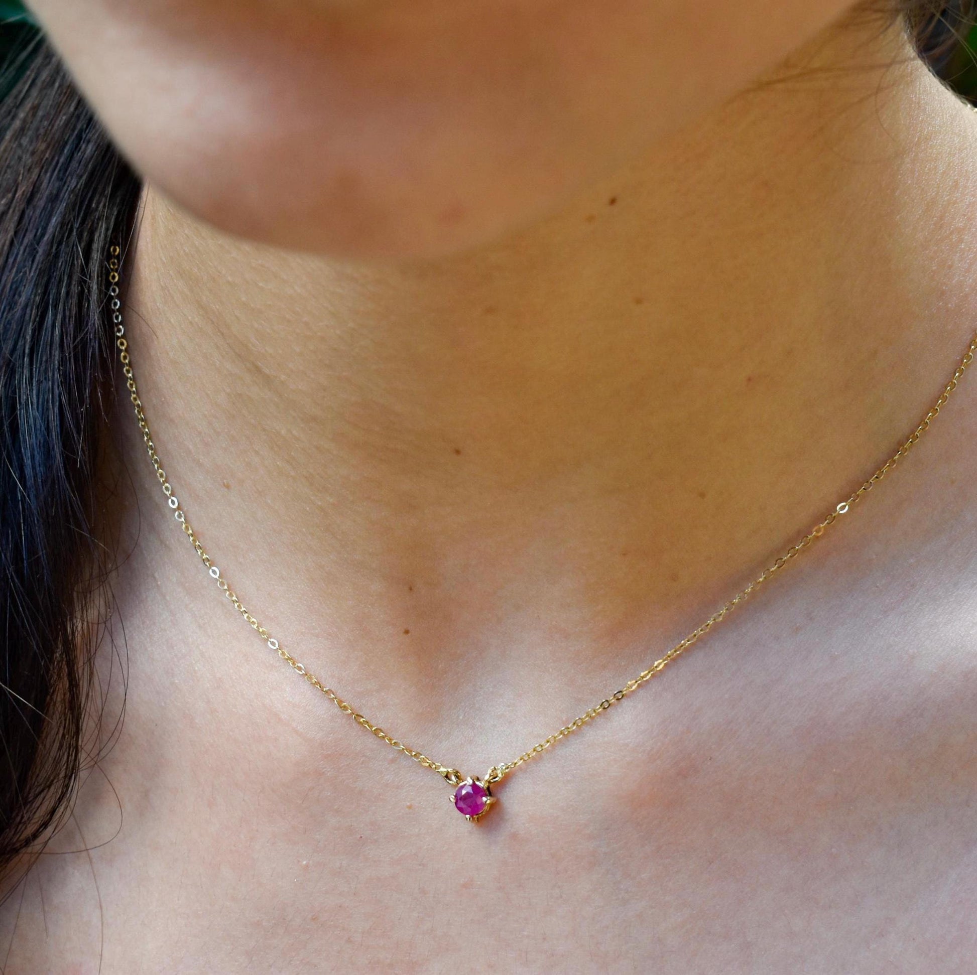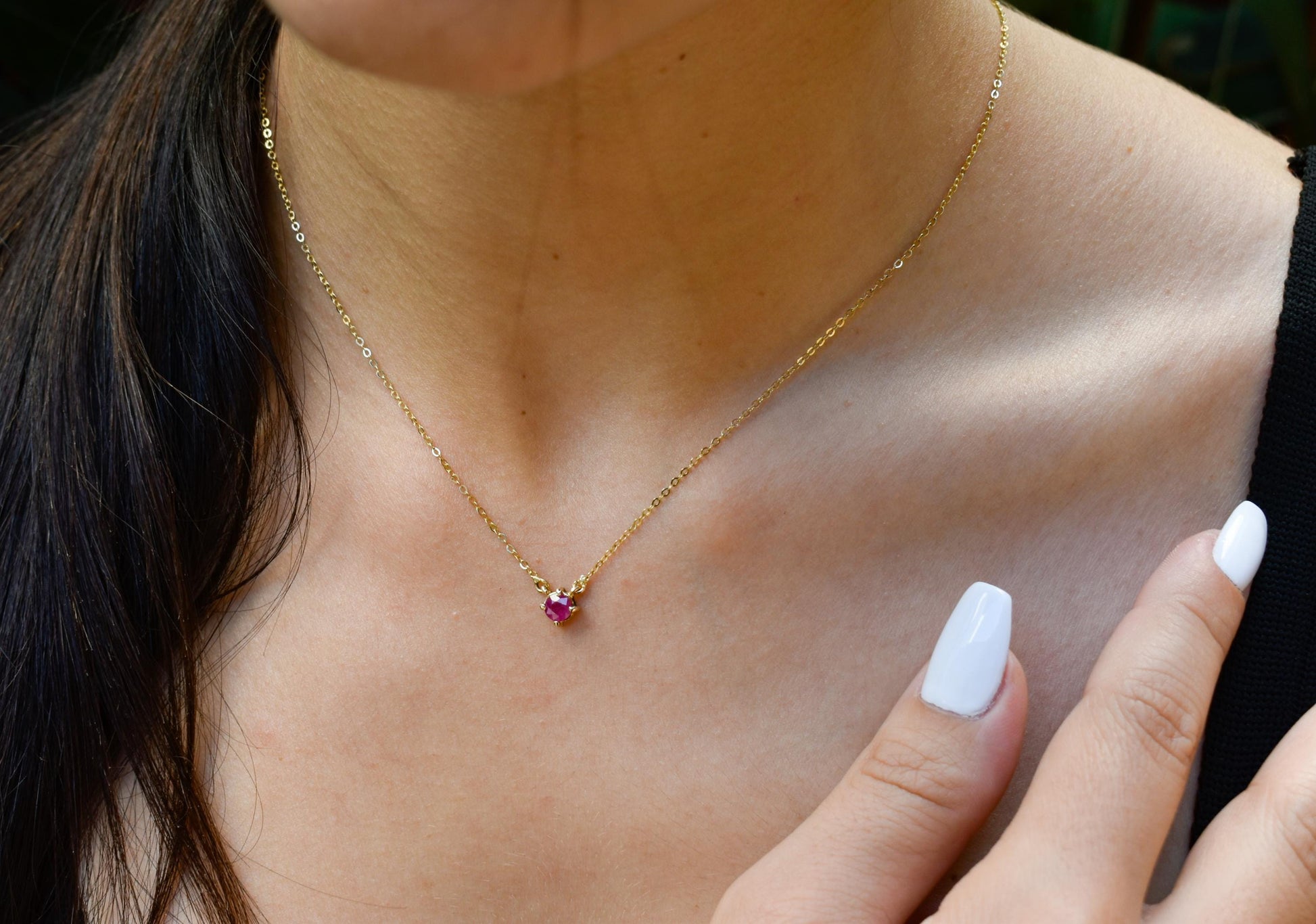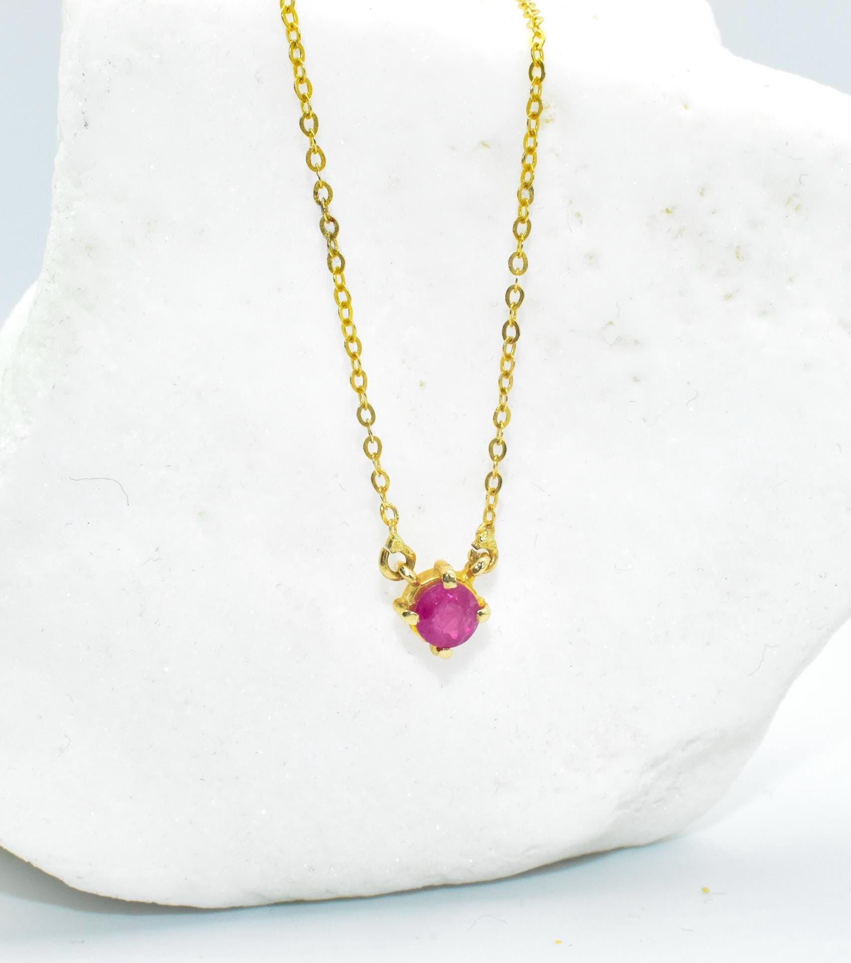 Minimal και κομψό κολιέ με φυσικό ρουμπίνι, κατασκευασμένο από χρυσό 14 καρατίων. Το έντονο κόκκινο της πέτρας προσθέτει μια διακριτική αλλά εντυπωσιακή πινελιά χρώματος, ενώ ο λιτός σχεδιασμός το κάνει ιδανικό για καθημερινή χρήση αλλά και για layering με άλλα λεπτεπίλεπτα κολιέ. ✨
