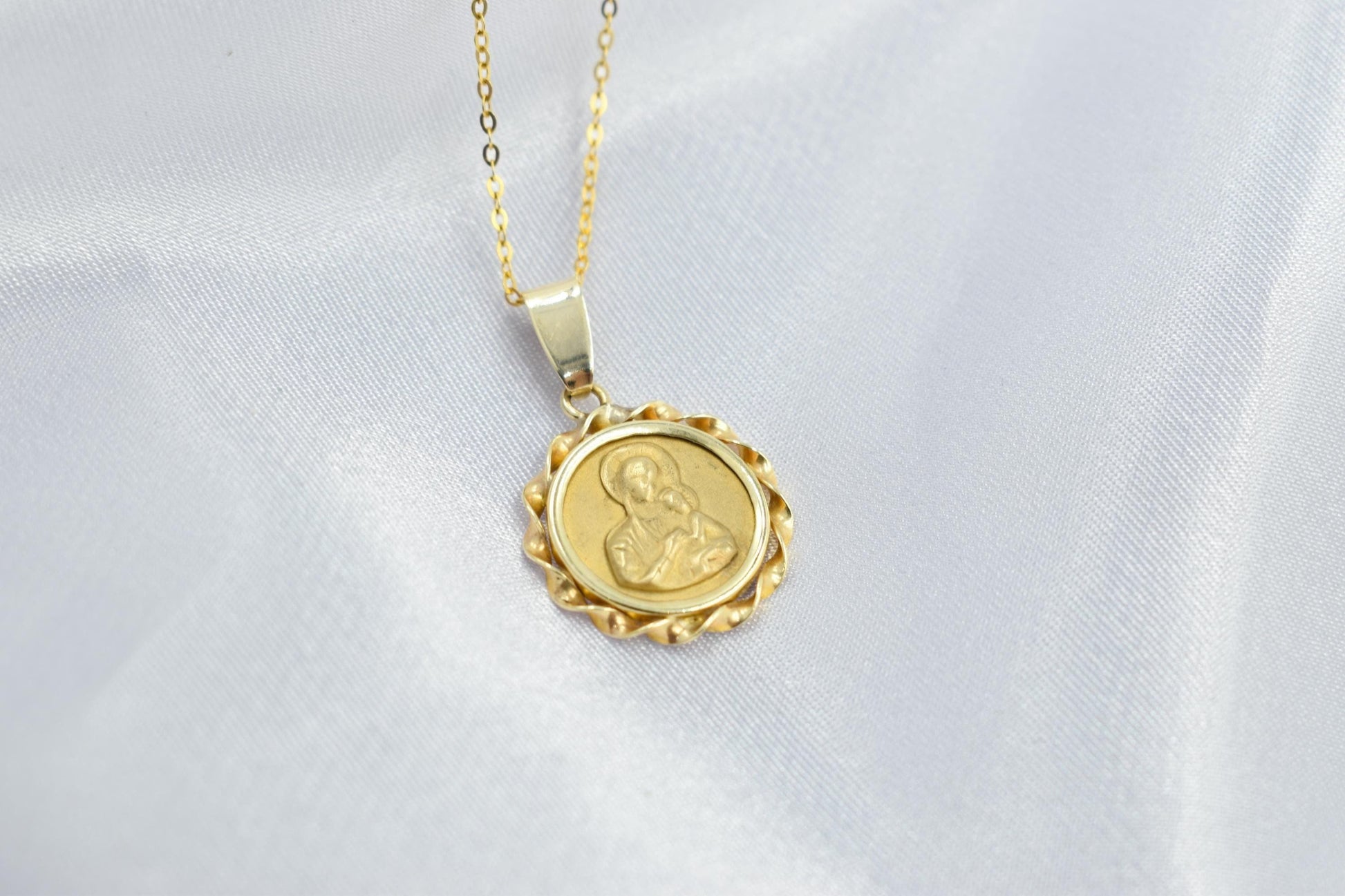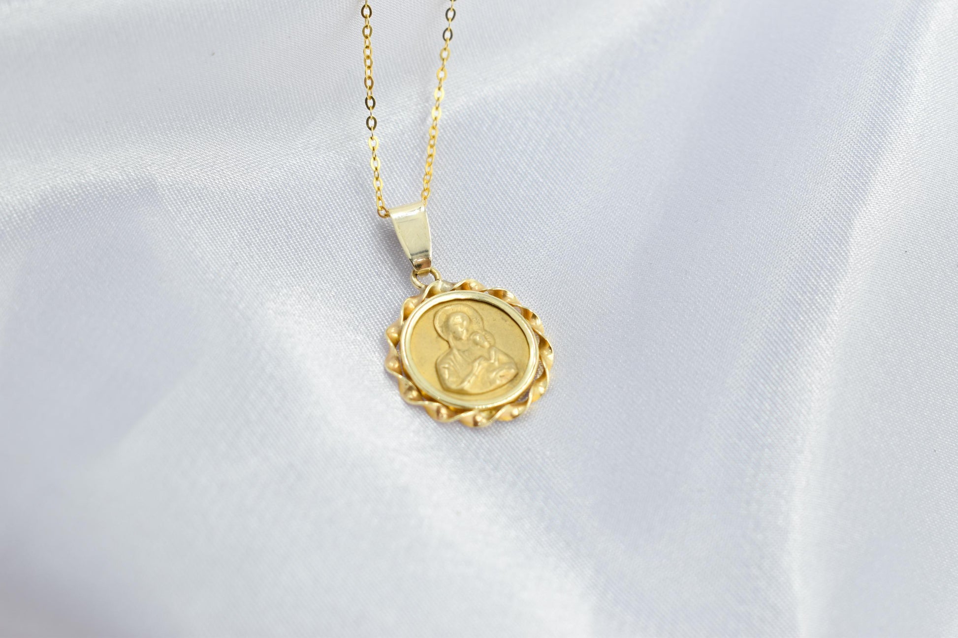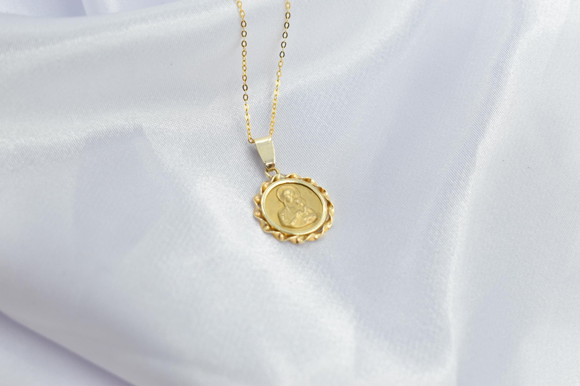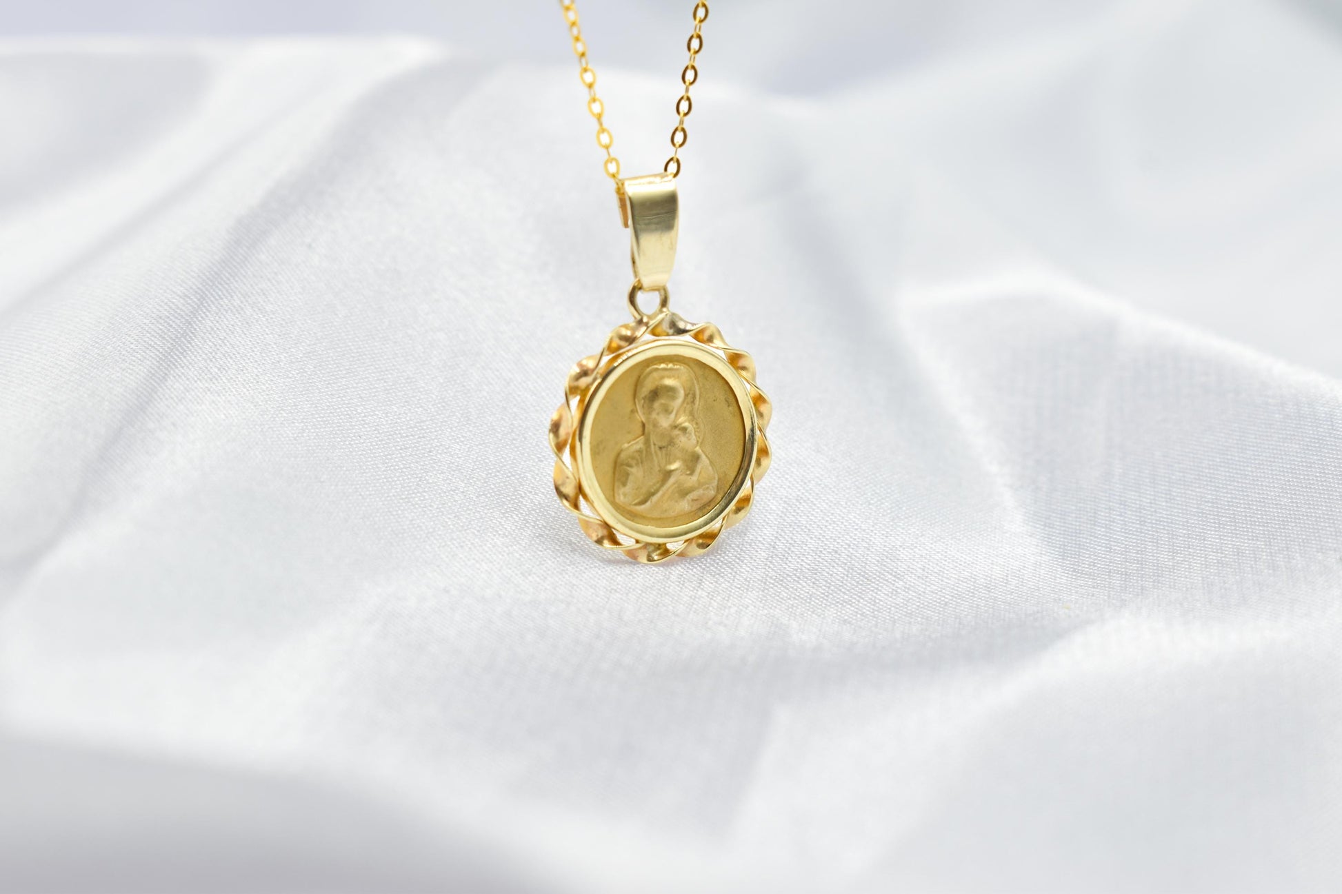 Κλασικό κωνσταντινάτο κρεμαστό από χρυσό 14 καρατίων, με παράσταση Παναγίας και σφυρήλατο πλαίσιο. Ένα διαχρονικό φυλαχτό με ελληνικό χαρακτήρα, ιδανικό για καθημερινή χρήση αλλά και για ιδιαίτερες περιστάσεις. ✨
