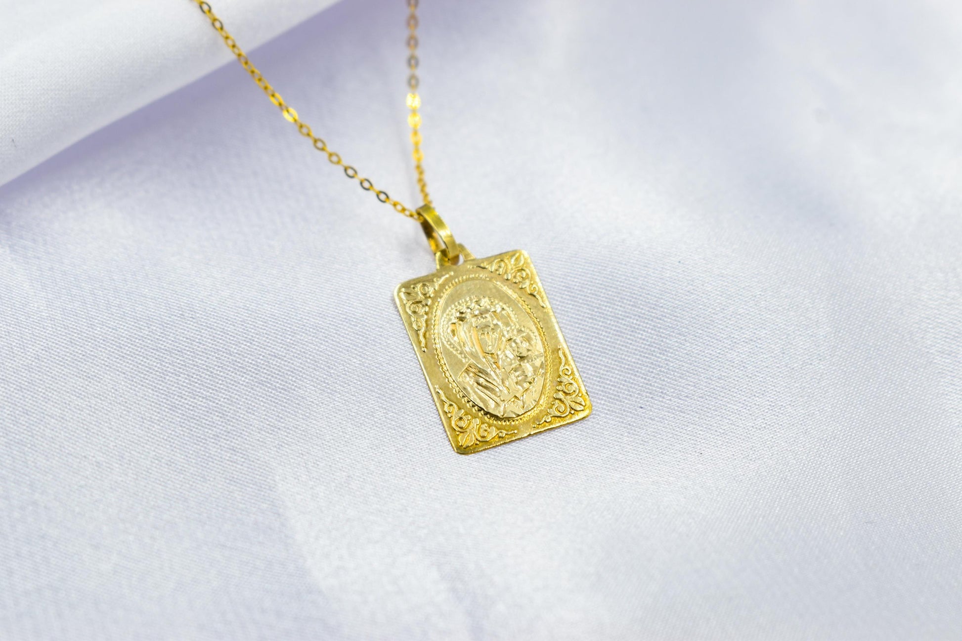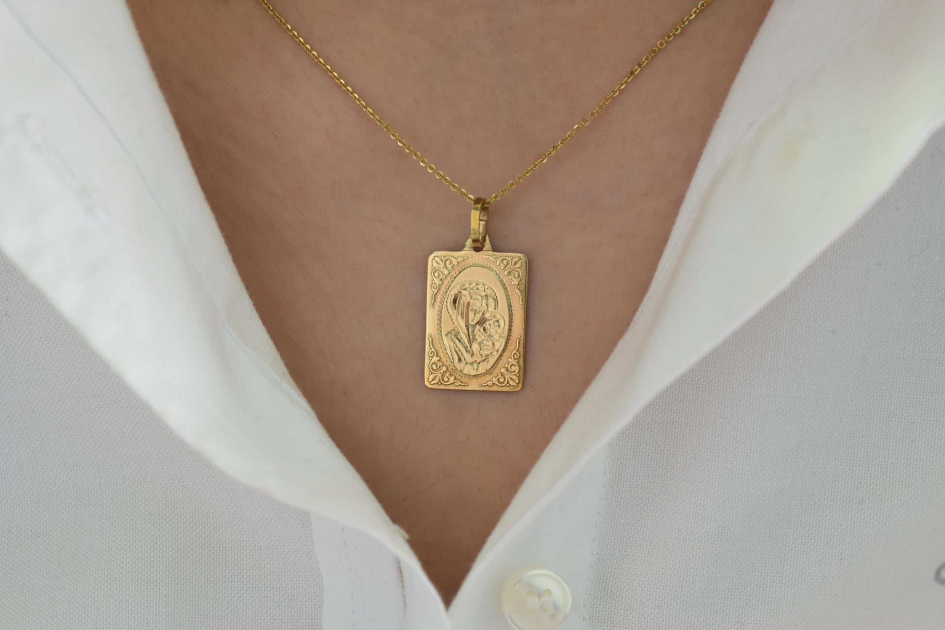 Κλασικό και καλαίσθητο φυλαχτό Παναγίας από χρυσό 14 καρατίων, με λεπτοδουλεμένο ανάγλυφο σχέδιο και παραδοσιακό πλαίσιο. Ιδανικό για καθημερινή χρήση αλλά και για ιδιαίτερες στιγμές όπως βάπτιση, αρραβώνα, γάμο ή ως οικογενειακό φυλαχτό που περνά από γενιά σε γενιά. ✨