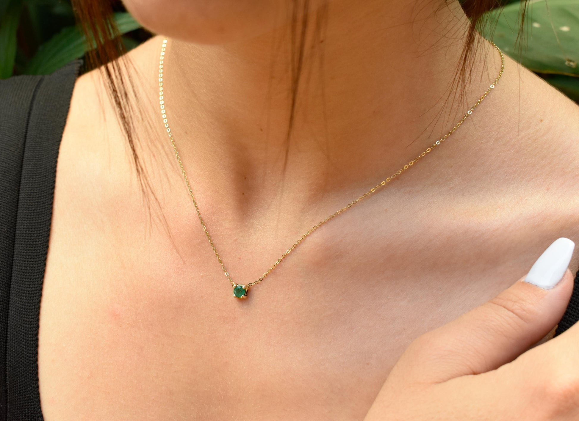 Κολιέ Μονόπετρο Ορυκτό Σμαράγδι 14Κ